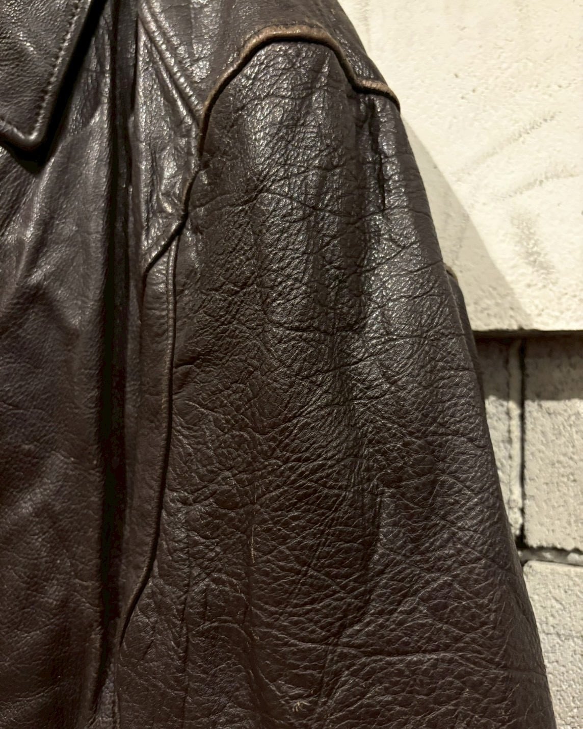 ボディにはリアルレザーを採用。肉厚でありながらもしなやかに仕上げられた質感が魅力で、長年着込むことで深い艶とシボ感が増していく極上のエイジングが楽しめます。