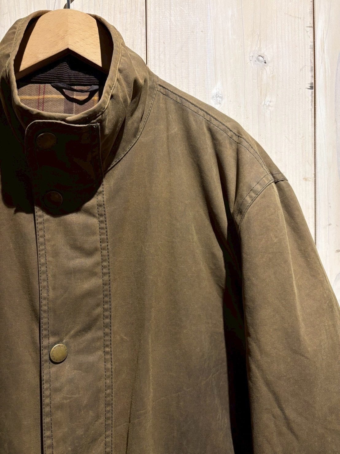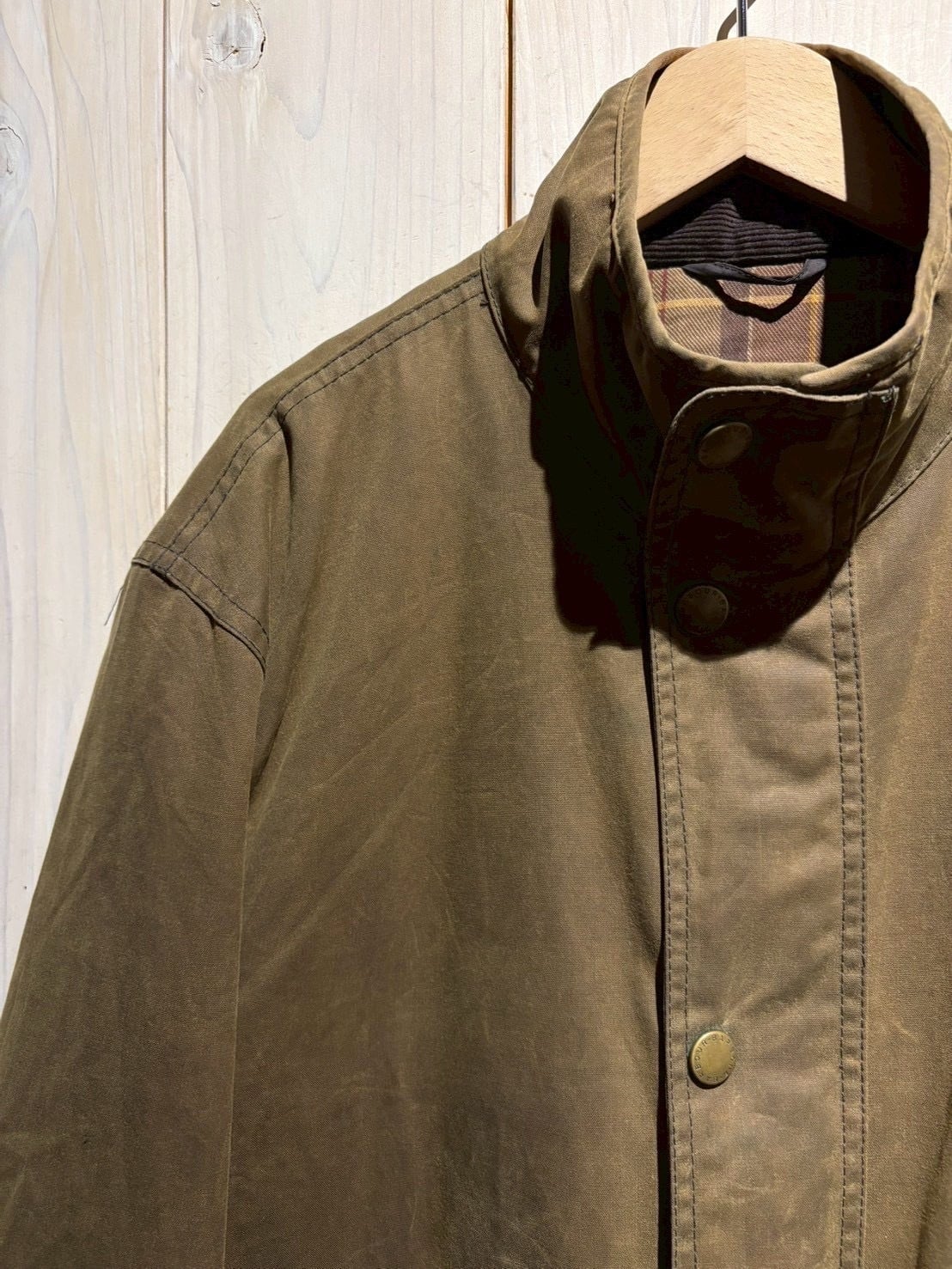 内側にはBarbour伝統のタータンチェックライニングを配し、上品さと英国らしい温かみをプラス。クラシックなブラウンオリーブの色味がどんなスタイルにも馴染み、デニムからスラックスまで幅広く対応します。