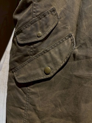 ボディにはブランドの代名詞ともいえるワックスドコットンを使用。油分を含んだ生地特有の艶とシワが独特の陰影を生み出し、着込むほどに深みを増していく経年変化を楽しめます。撥水性、防風性に優れ、アウトドアシーンだけでなくタウンユースにも映えてくれるかと。