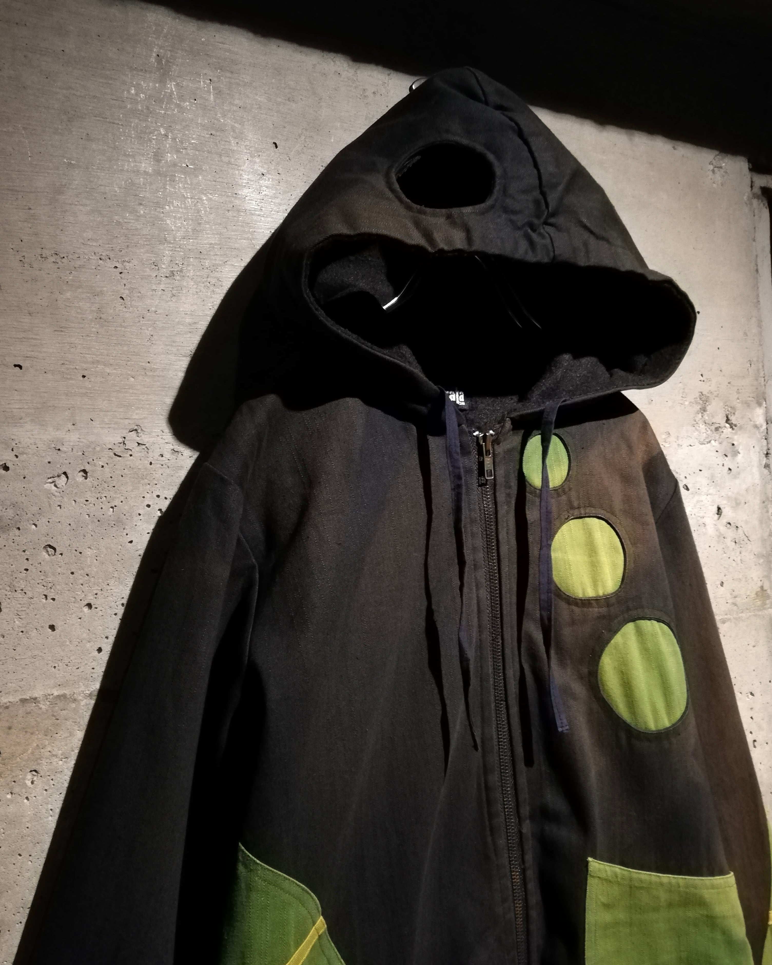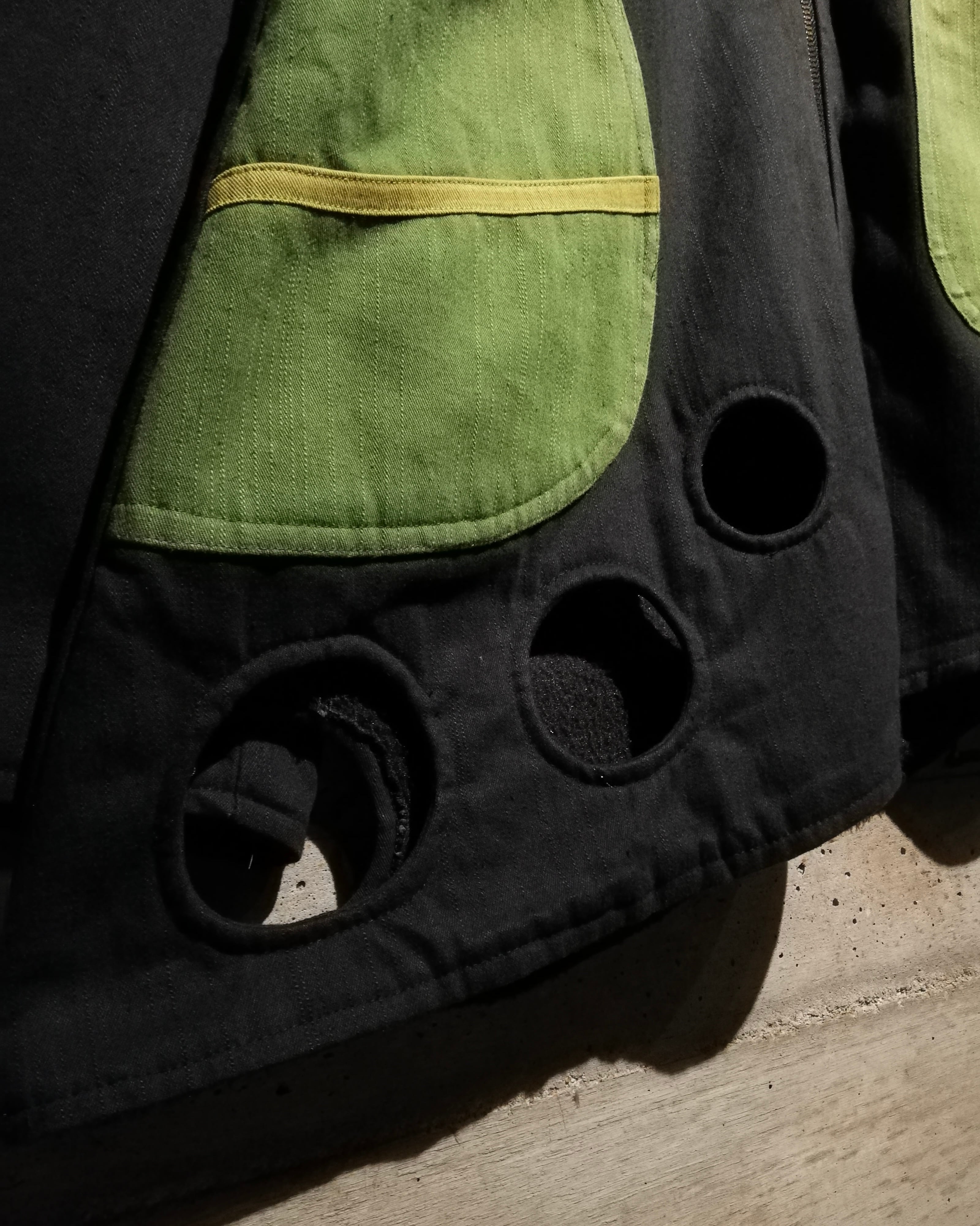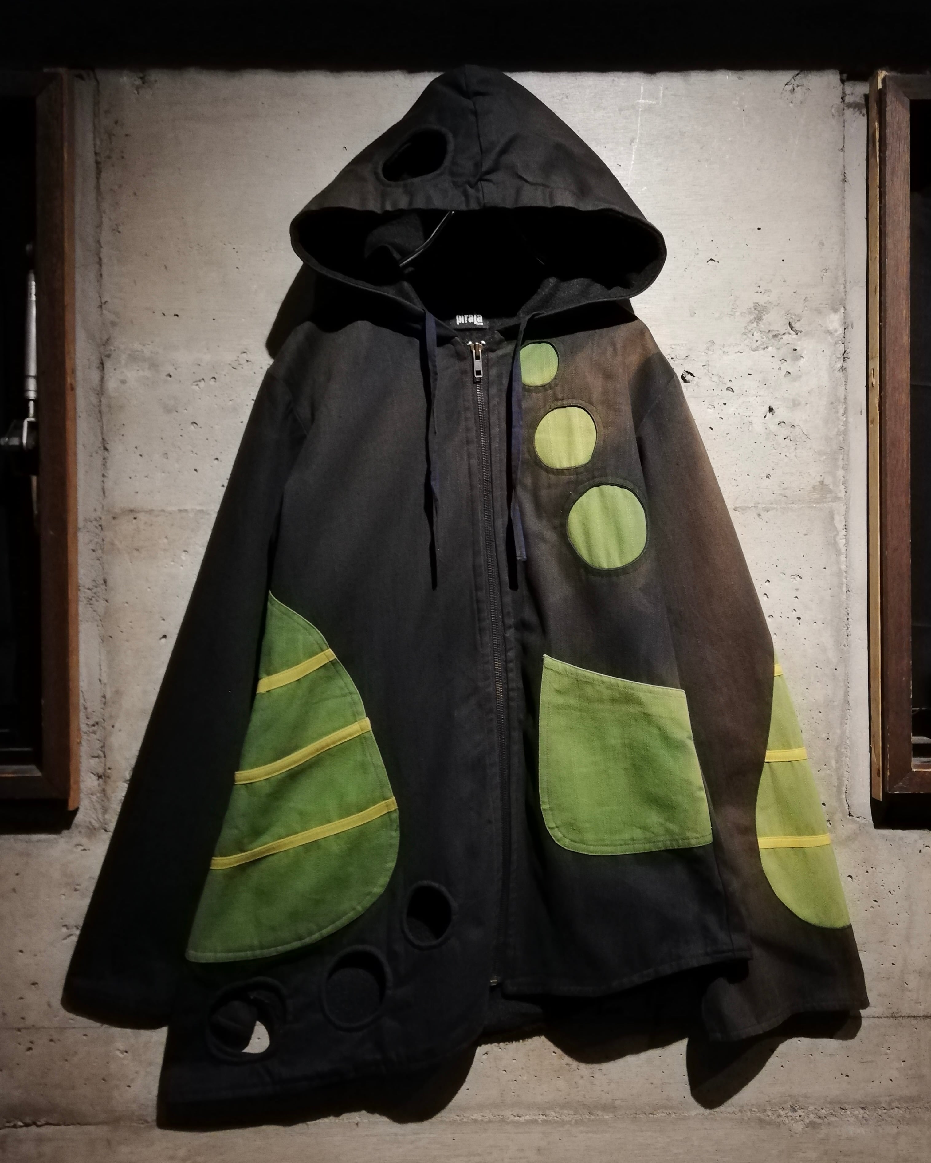 フードや裾にはホールカット加工を施し、光や風が通り抜けるような抜け感を表現。視覚的にもリズミカルな構成で仕上げられています。
