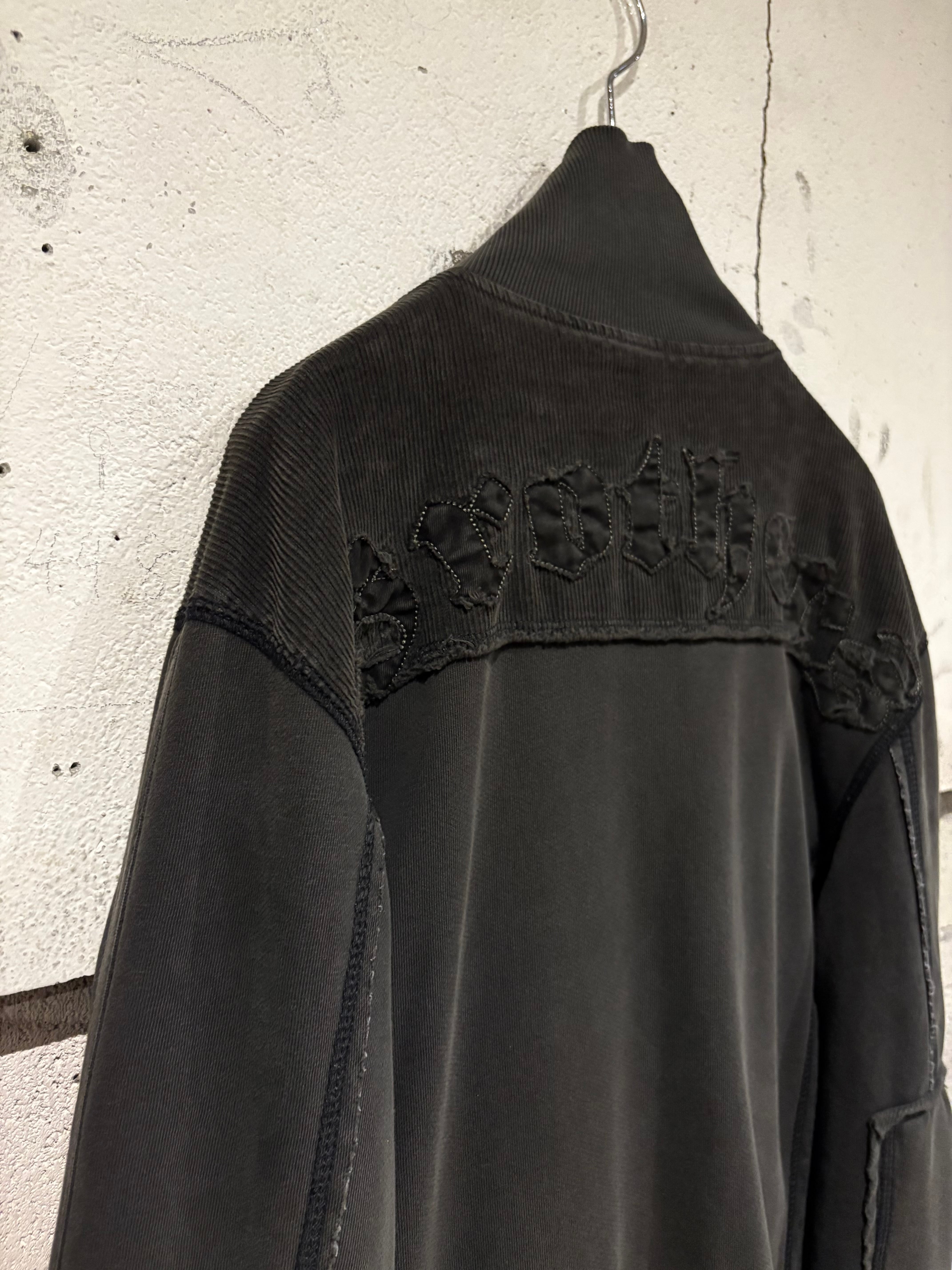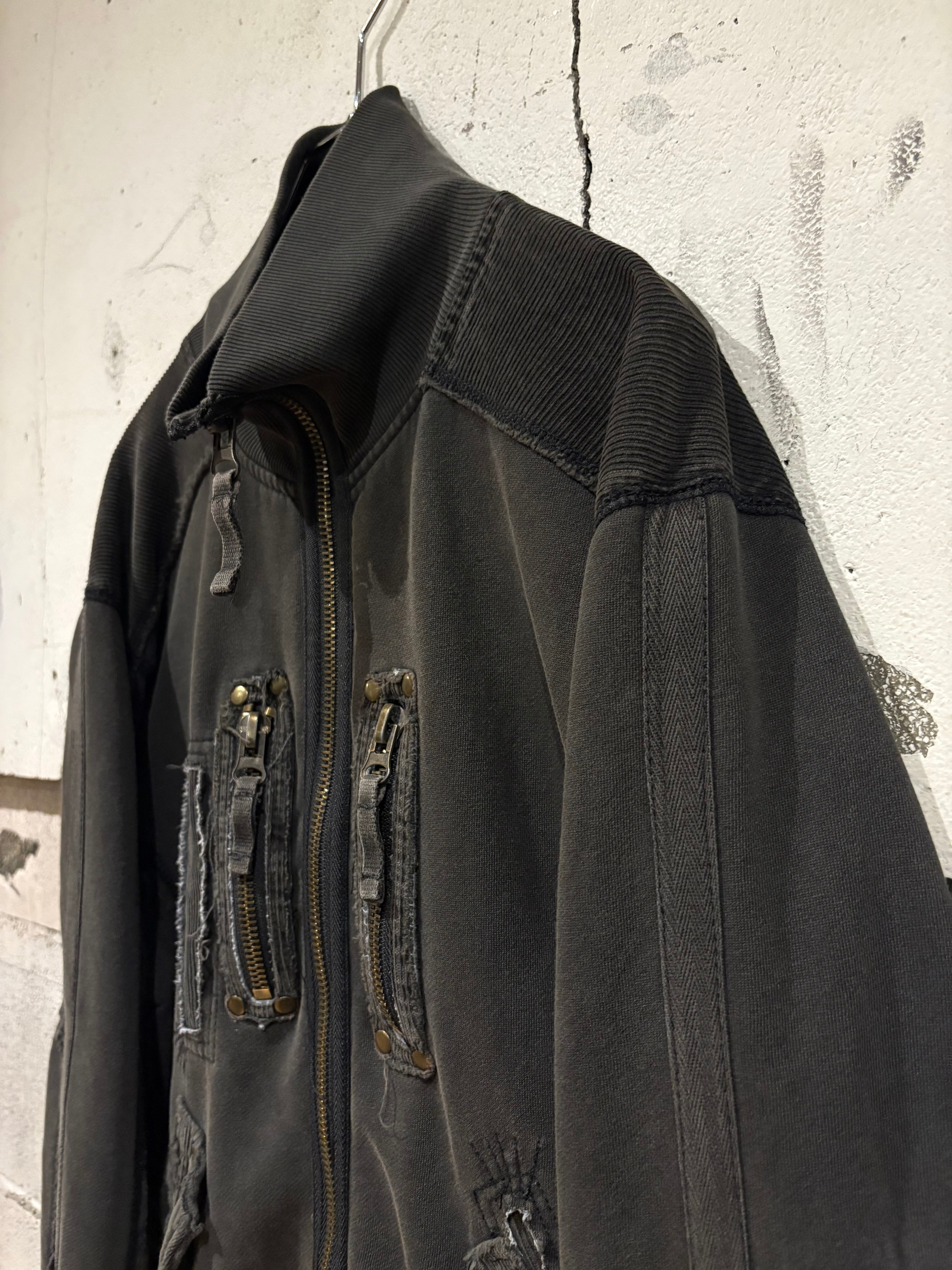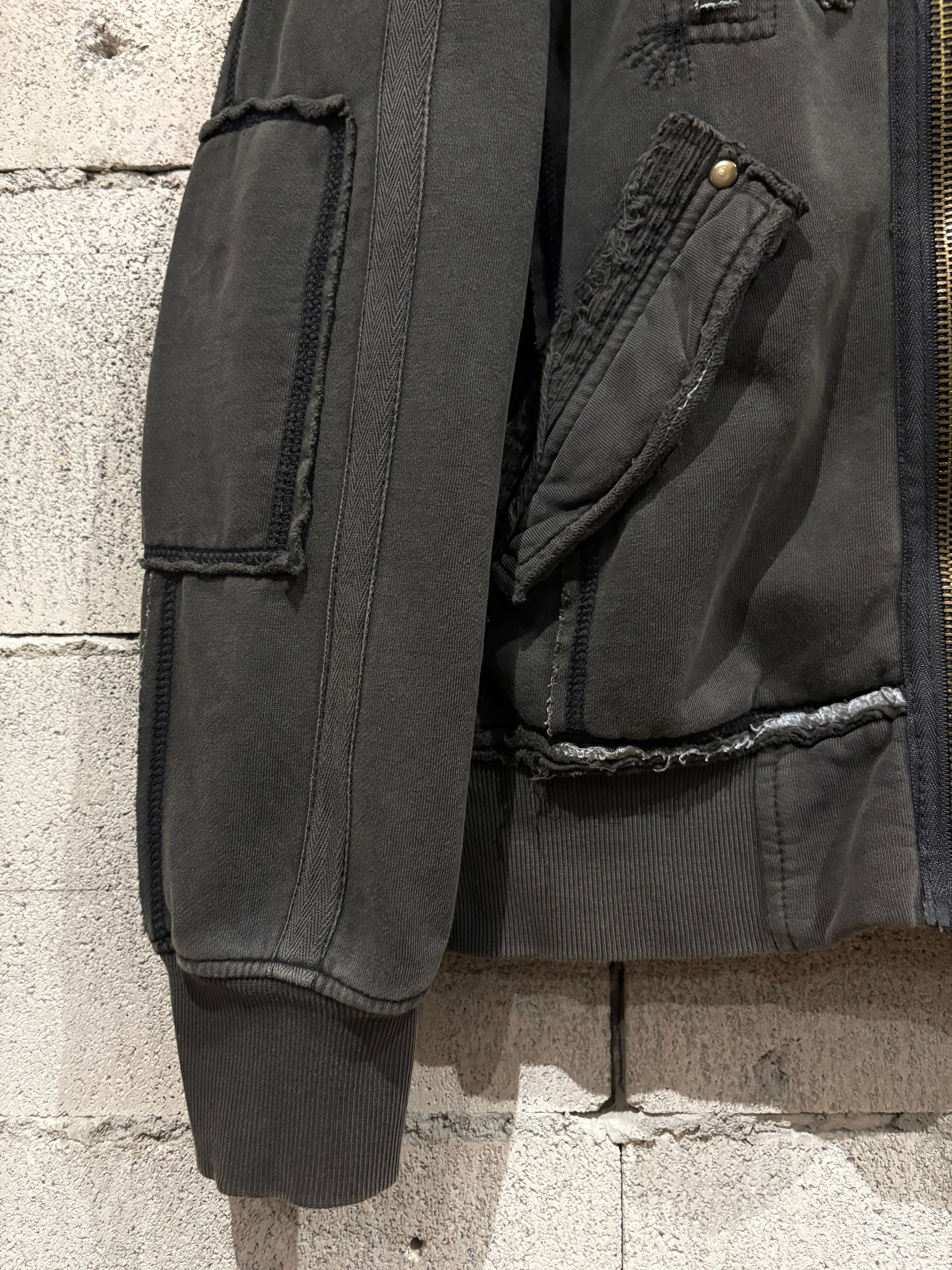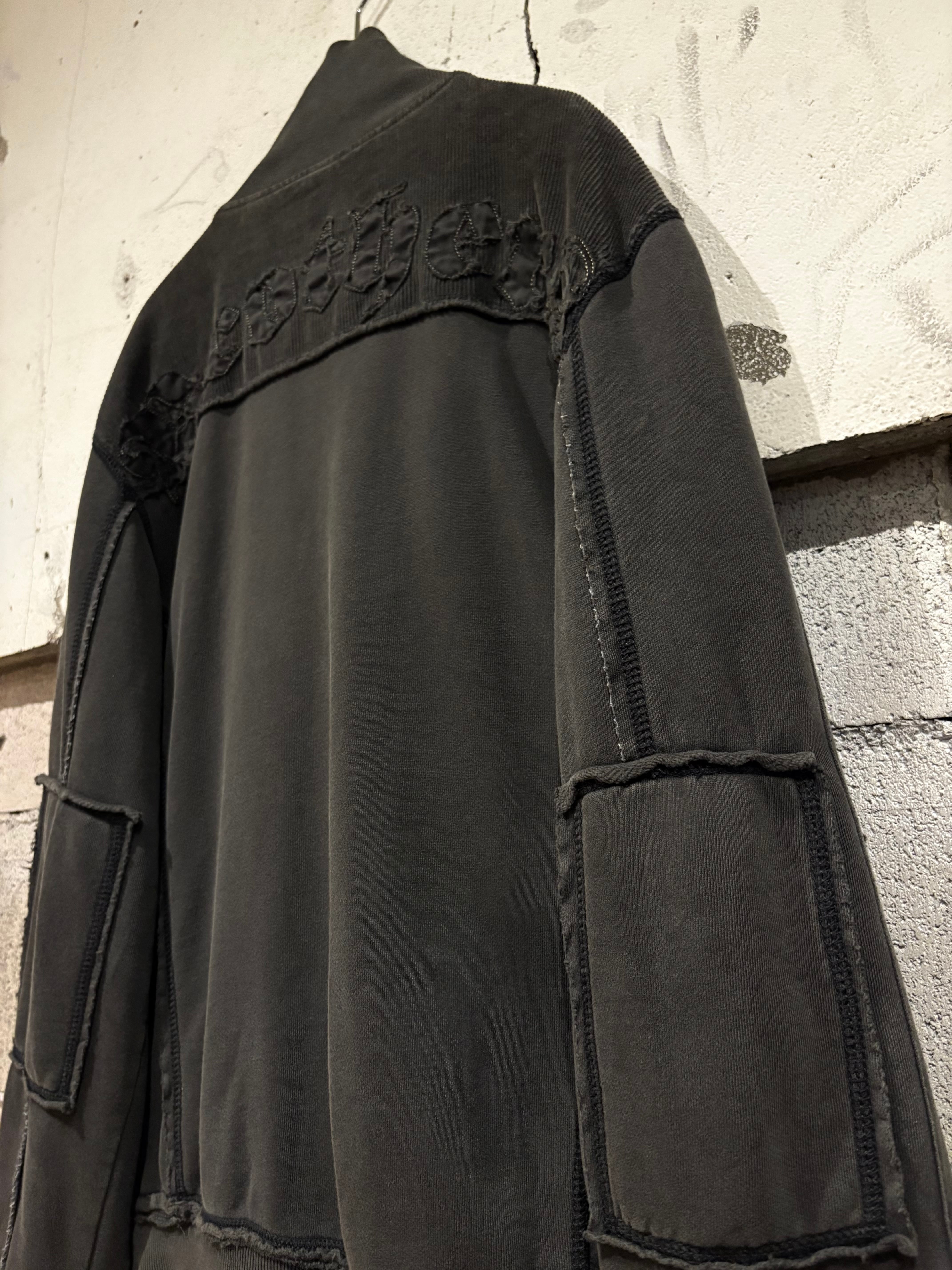 フェード感と素材切り替えが際立つ、インサイドアウト風のスウェットジャケット。