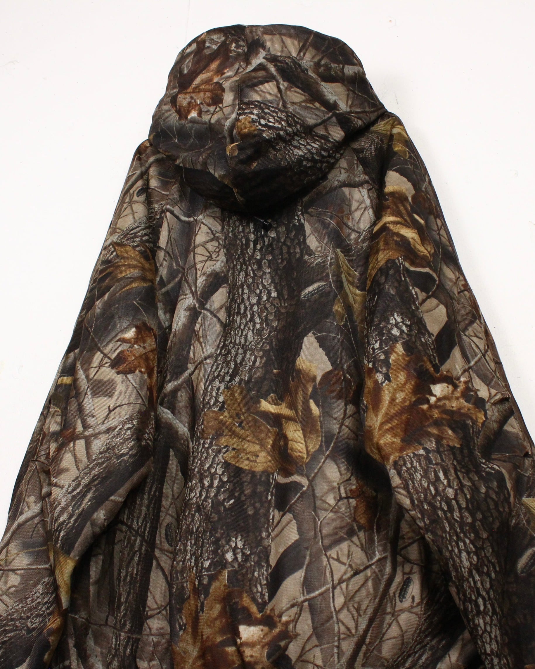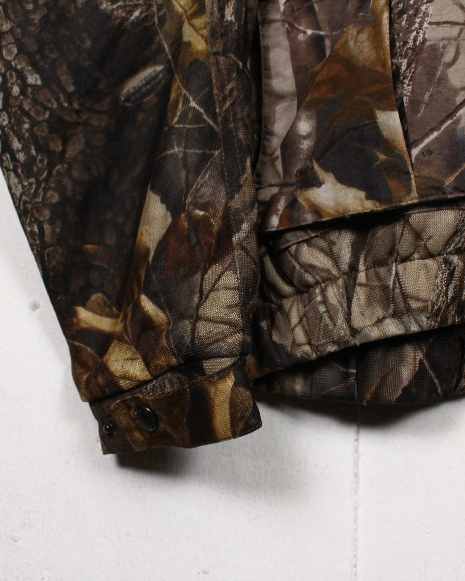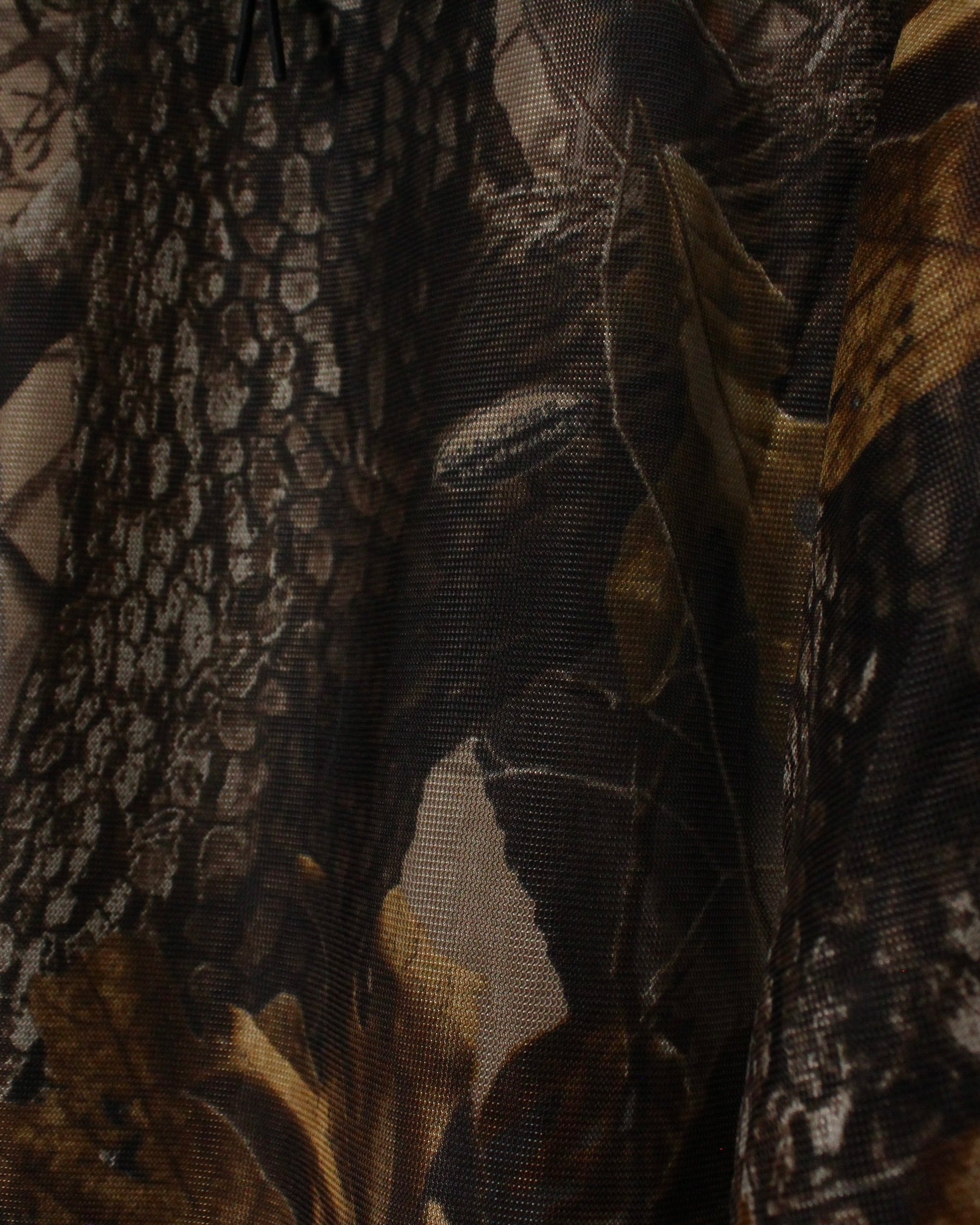 リアルツリーカモを全面に施し、自然に溶け込むデザインと高い防水性能を両立。ボディはポリエステルにPUラミネート加工を施した完全防水仕様で、軽量ながら耐久性にも優れています。