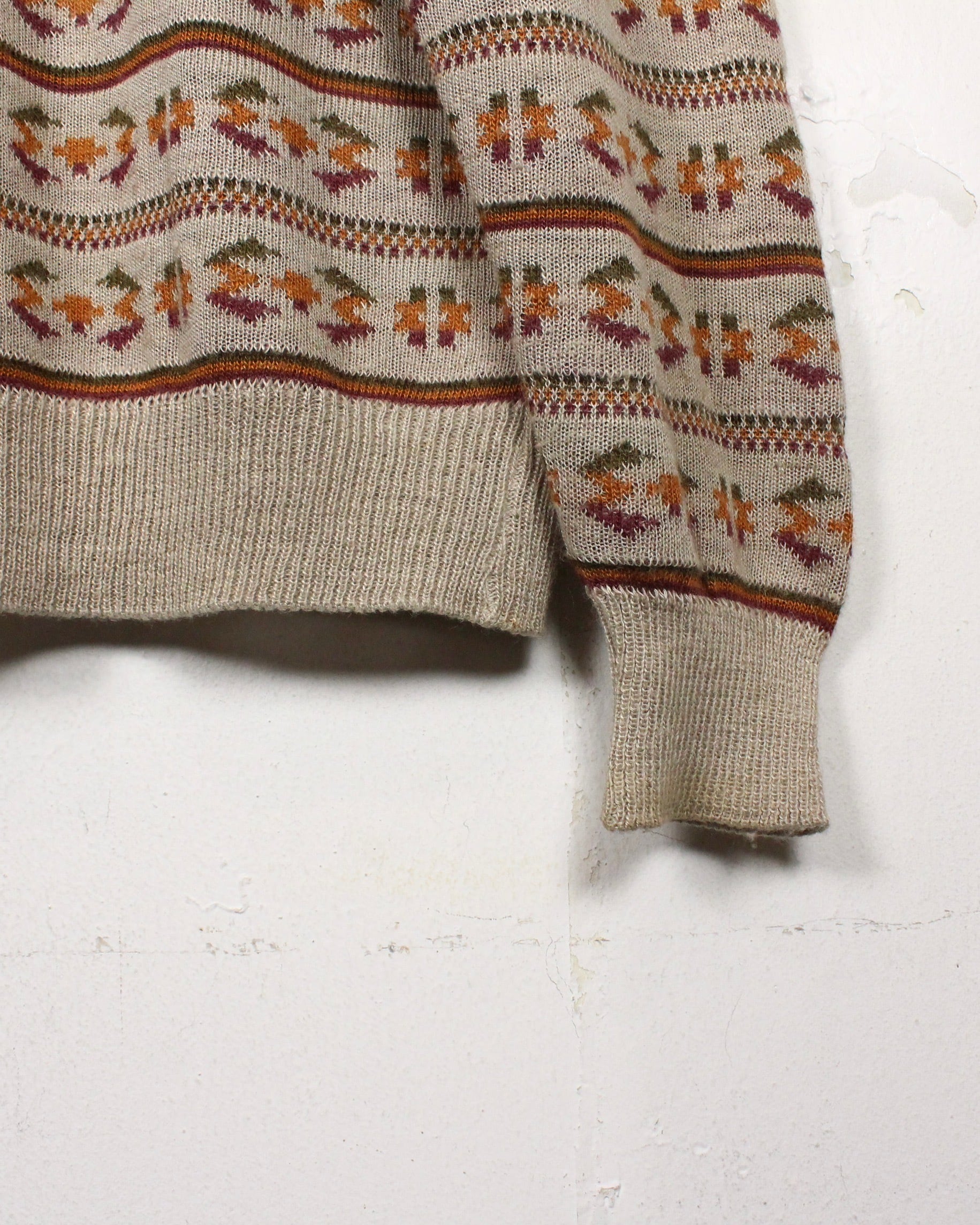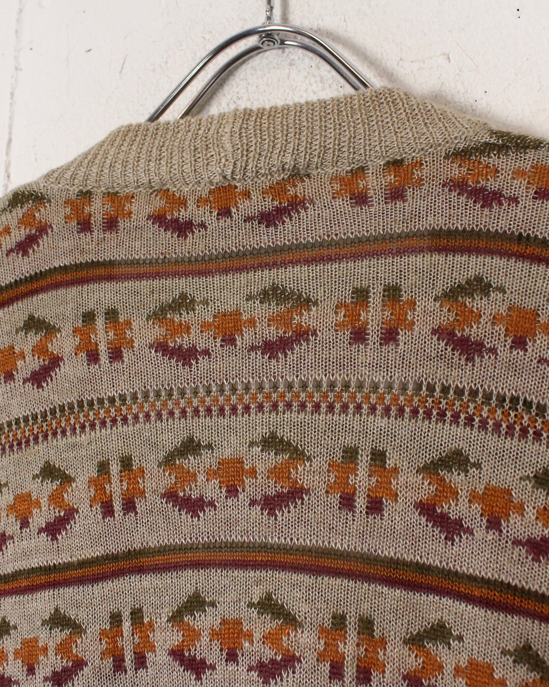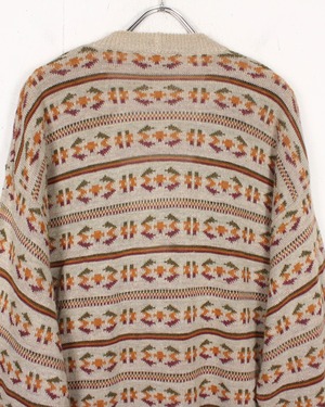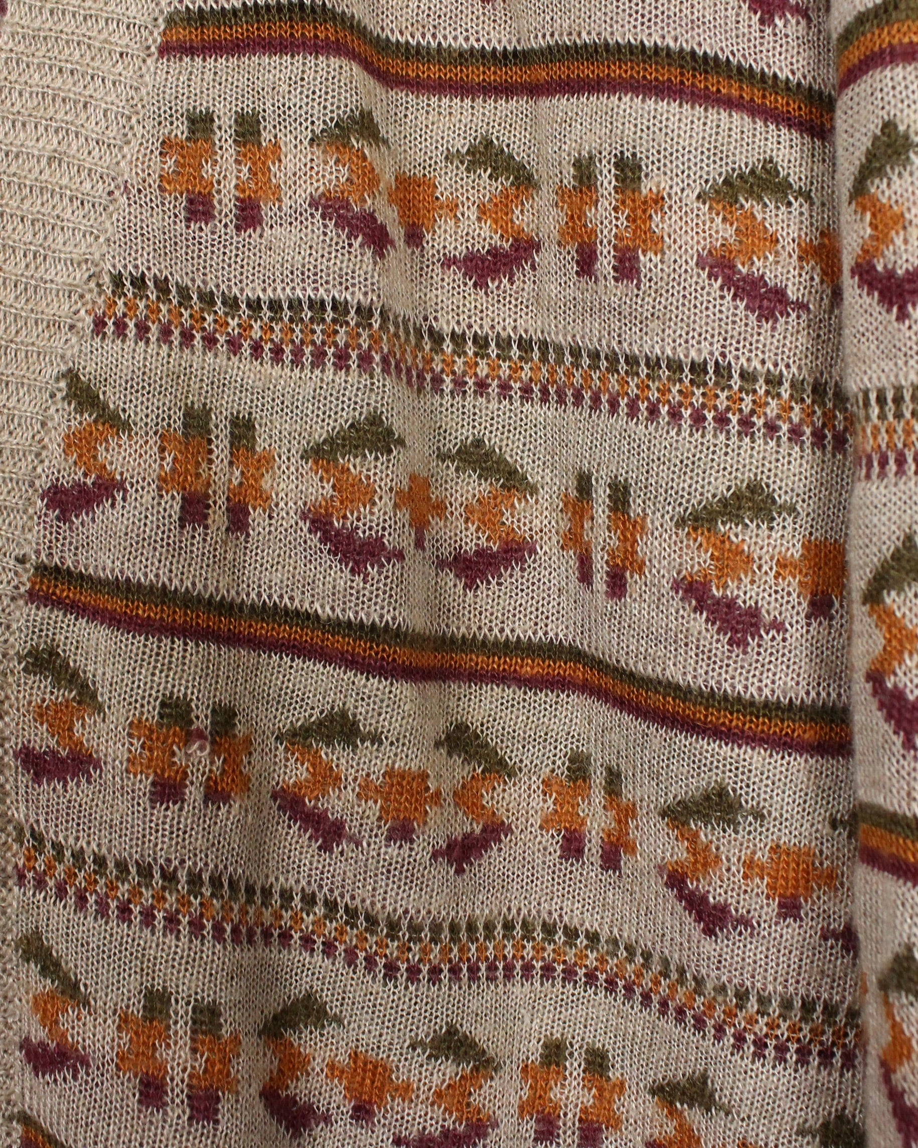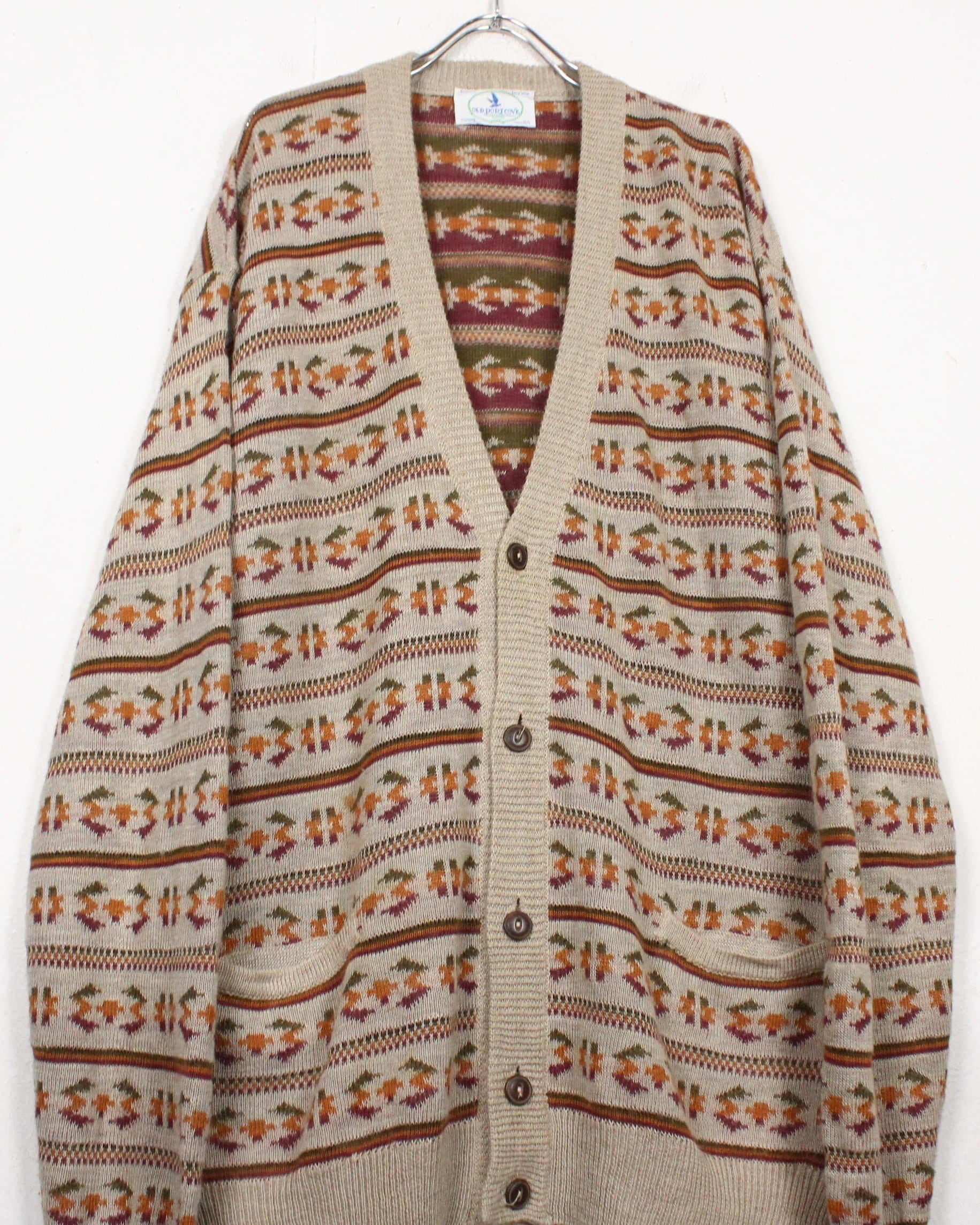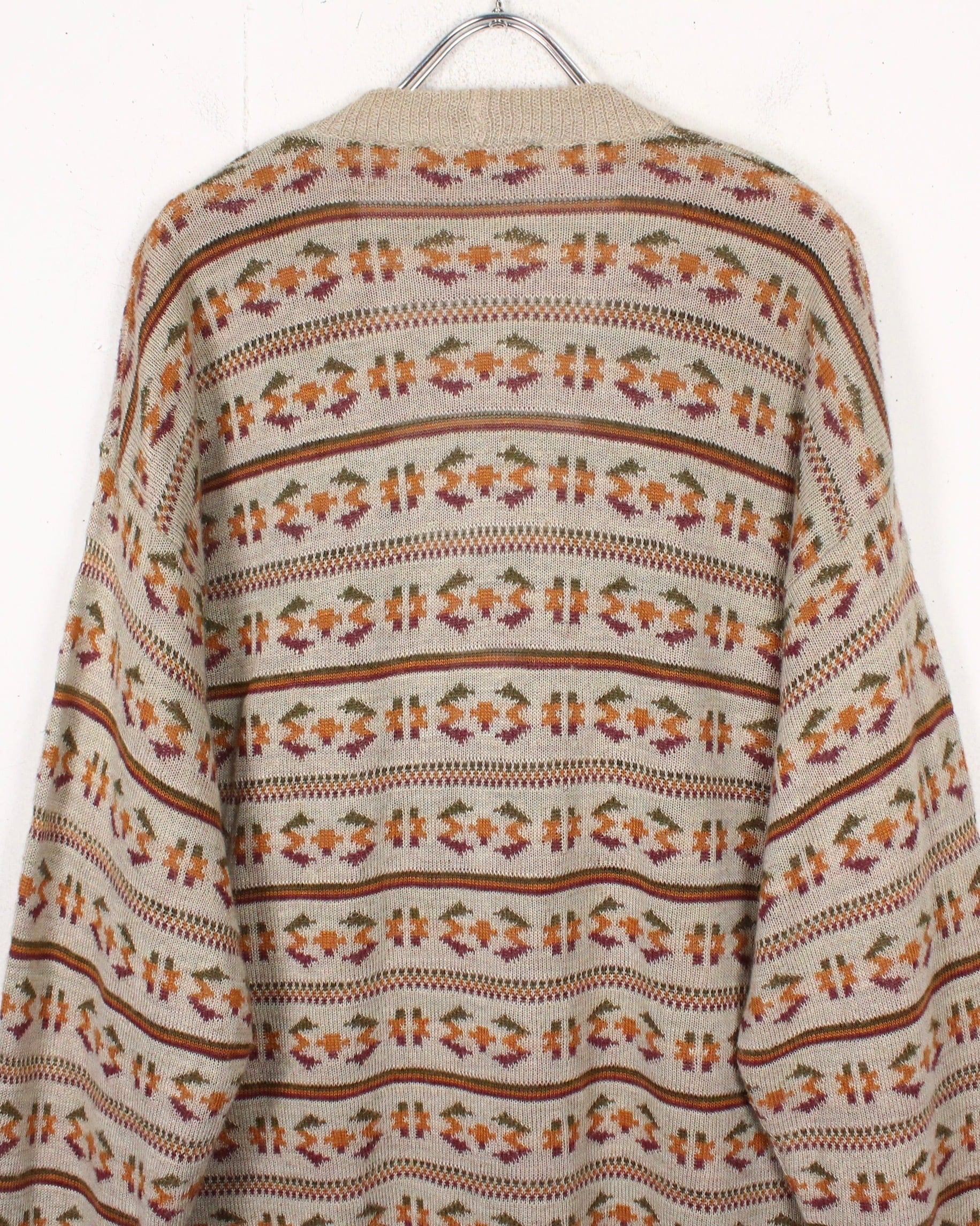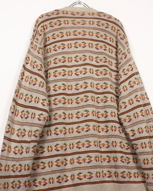 アイボリーを基調に、オリーブやテラコッタなどを織り交ぜた幾何学的なパターンが上品な印象を演出。ゆとりのあるシルエットで、Tシャツやシャツの上からラフに羽織るだけでサマになります。