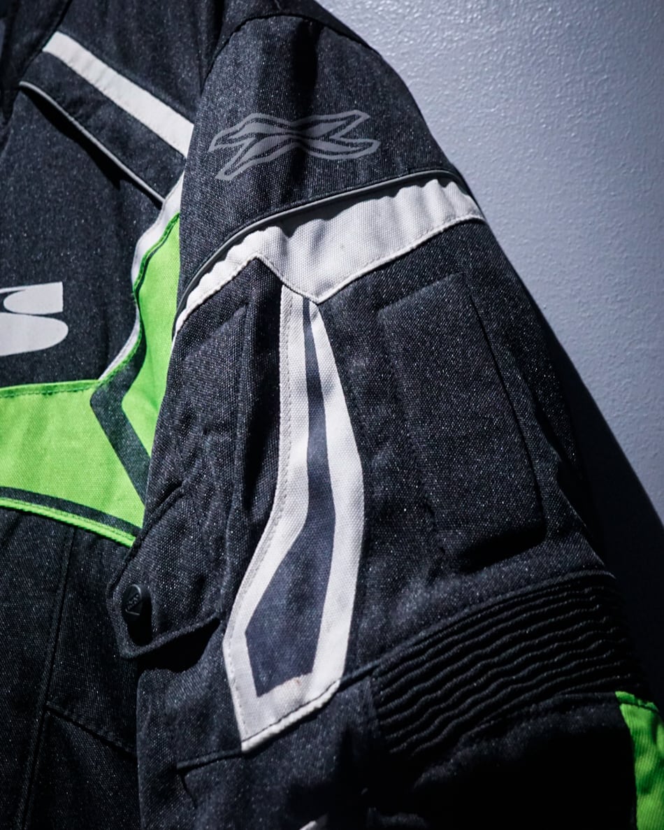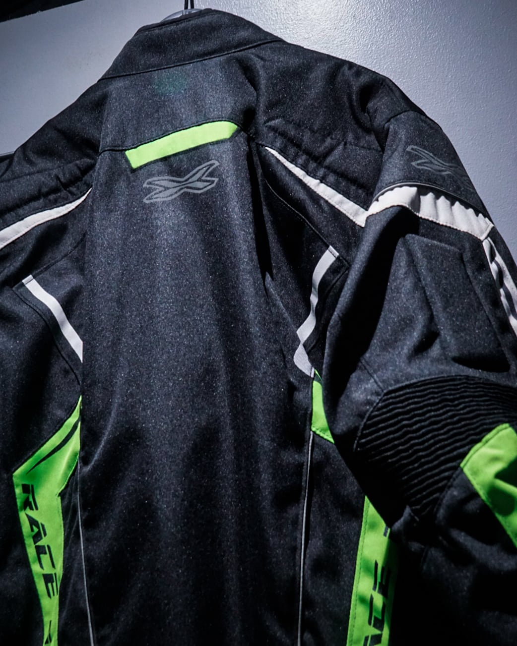 夜間走行時の視認性を高めるリフレクティブパイピングや、袖に施されたロゴプリントがアクセントとなり、機能性とデザインの両面から完成度を高めています。