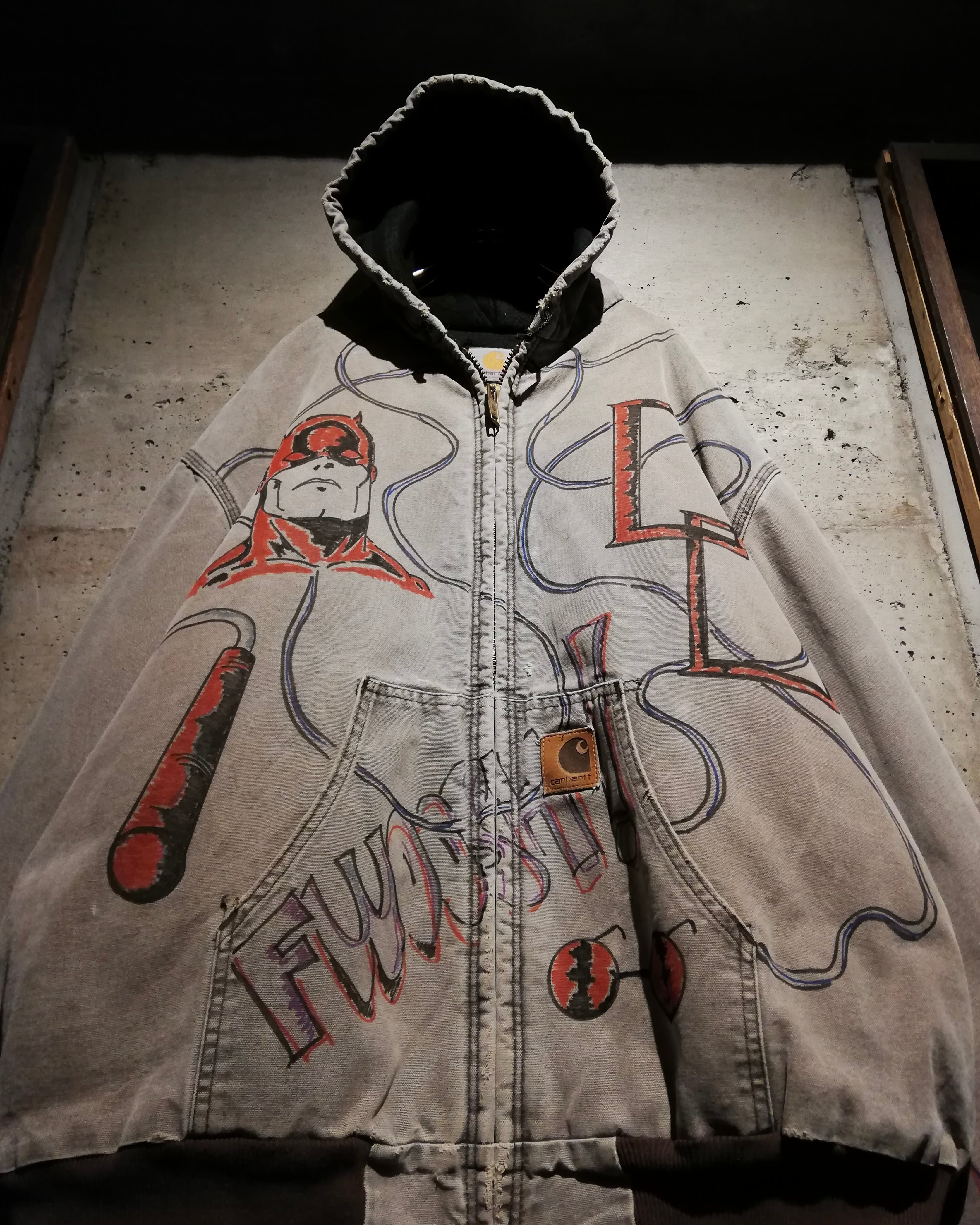 ワークウェアブランドの頂点に君臨する“Carhartt”より、ヴィンテージ市場でも高騰化が著しい名作アクティブジャケットをベースに、手描きのアートワークが全体に施されたスペシャルな1着。