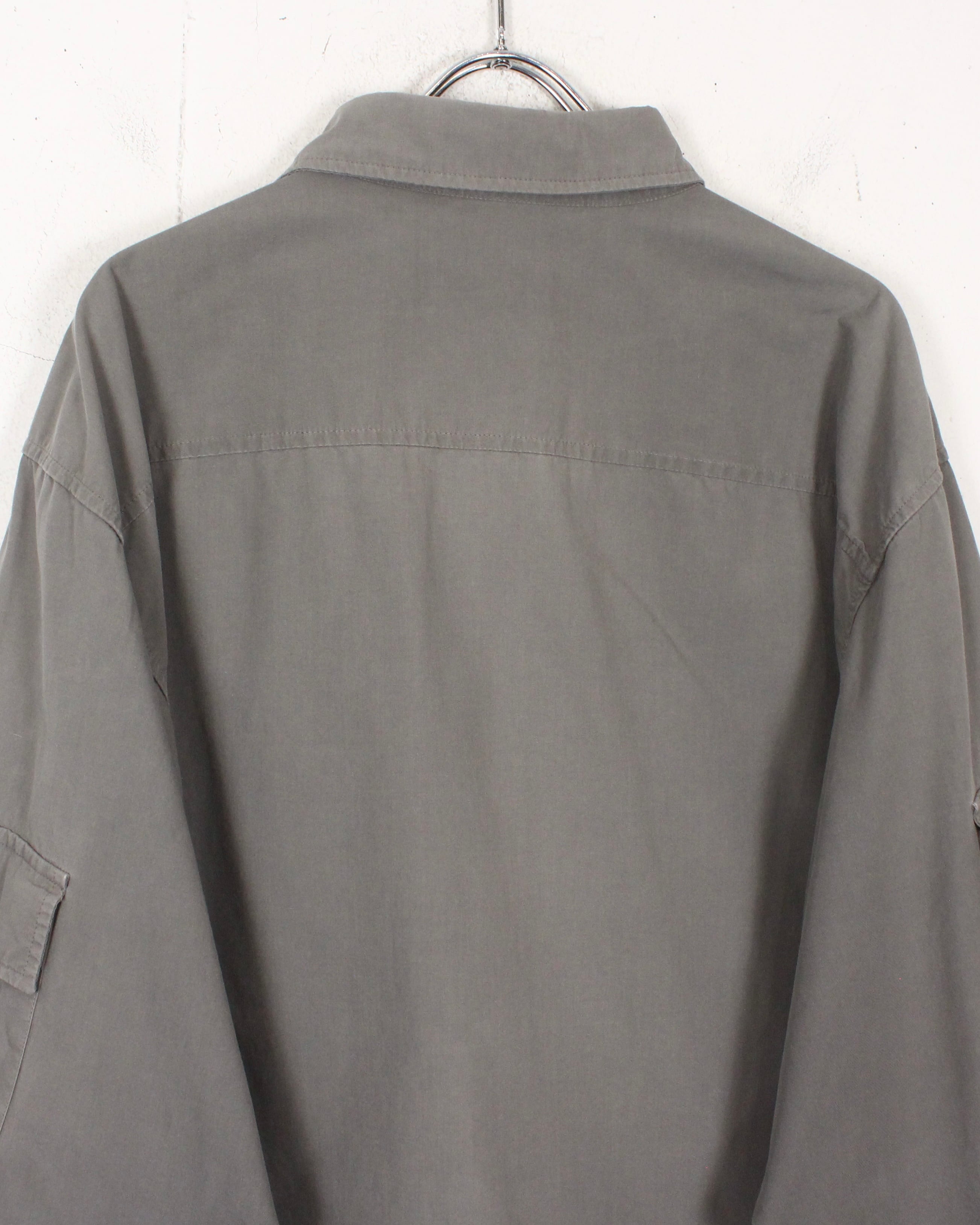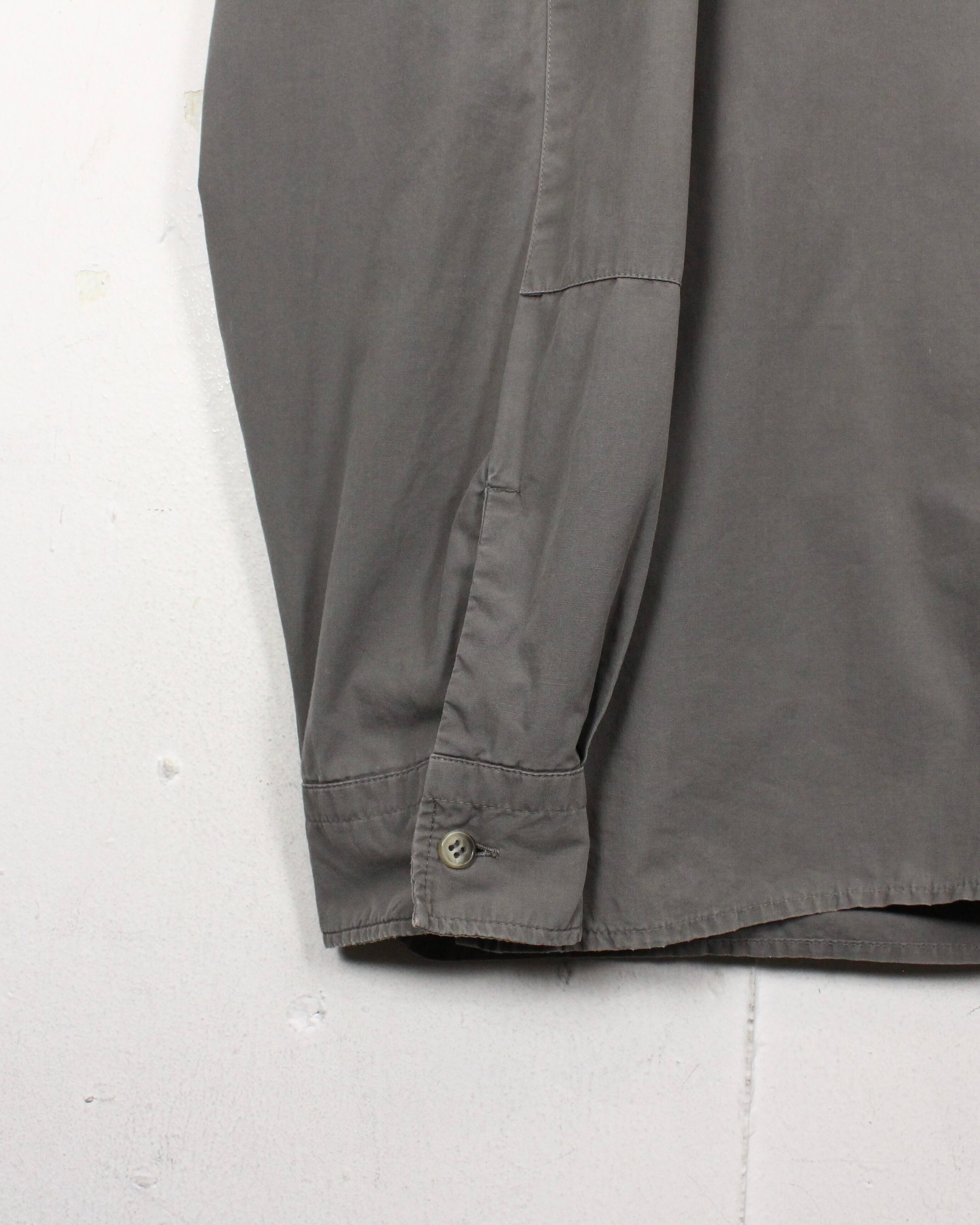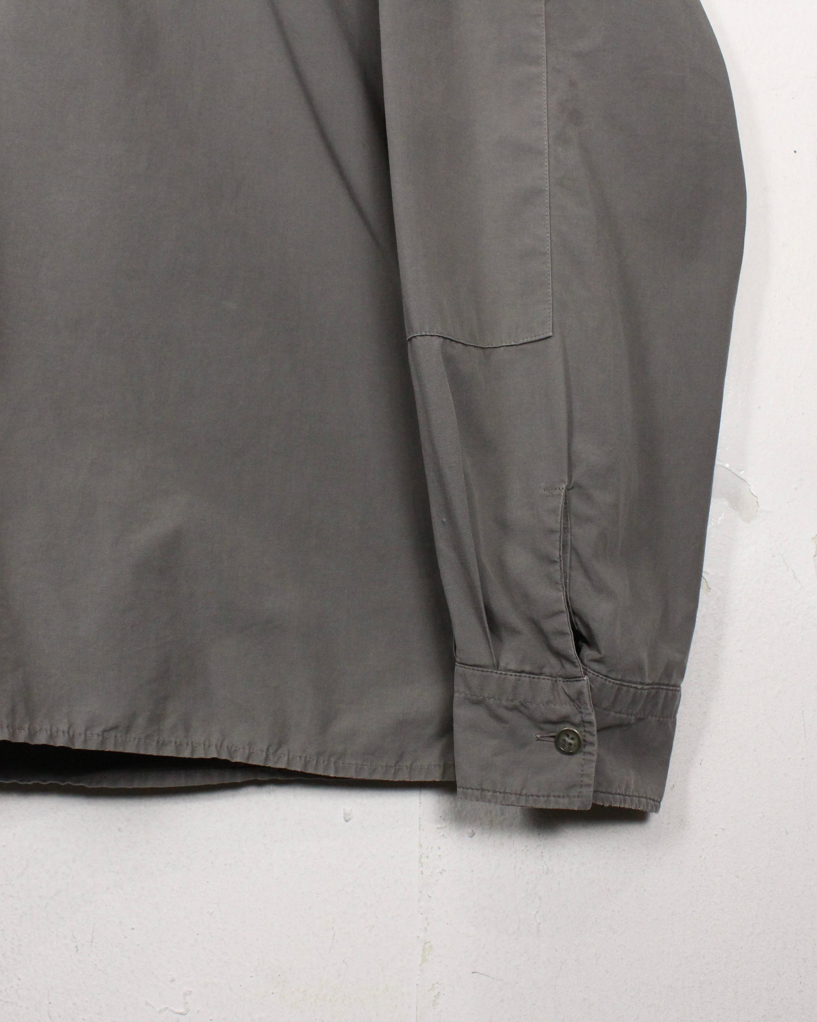 軽やかなグレージュトーンのボディには、光沢と滑らかさを併せ持つコットンを採用。単体での着用はもちろん、ジャケットライクに羽織るのもオススメです。