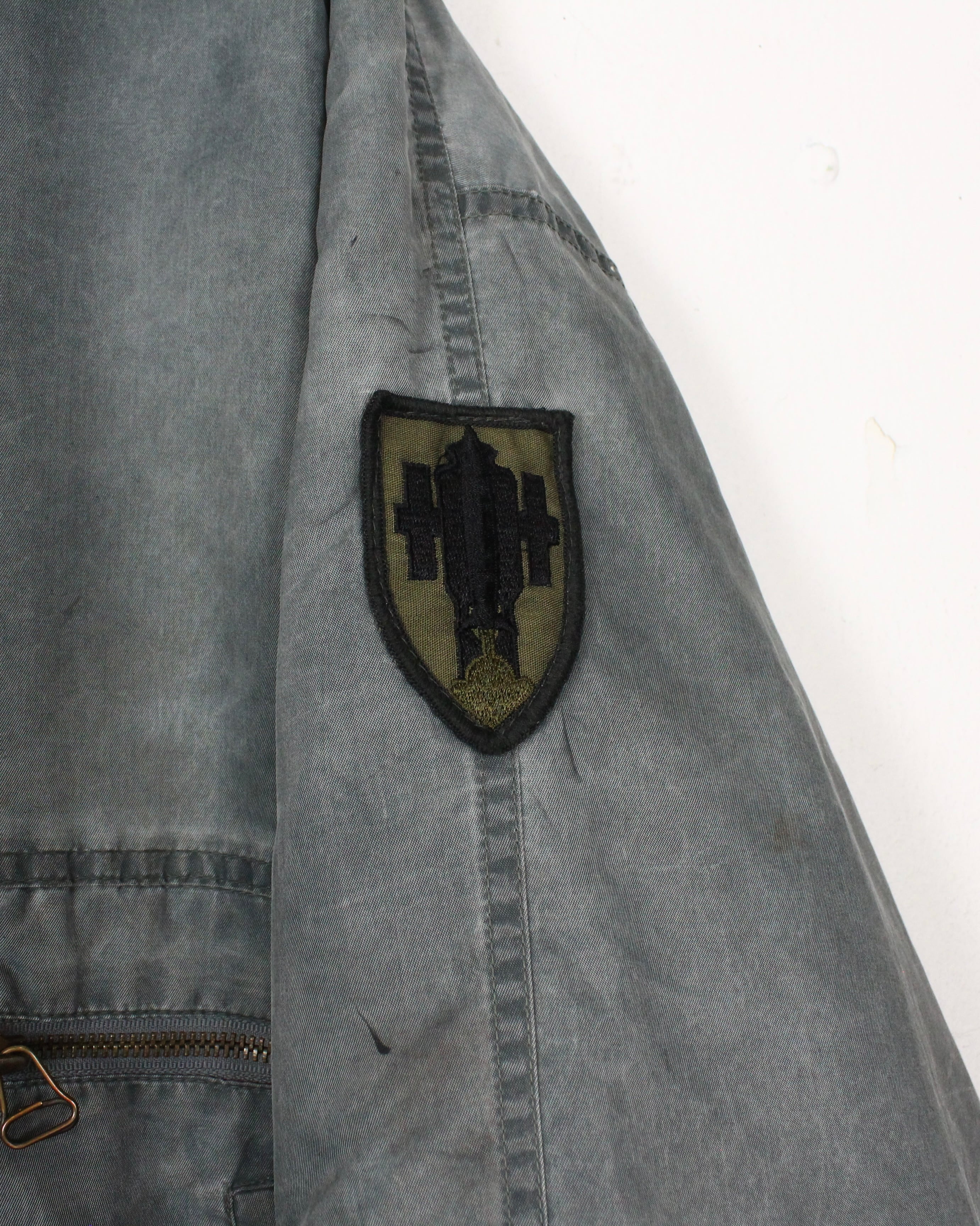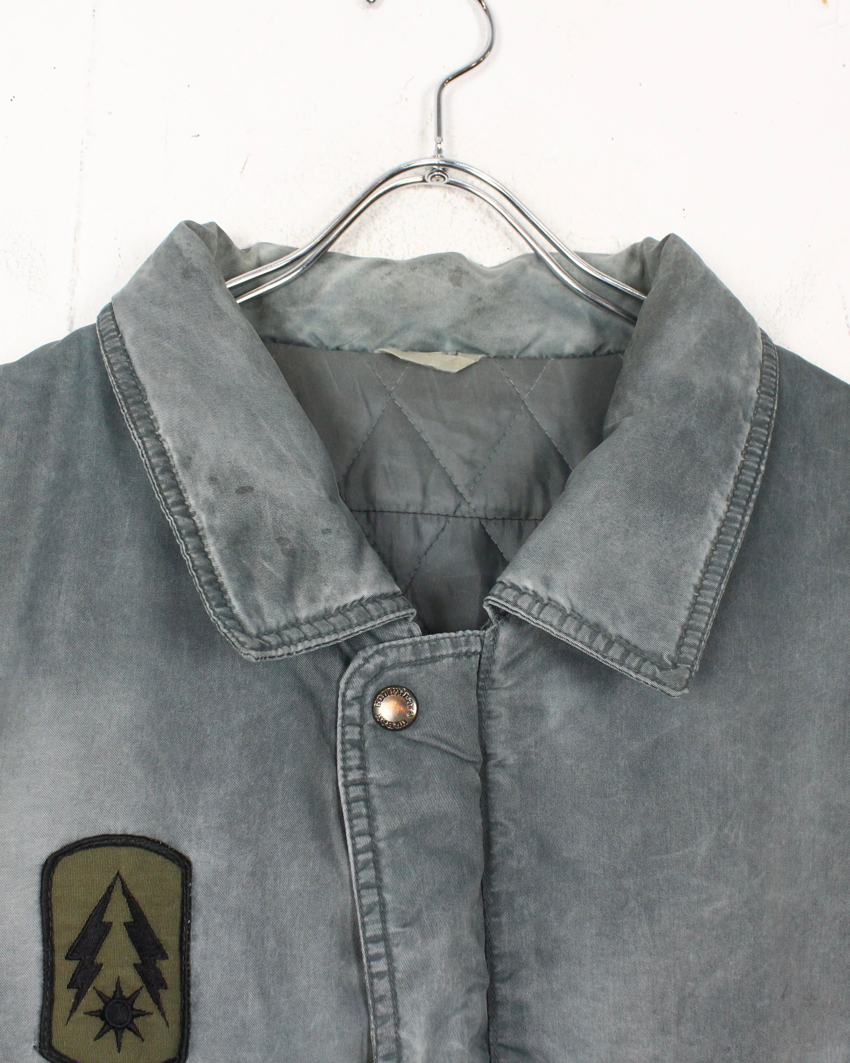 無骨なミリタリーデザインに、経年によるフェード感が美しく溶け込んだ、モードにもストリートにも映える、ヴィンテージナイロンジャケットの逸品です。