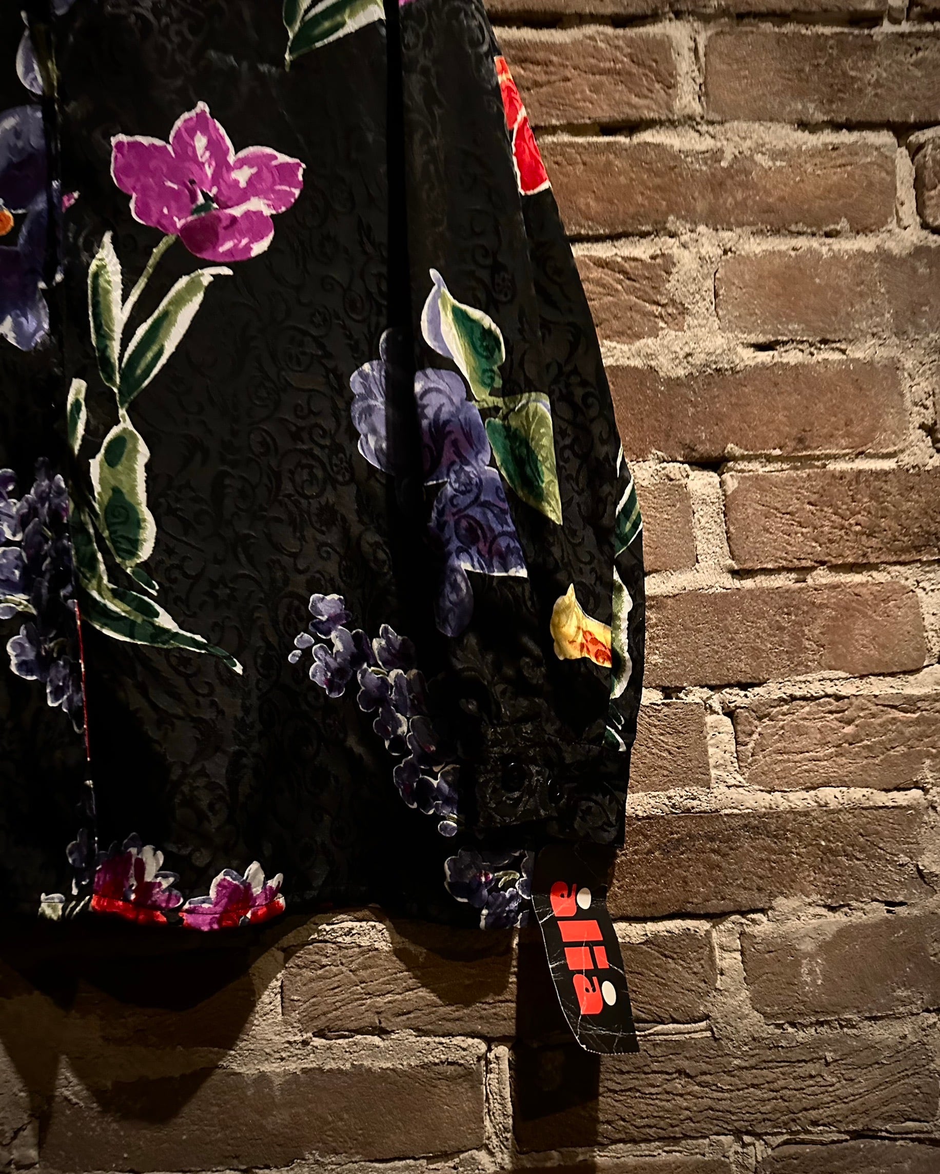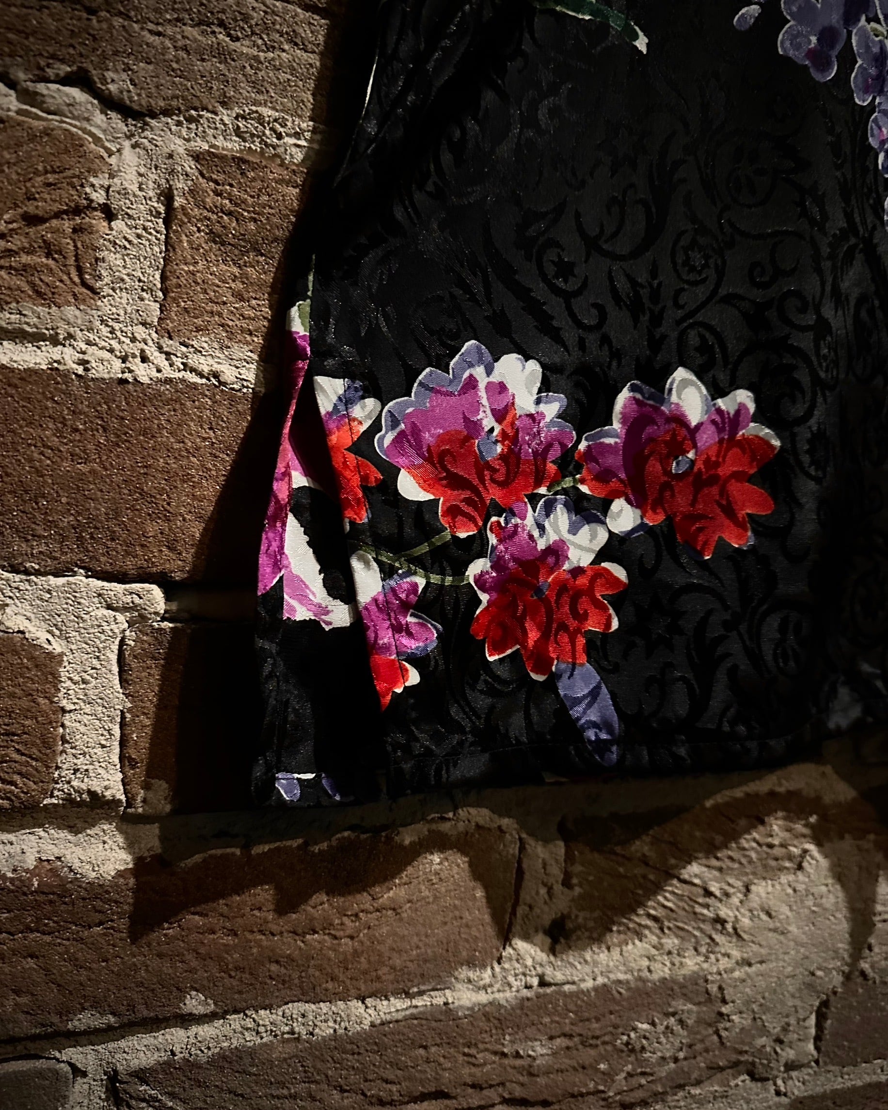 羽織るだけで主役になる存在感を持ちながら、ブラックベースによって派手すぎず、深みのある品格を保つバランスも魅力。