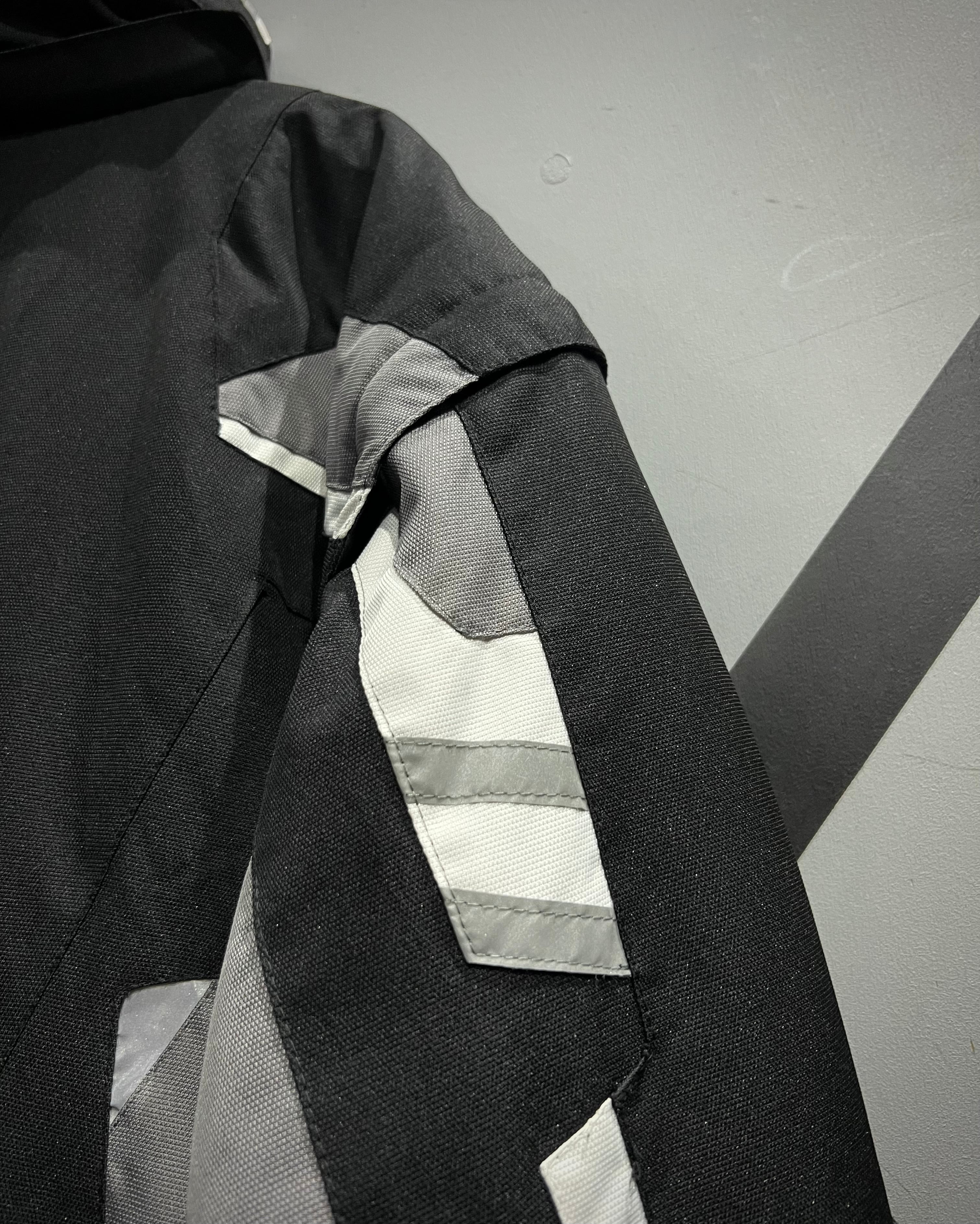 ブラック×グレーのボディに、ホワイトのライン切り替えを配した近未来的なデザイン。フロントからアームにかけて走る立体的なカットワークがアクティブかつモードな雰囲気を醸し出します。