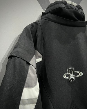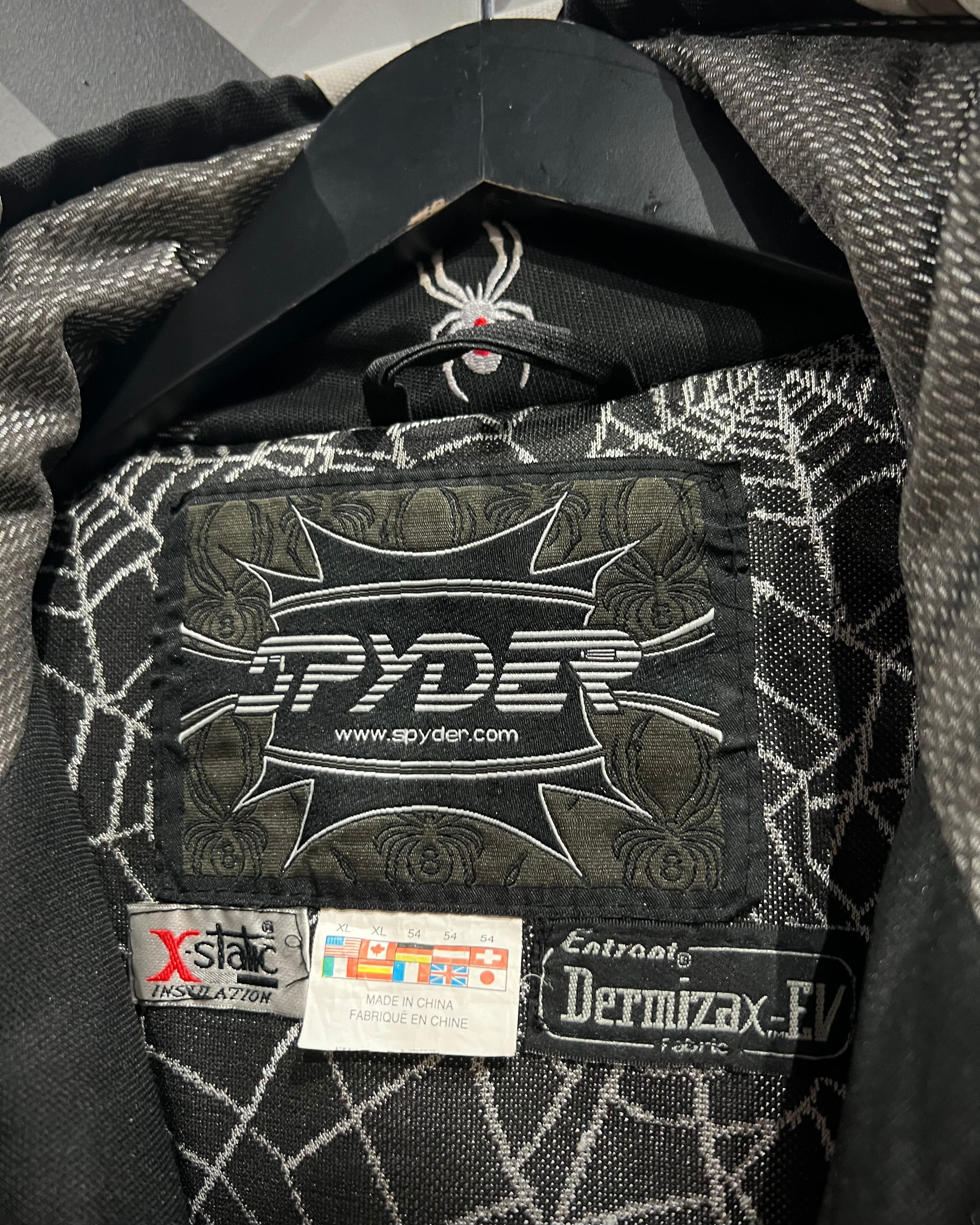 胸にはSPYDERロゴ、背面には象徴的なスパイダー刺繍を配置。スポーツギアとしてのアイデンティティをしっかりと主張。
