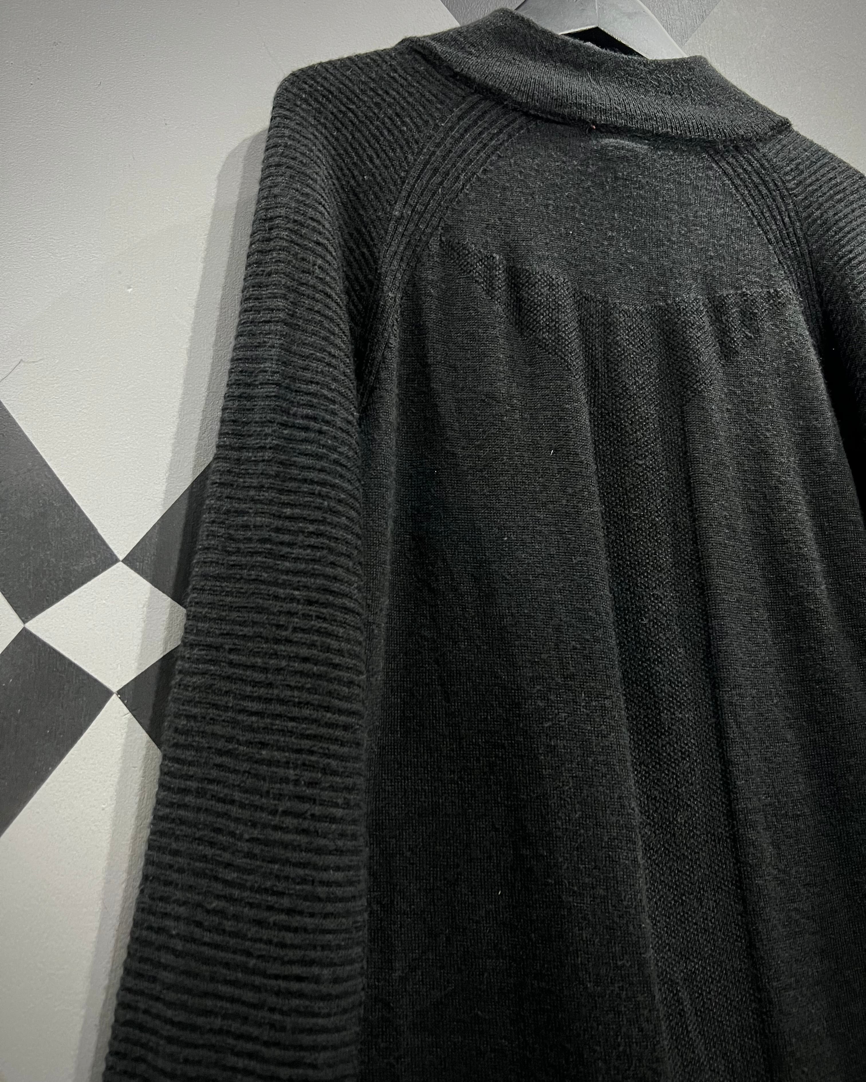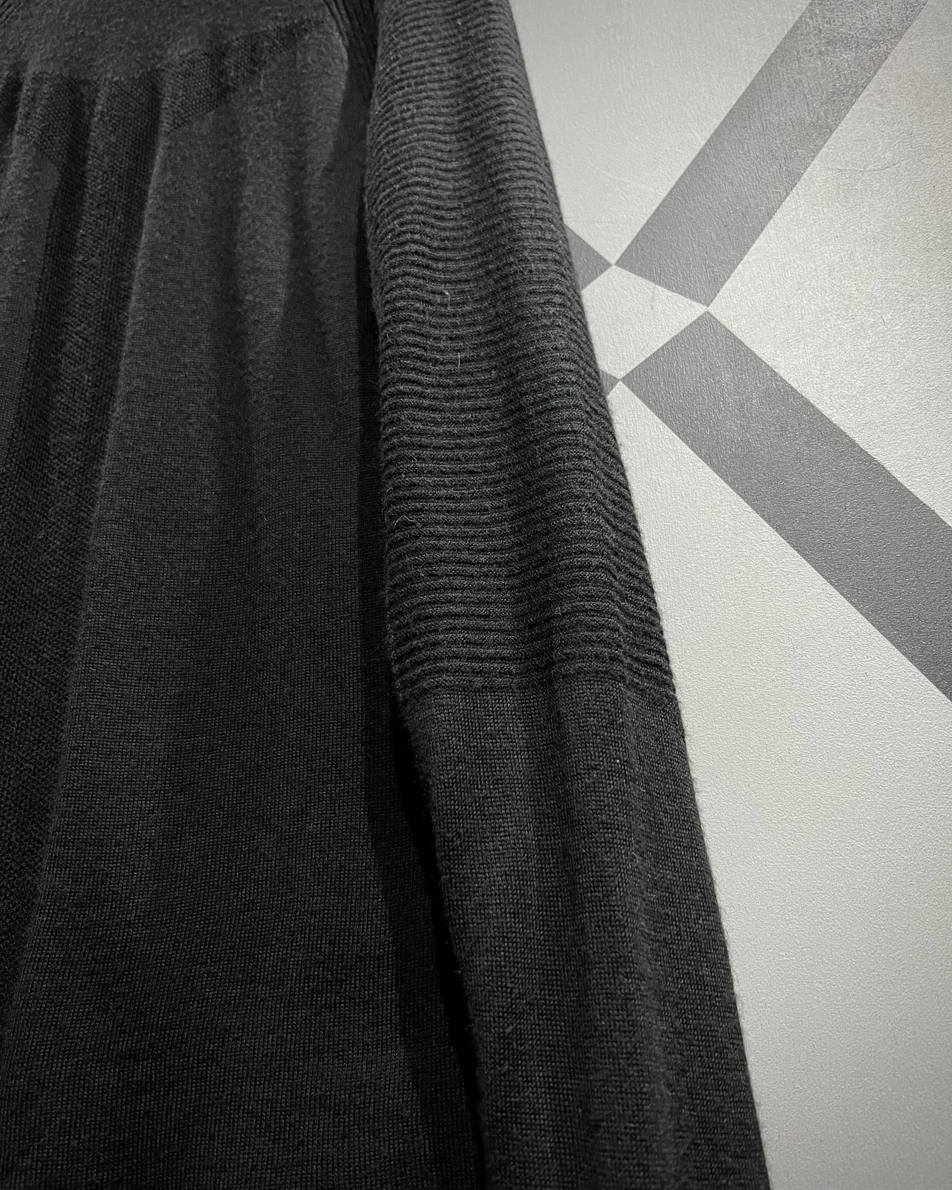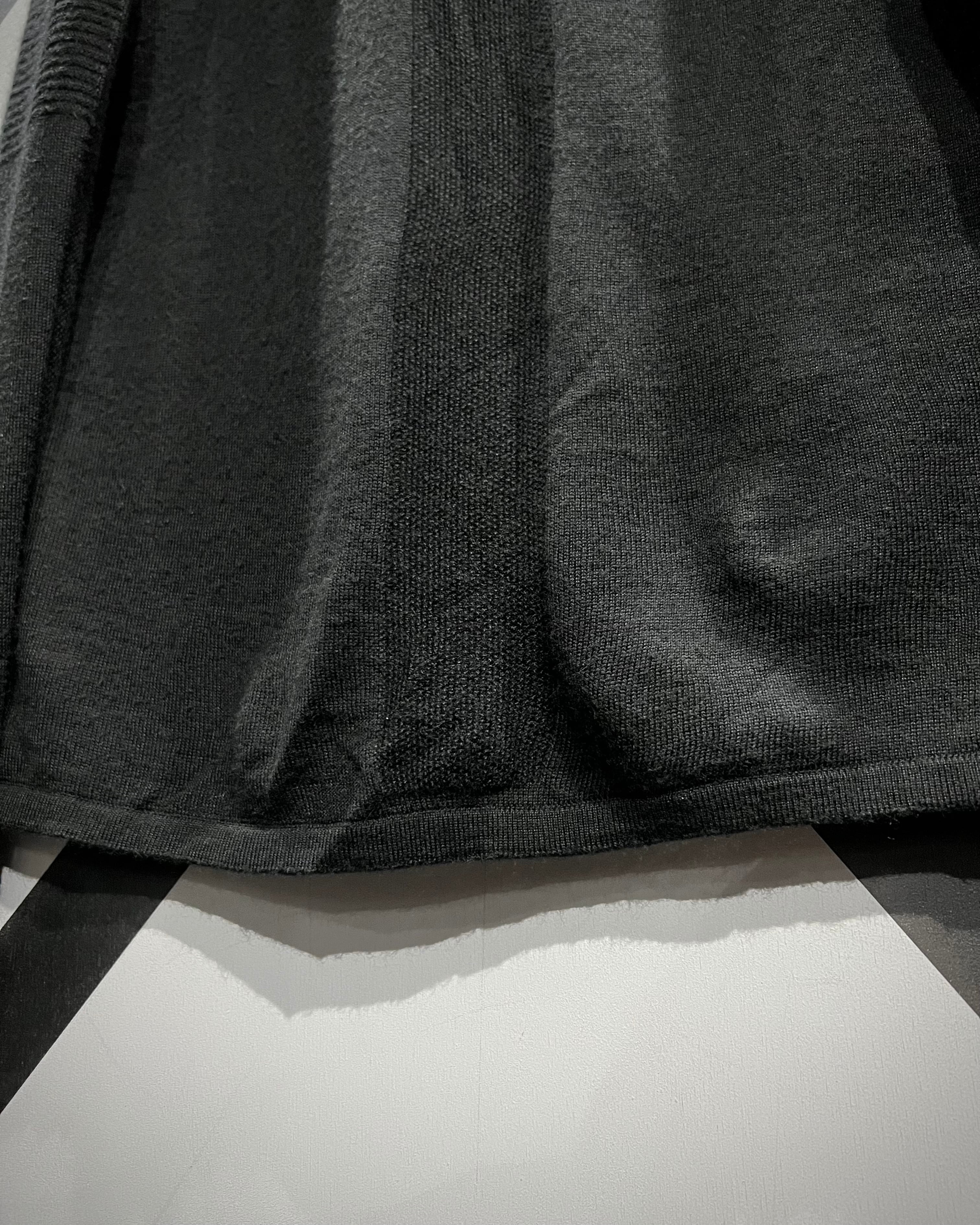 フロント中央にロゴ刺繍を控えめに配置し、ソリッドなブラックボディで統一。袖から肩にかけての編みの切り替えが、可動性と立体感を生み出し、パフォーマンスウェアらしい機能的デザインを演出しています。