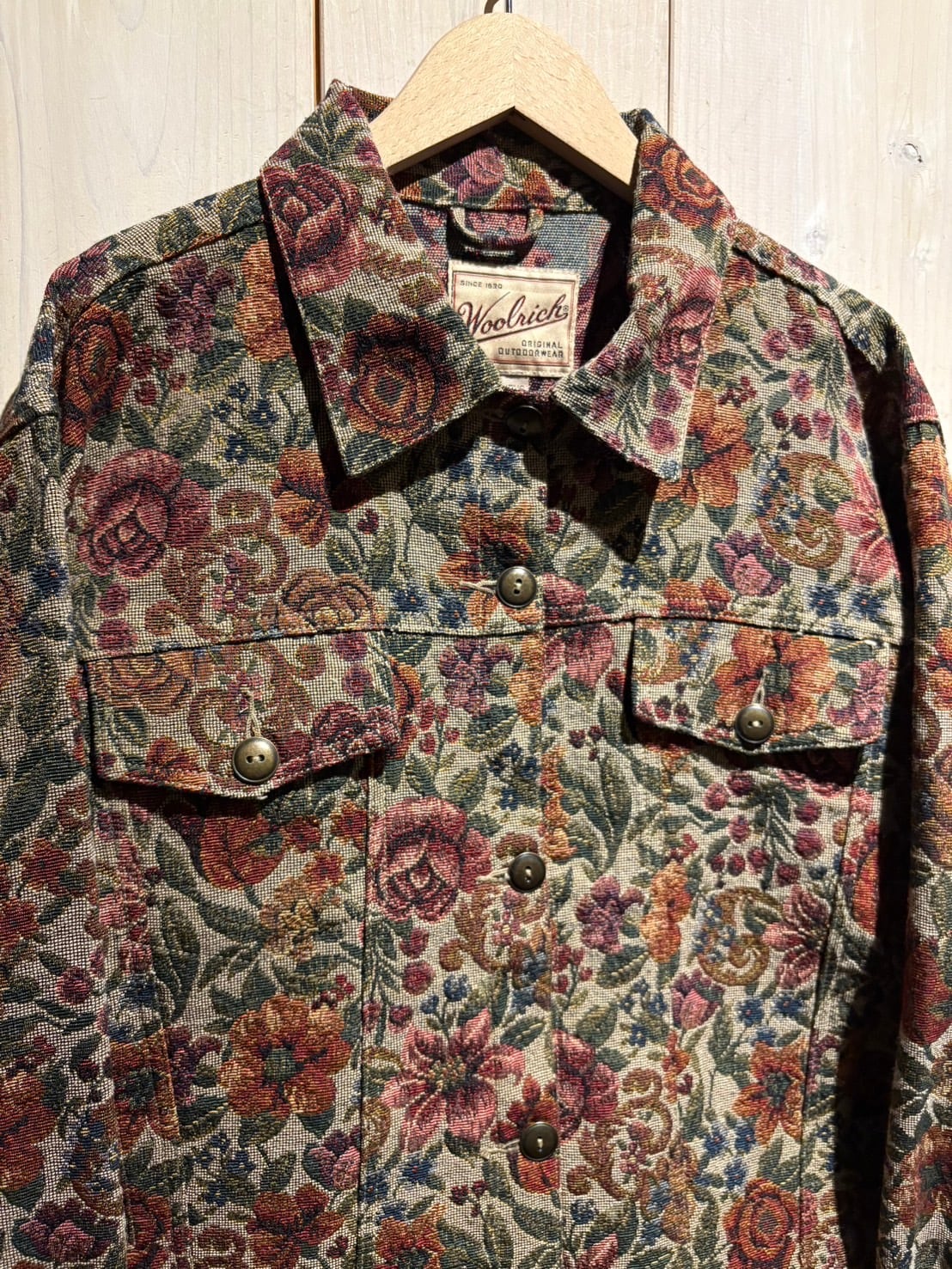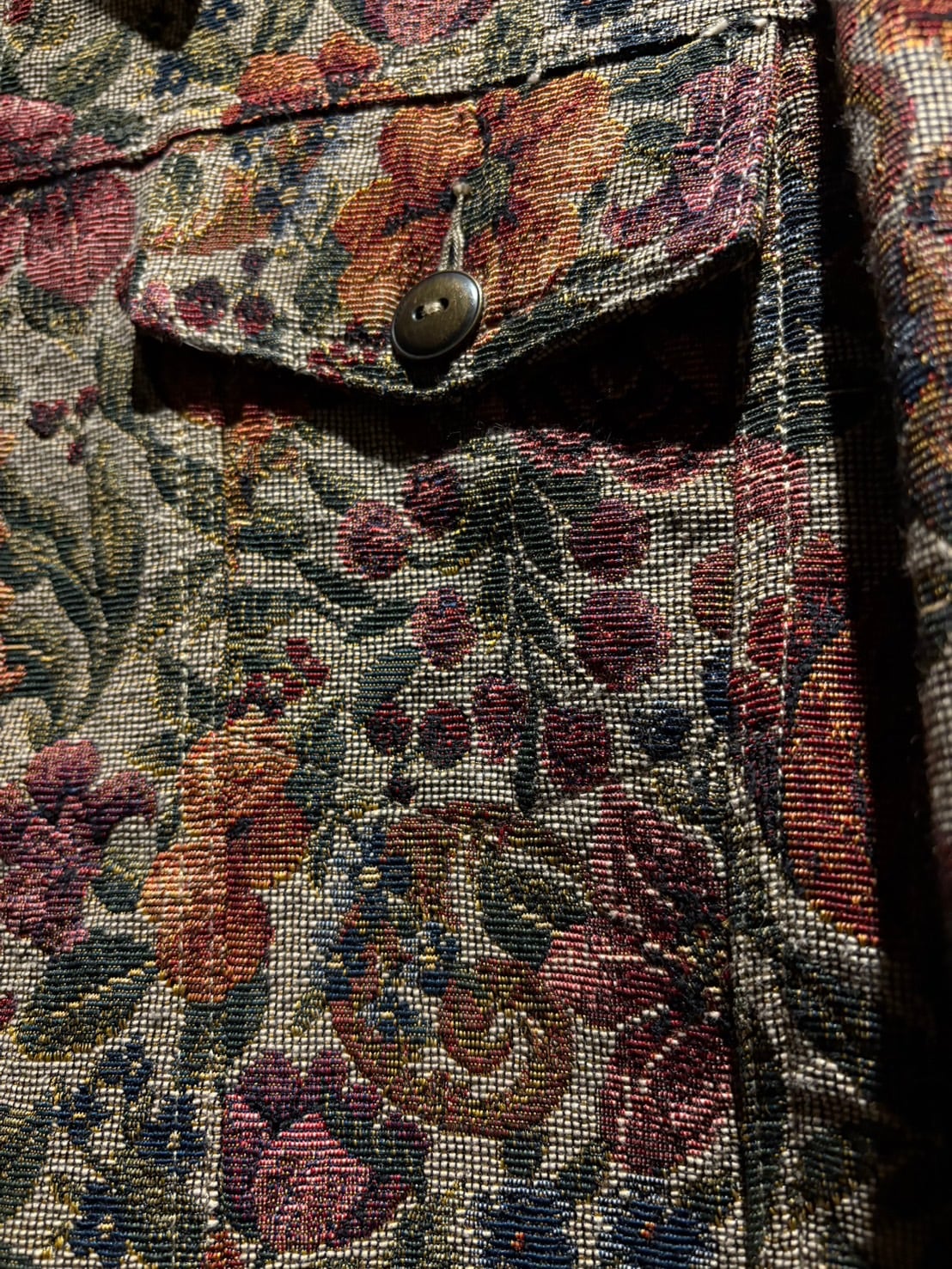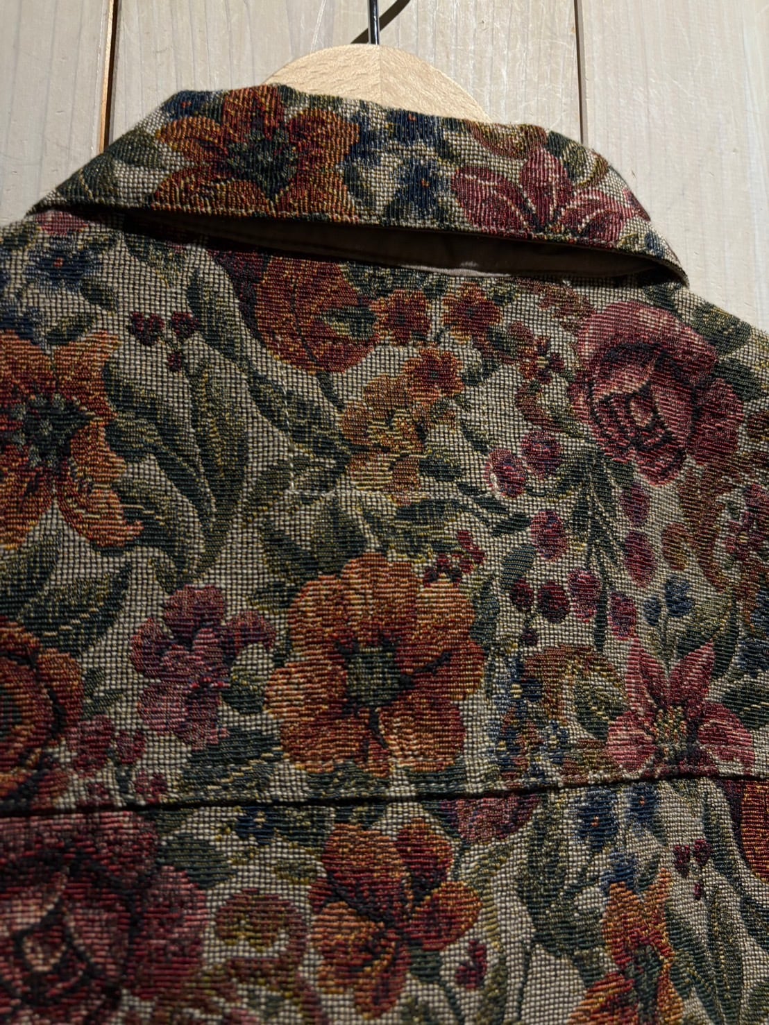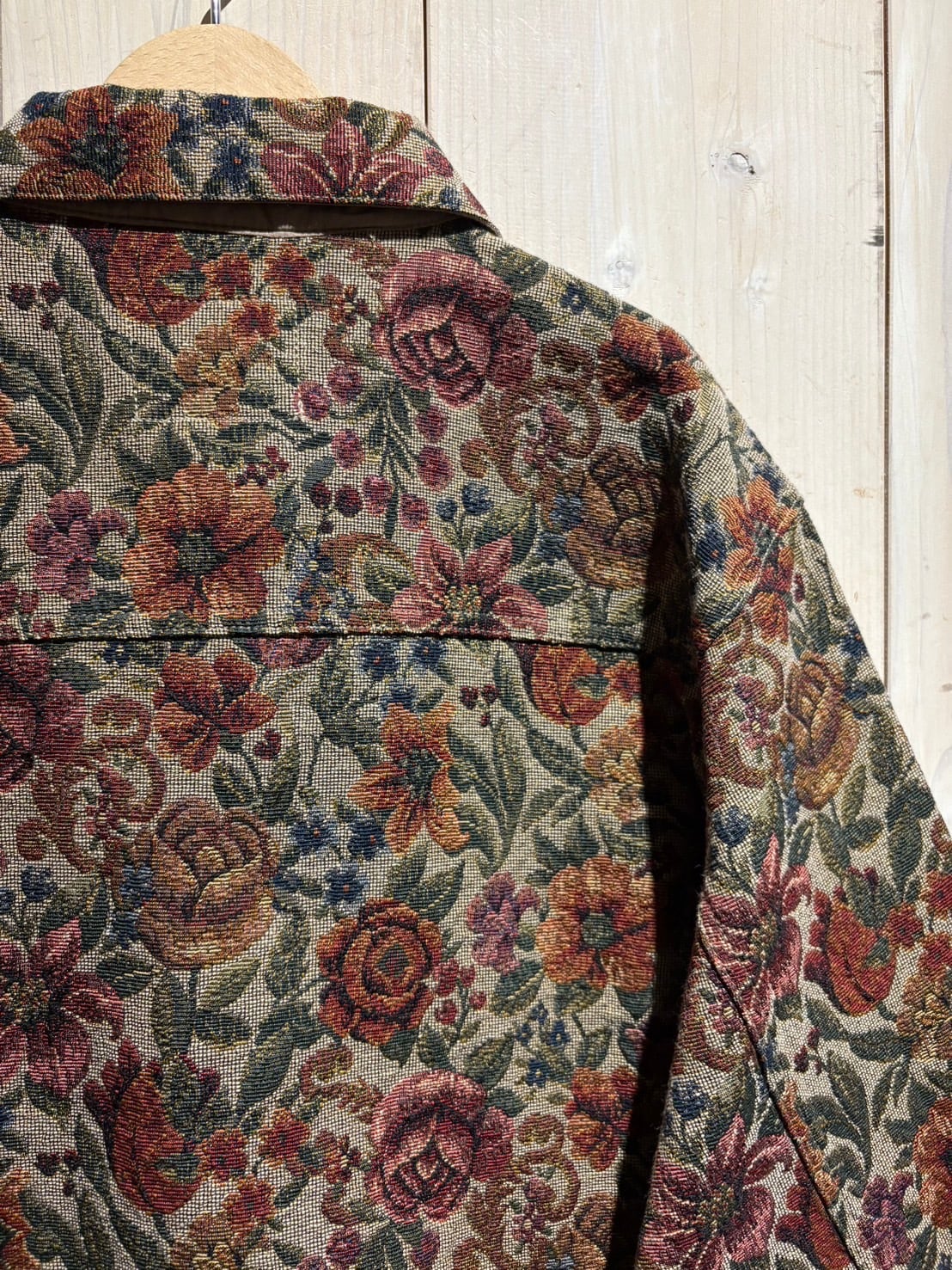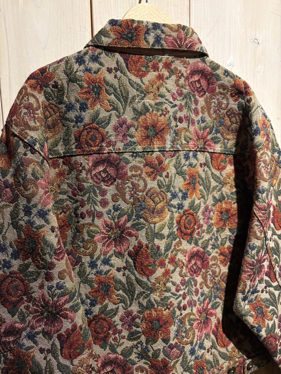 上質なゴブラン織で美しい花柄をボディ全体に表現した、稀少なトラッカー型のゴブランジャケット。