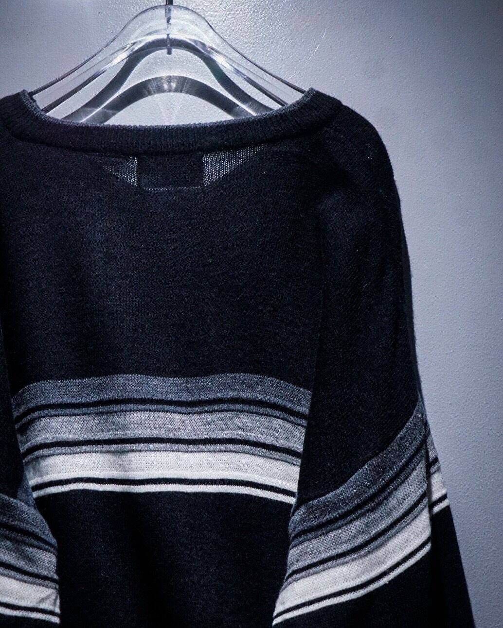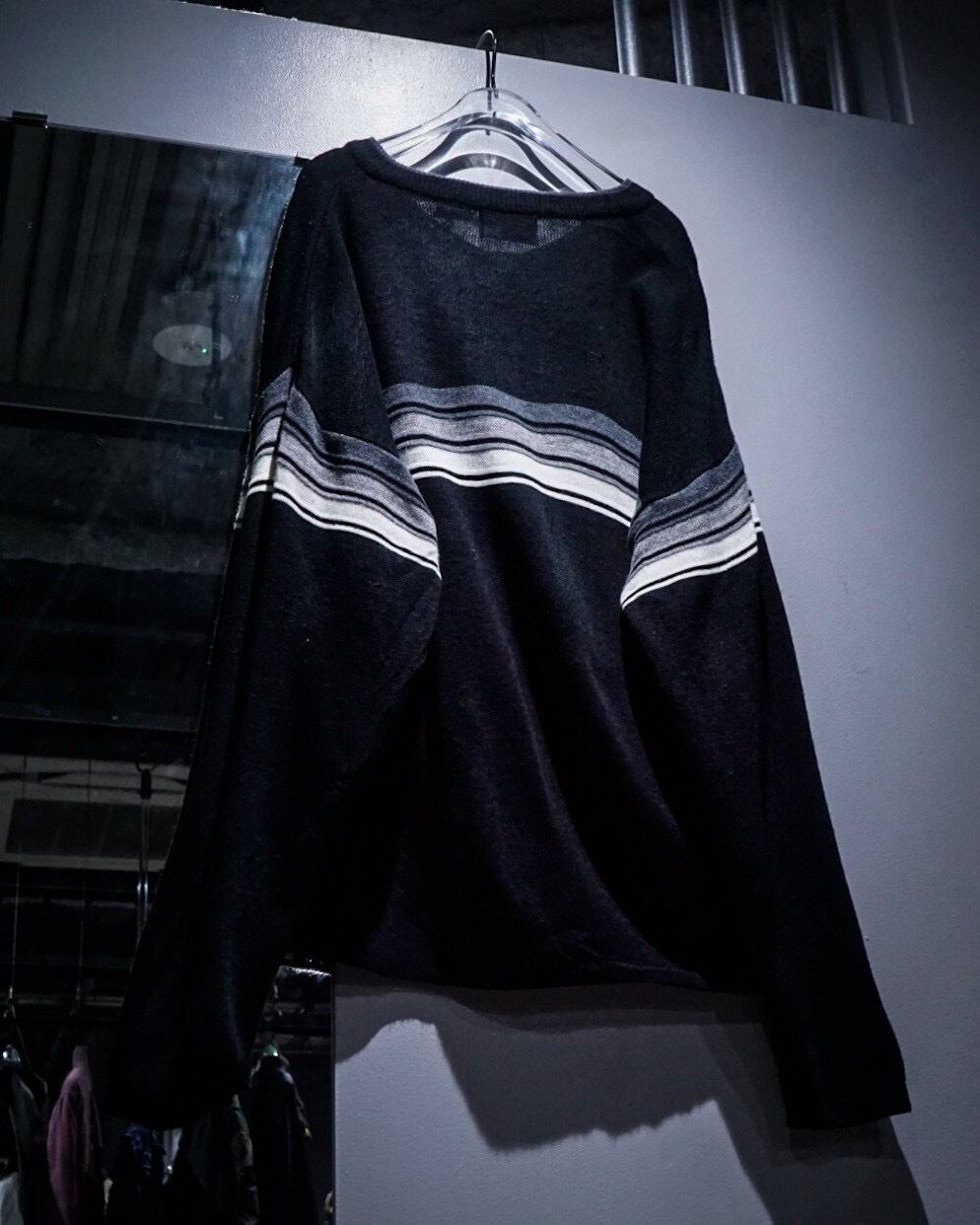ブラックをベースに、グレー、ホワイトのグラデーションボーダーラインを胸から袖にかけて大胆に走らせた、当時らしい雰囲気を纏った1着。