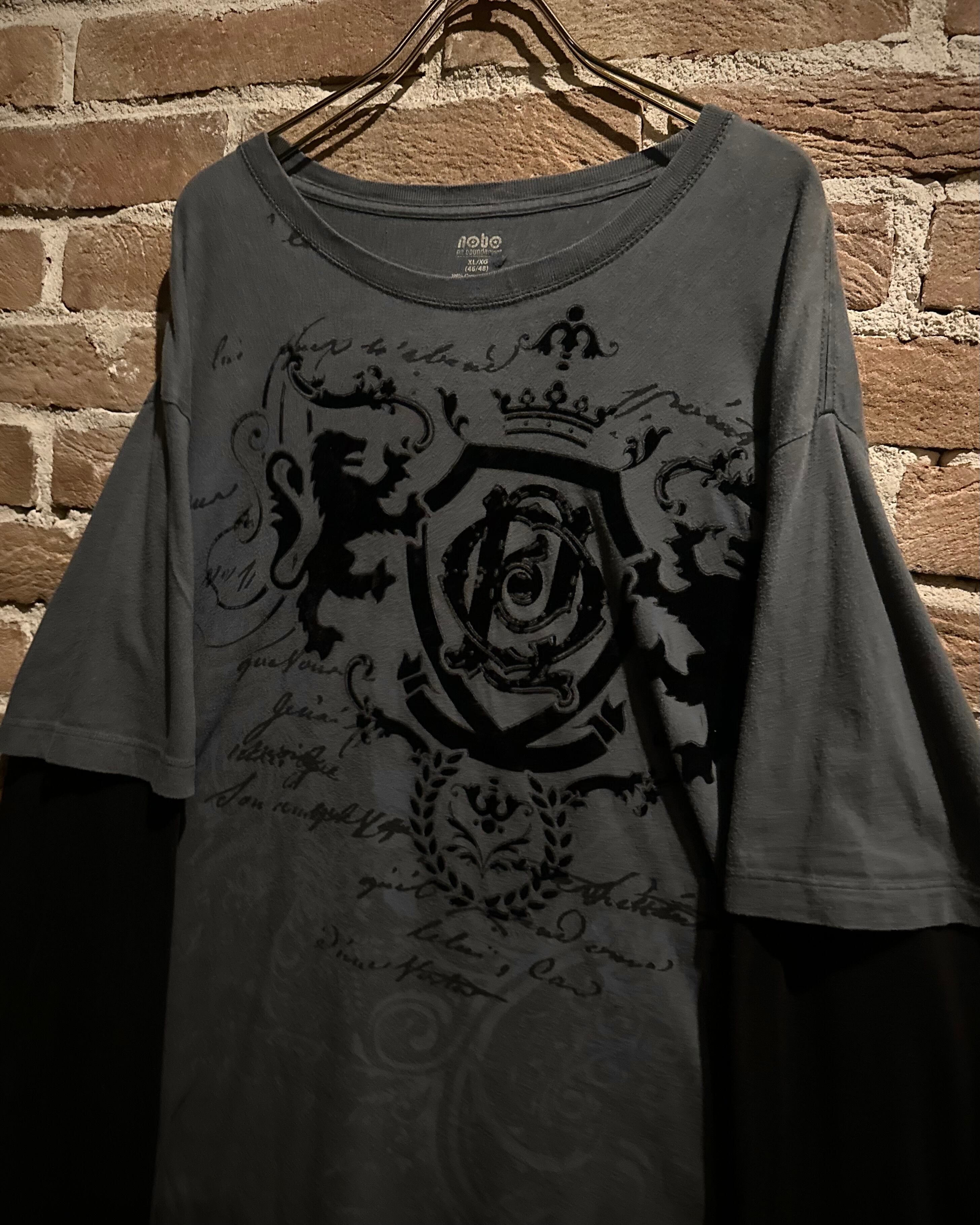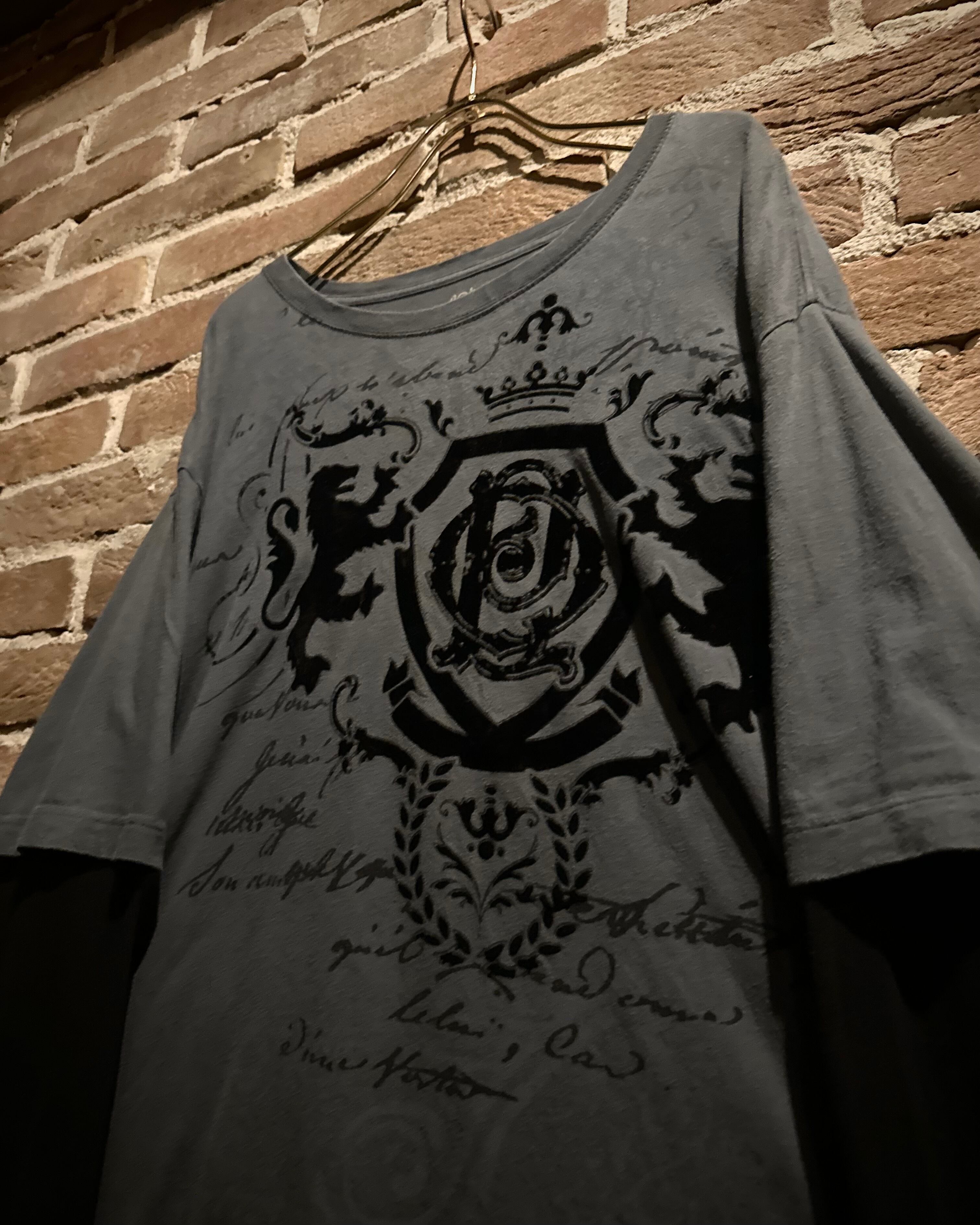 フロッキープリントの質感とレイヤードの奥行きが共存する、ゴシックムード漂うスペシャルなカットソーです。