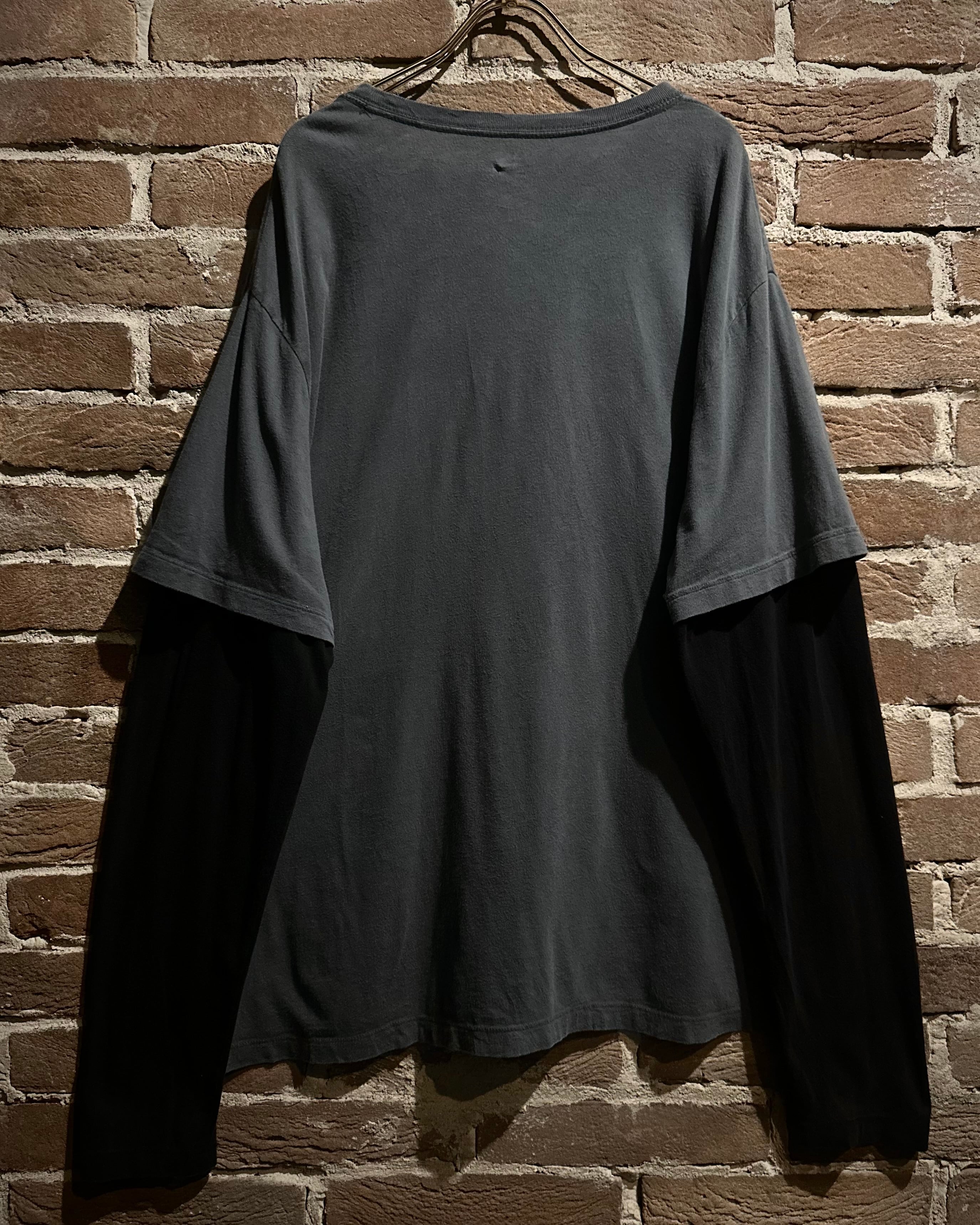 ロンTの上からTシャツを重ね着したような、レイヤードデザインが印象的な1着。