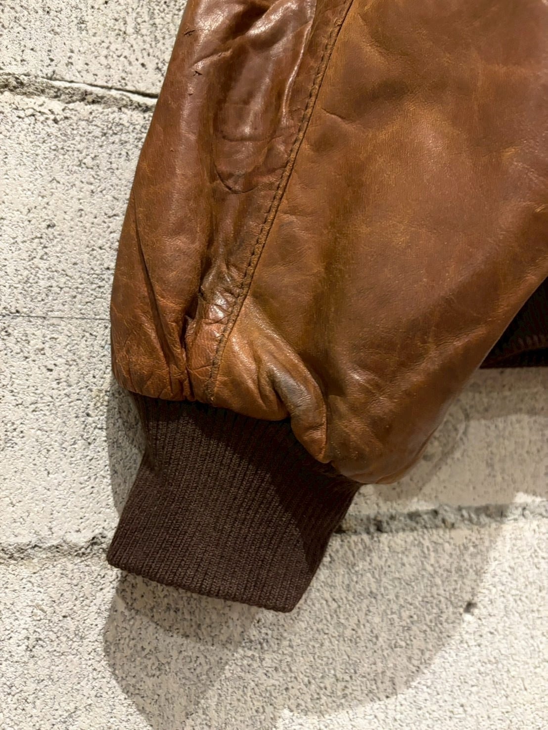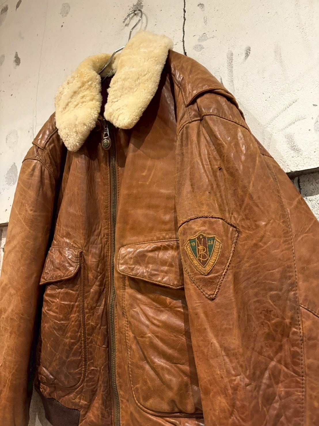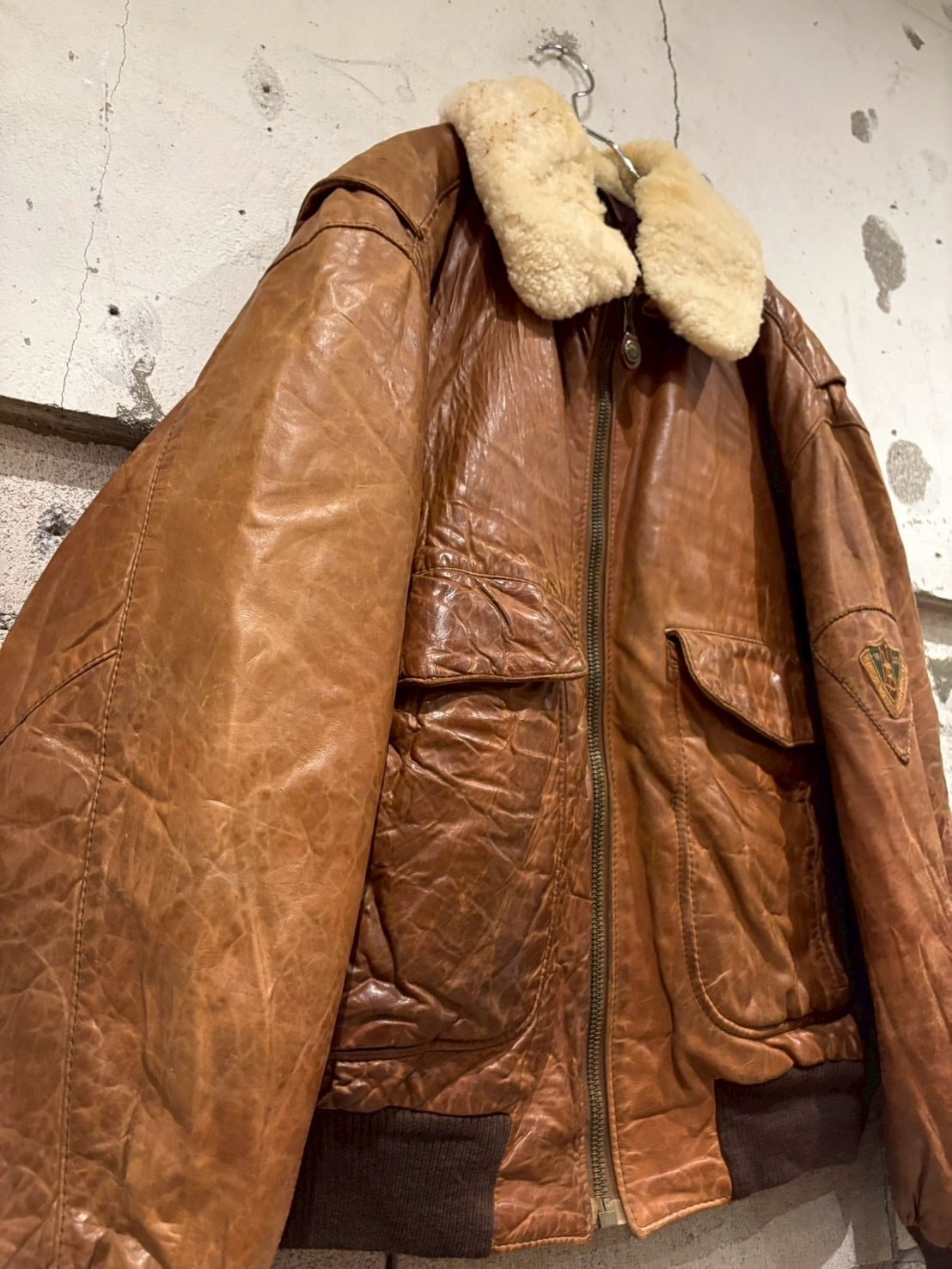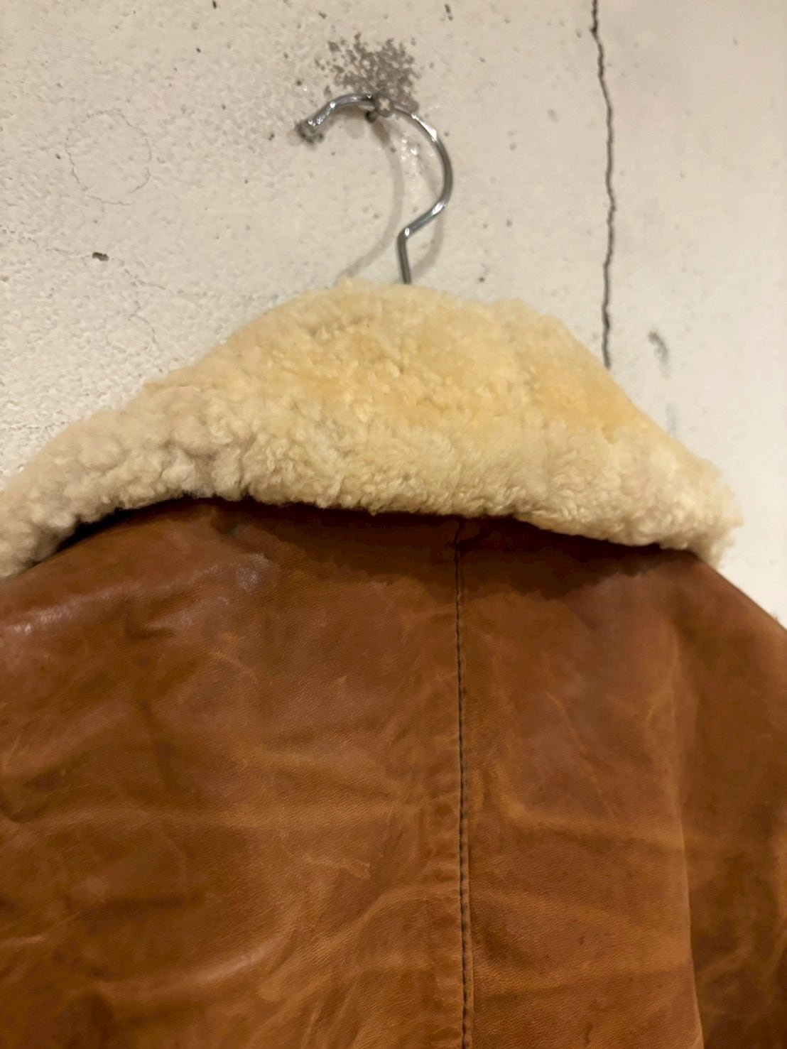 柔らかくも厚みのある上質なレザーを採用し、長年の経年変化による深いシワや艶が圧倒的な存在感を放ちます。襟にはふっくらとしたムートンファーを搭載し、ボタンで着脱可能な仕様。季節やスタイリングに合わせて表情を変えられるのも魅力的なポイントです。