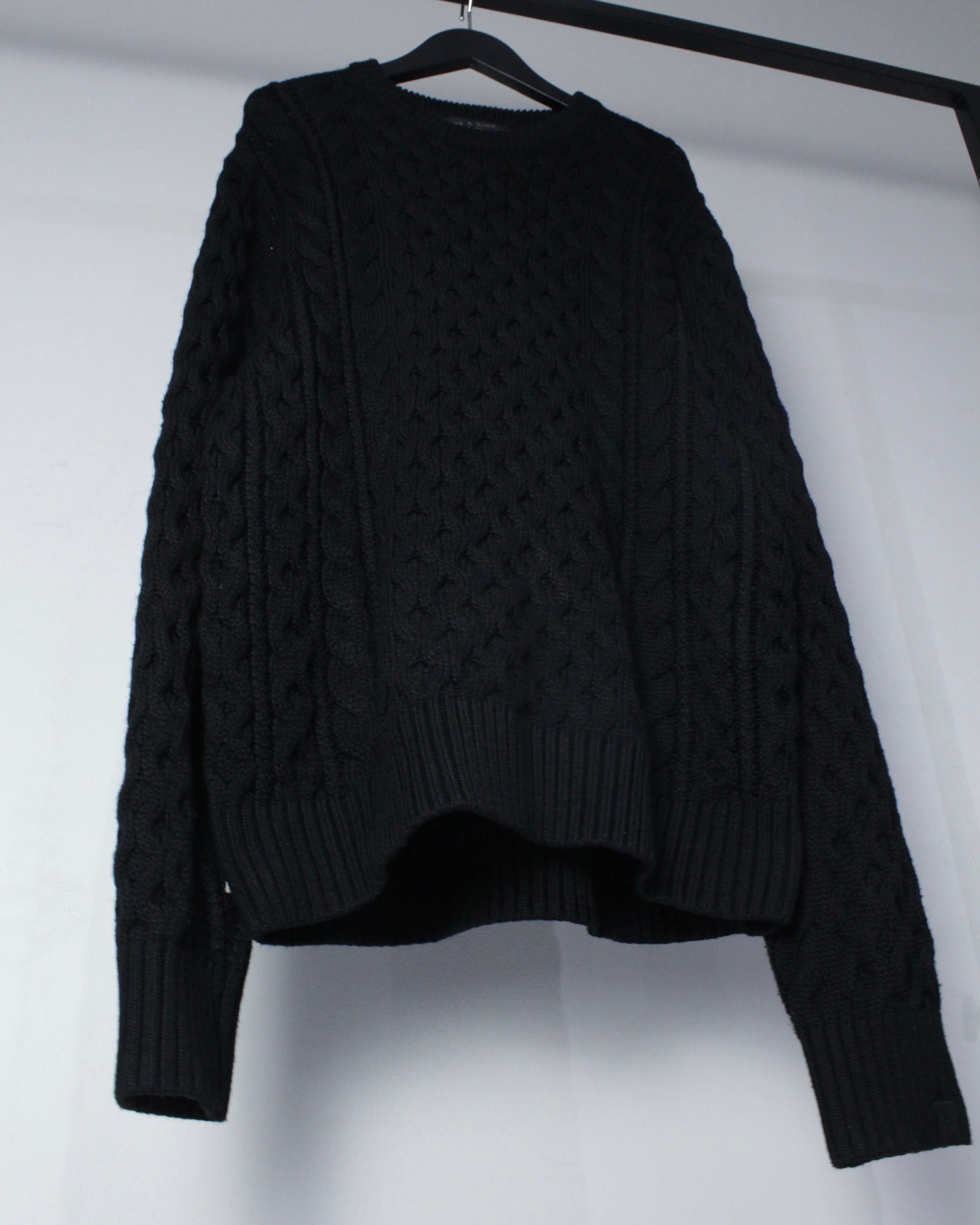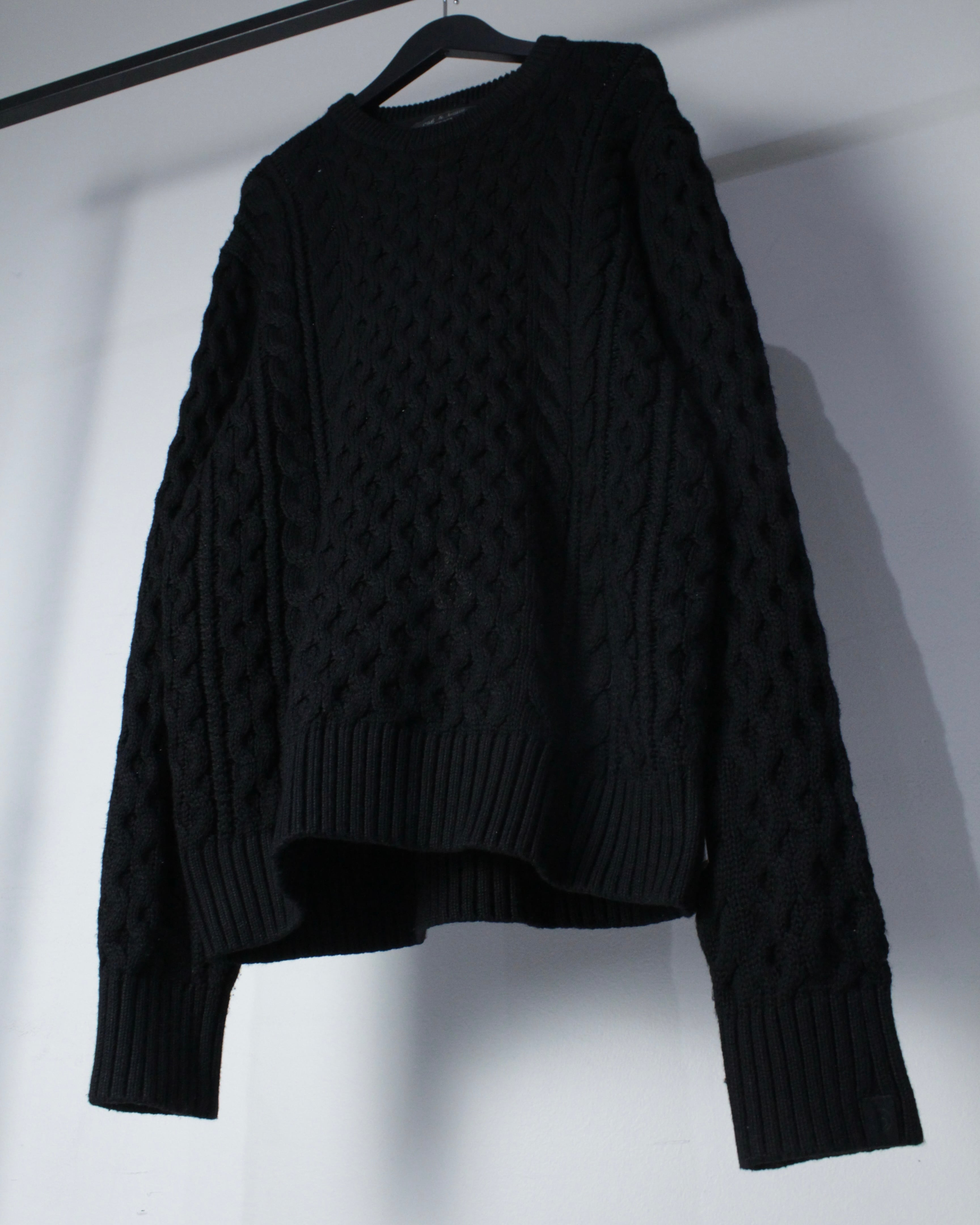 古着市場で見かけることの少ない、オールブラックのアランニット。