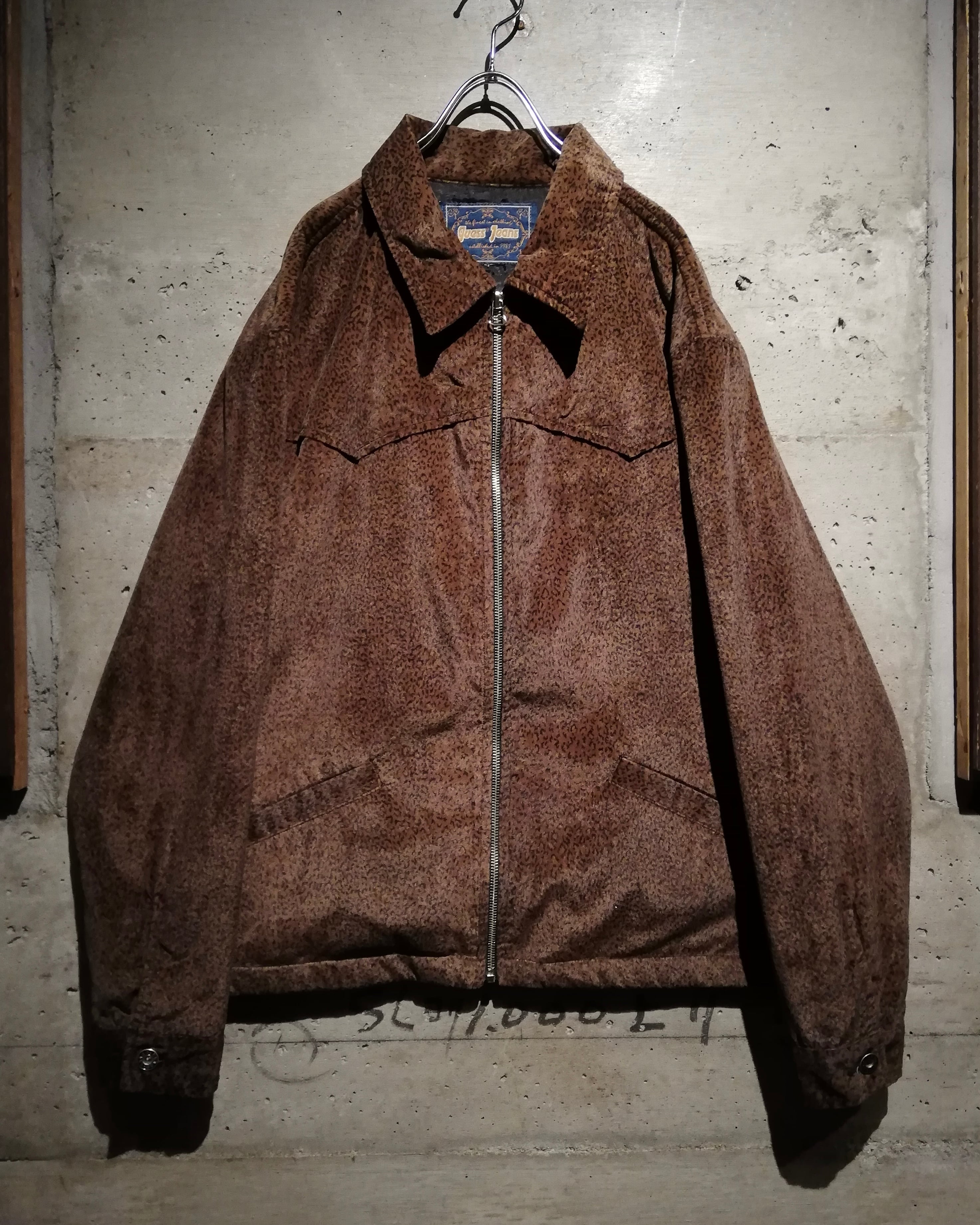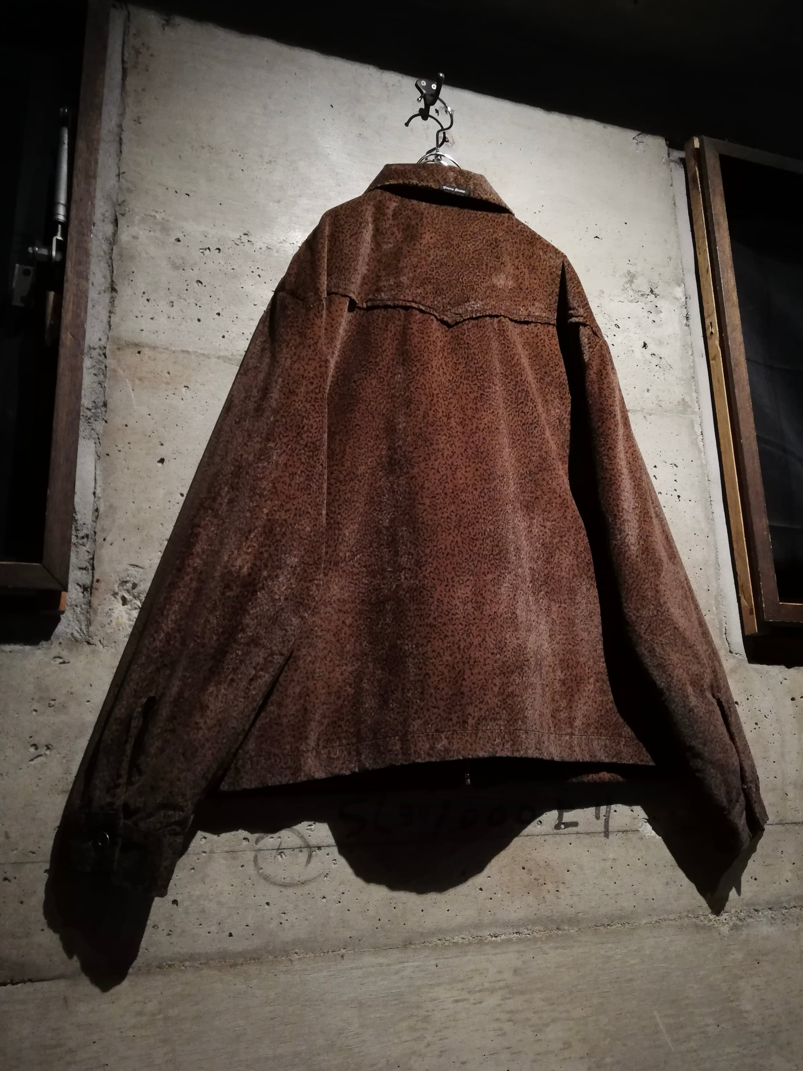 ブラウンを基調とした控えめなレオパードパターンが上品にまとまり、艶やかな素材との相性も抜群。ウエスタンヨークの切り替えや立体的なアームラインなど、クラシカルなスウィングトップをベースに構築的なディテールワーク。シルエットは程よくルーズで、90’s特有の抜け感を漂わせます。