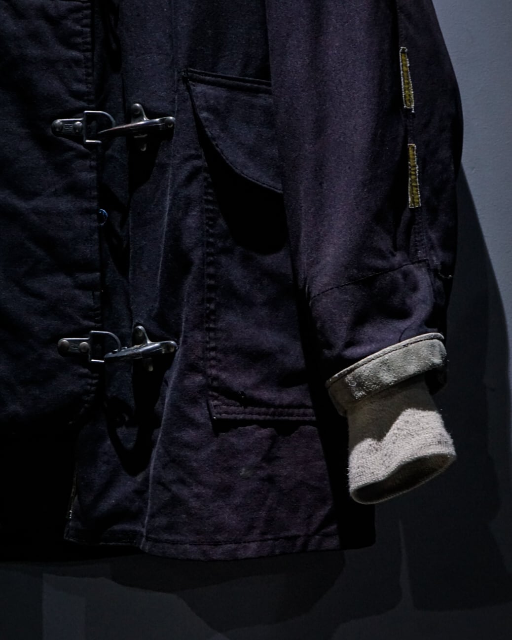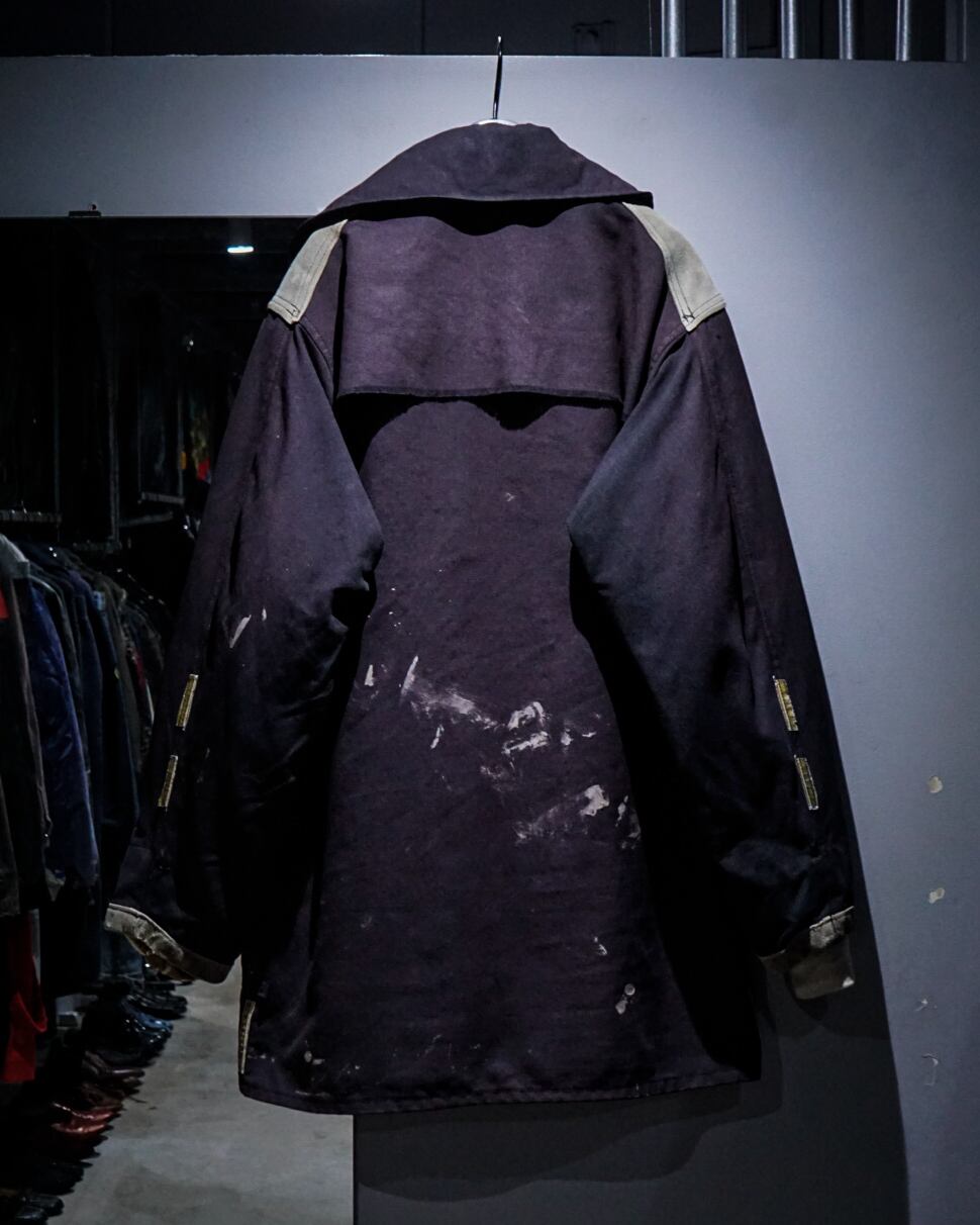 名だたるブランドがデザインソースとして引用してきた、60's のフランスメイドのファイヤーマンジャケット。こちらは長年の着用と経年により、深みあるサンフェードとペイント跡が美しく重なった、USEDでしか出会うことのできない個体。