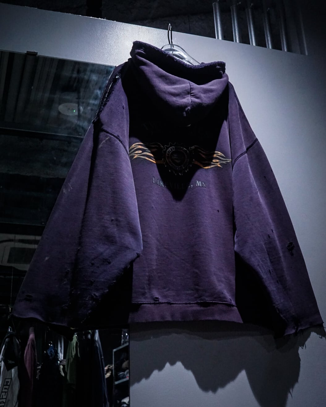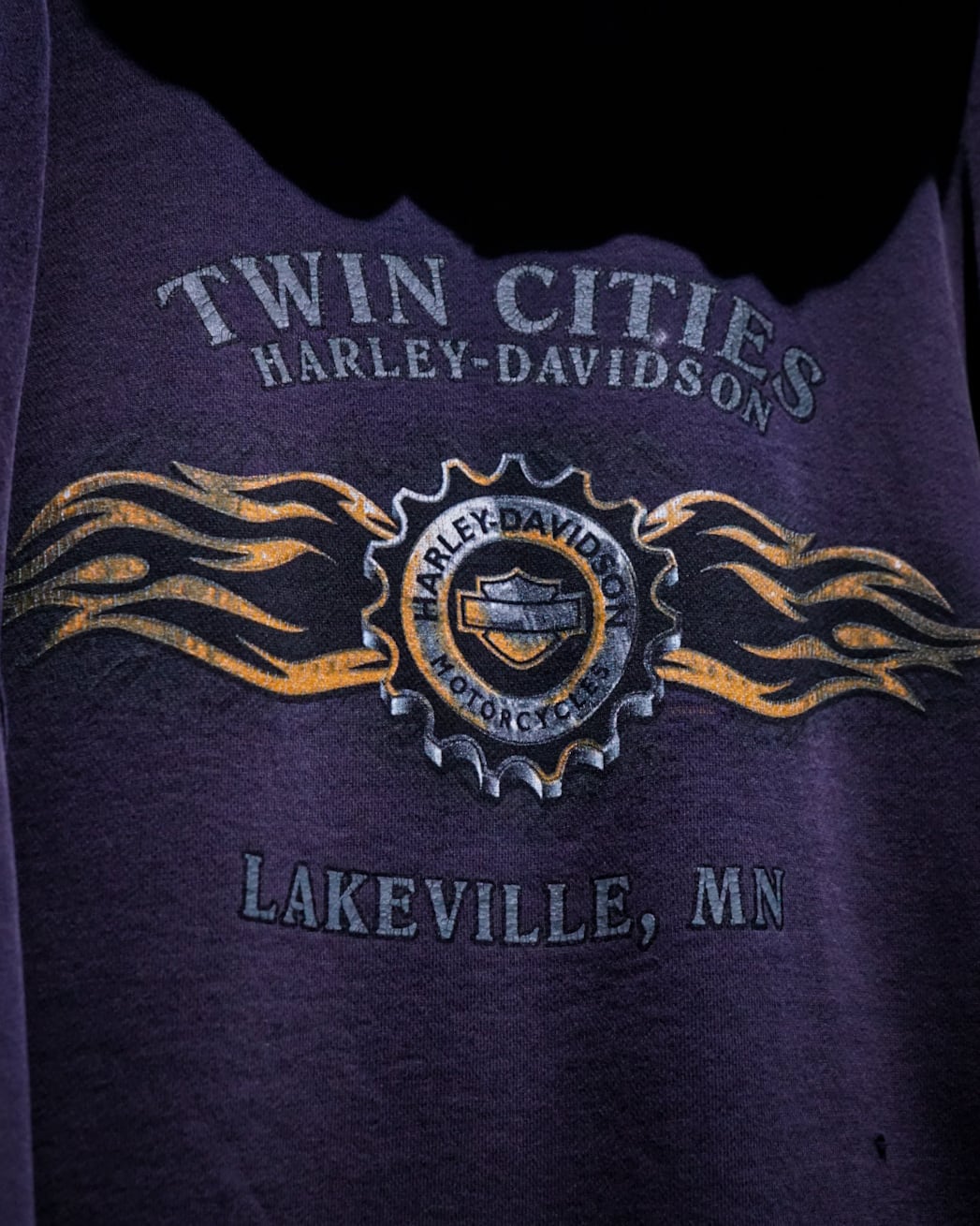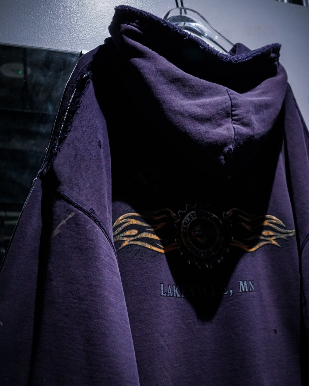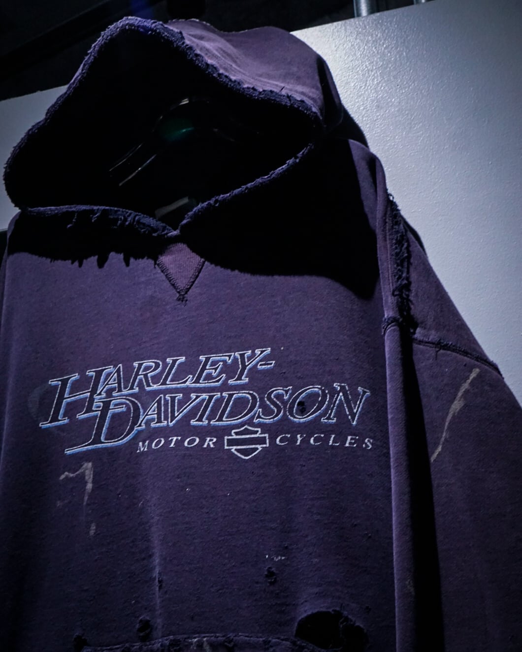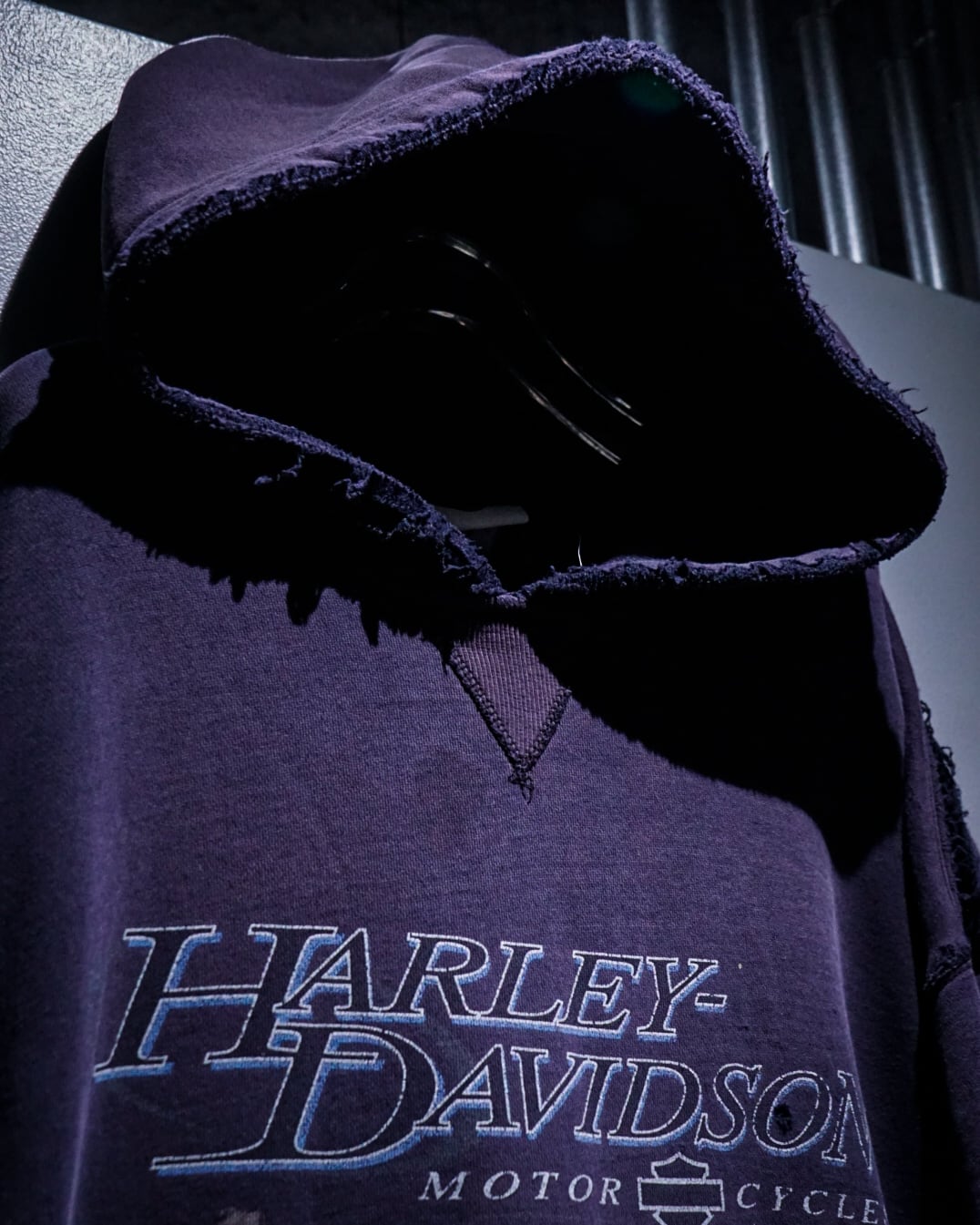 汚れや破れではなく、経年の美として成立する、透明なならではのセレクト。荒廃の中に宿る美学に服好きの心がくすぐられる“HARLEY DAVISON”の1着です。
