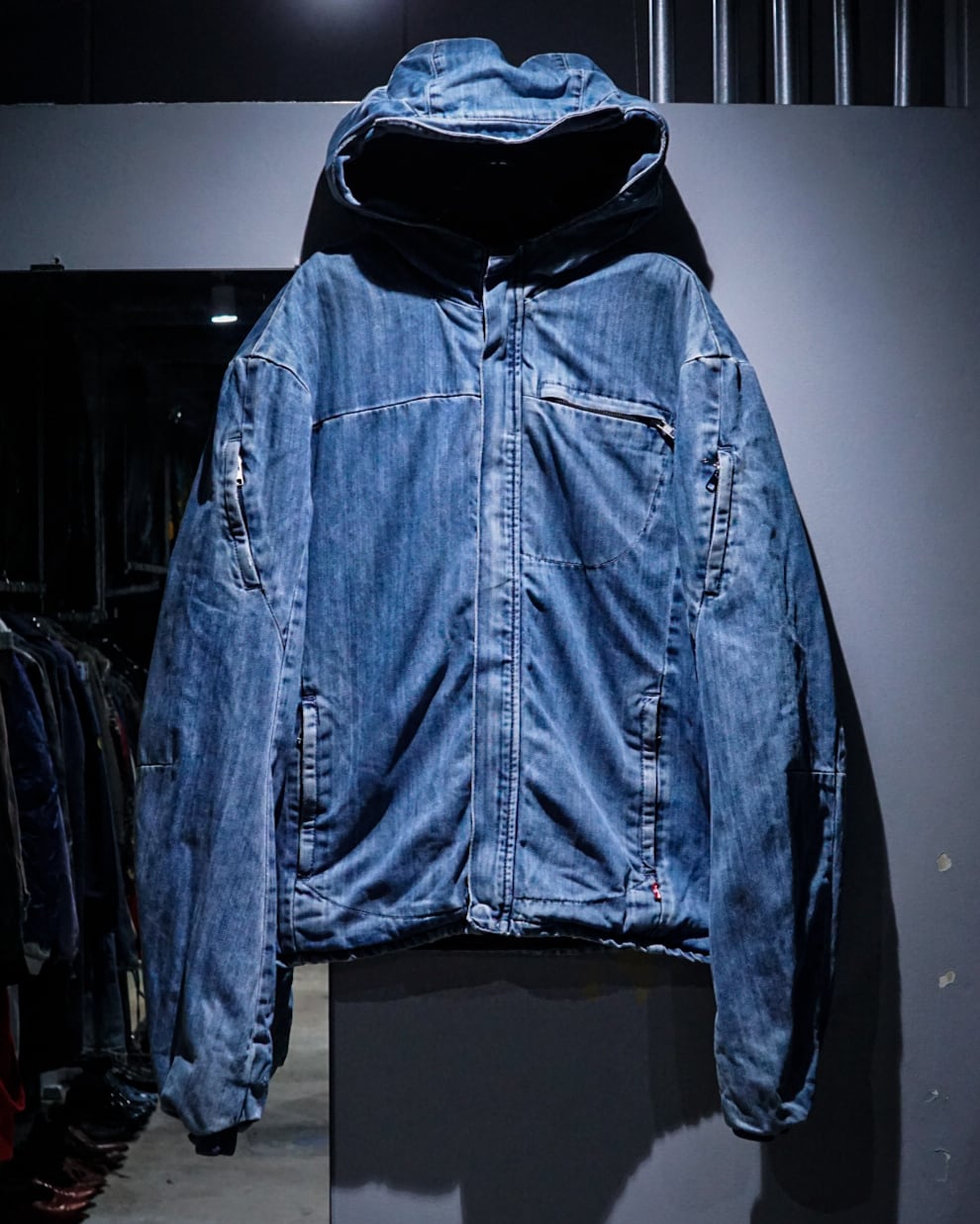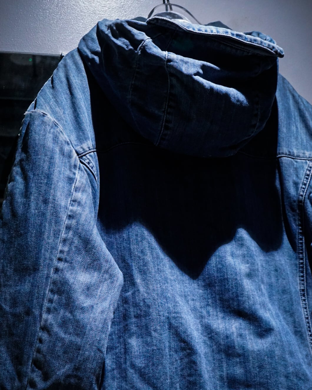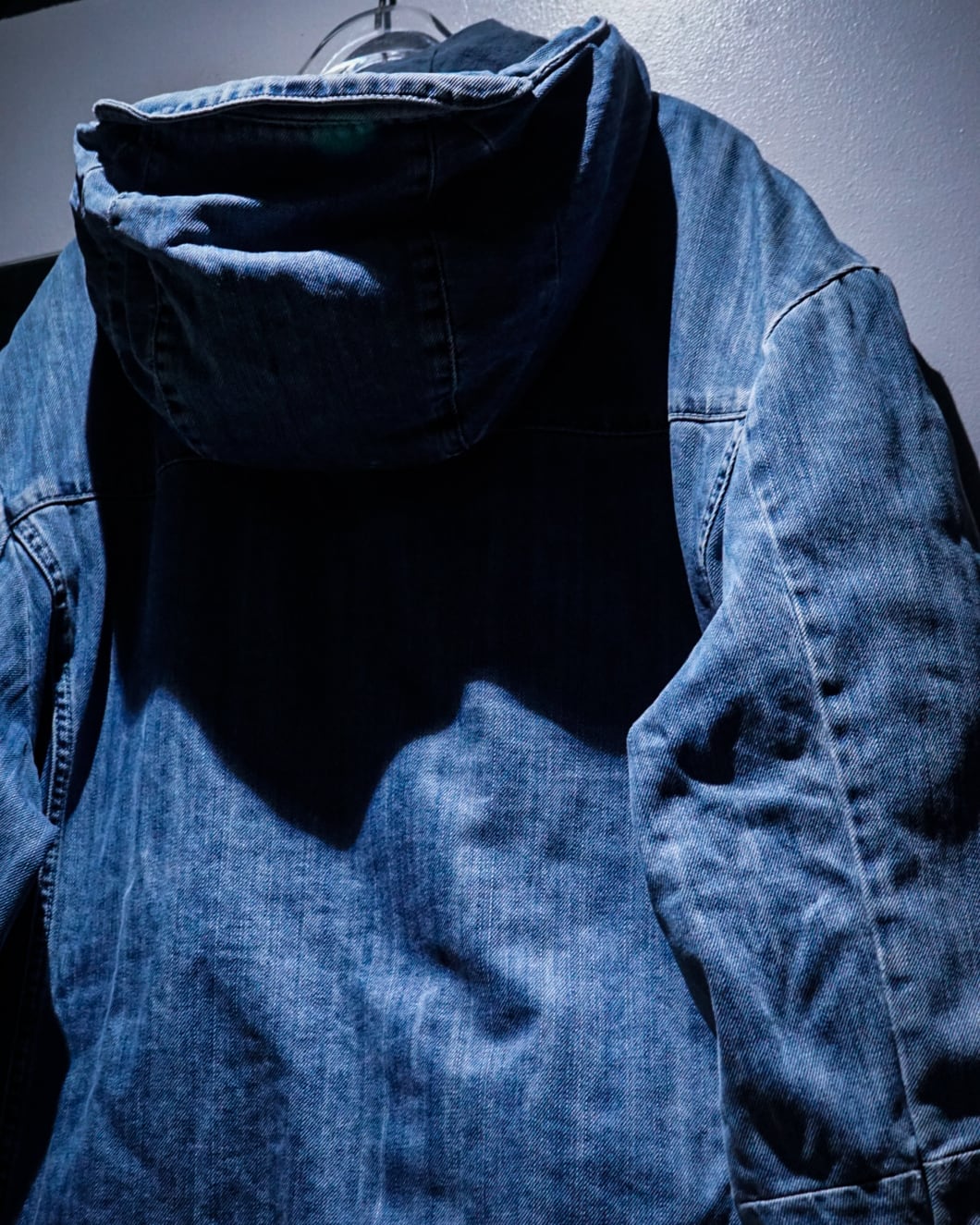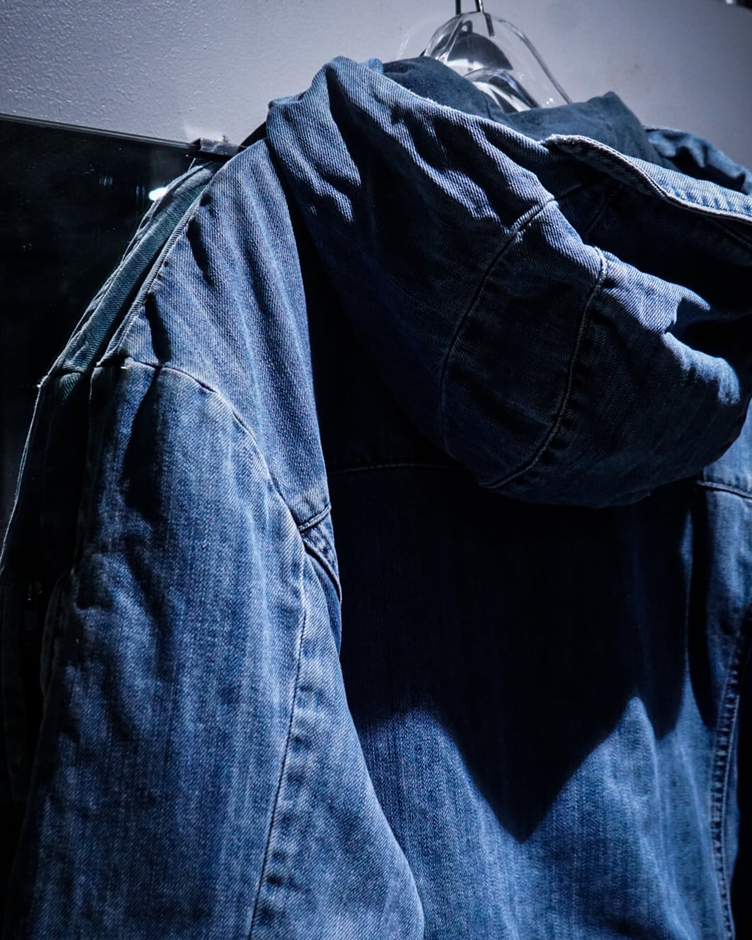 フード付きのショート丈設計は、スウェットやフーディーとのレイヤードにも相性抜群。全体のフェード感と縫製の立体ラインが織りなす陰影が美しく、古着としての味わいを最大限に引き立てています。