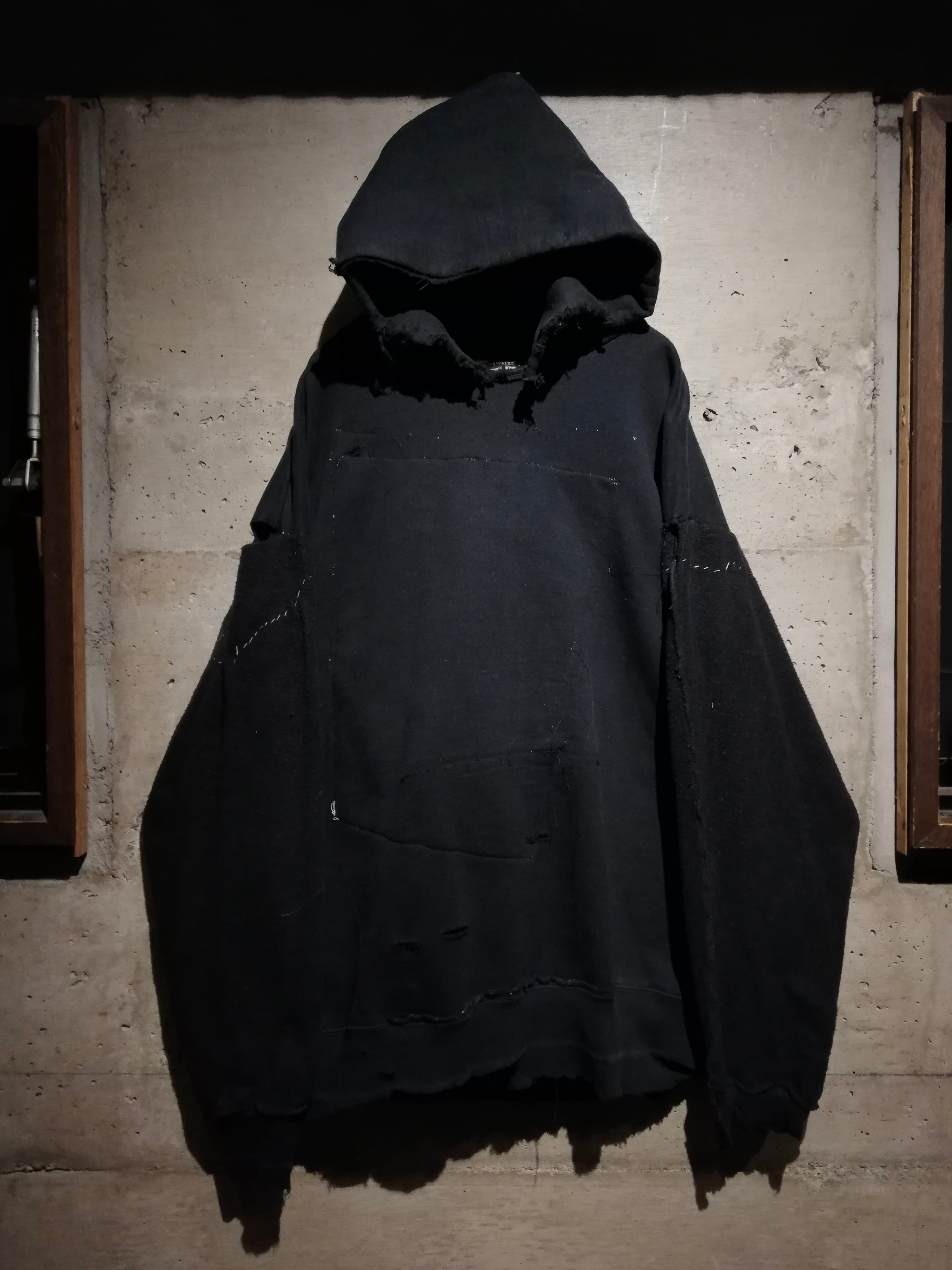 縫製の荒さ、ダメージ、糸の浮きまでもがデザインとして機能するリメイクならではの思想が宿ったプロダクト。