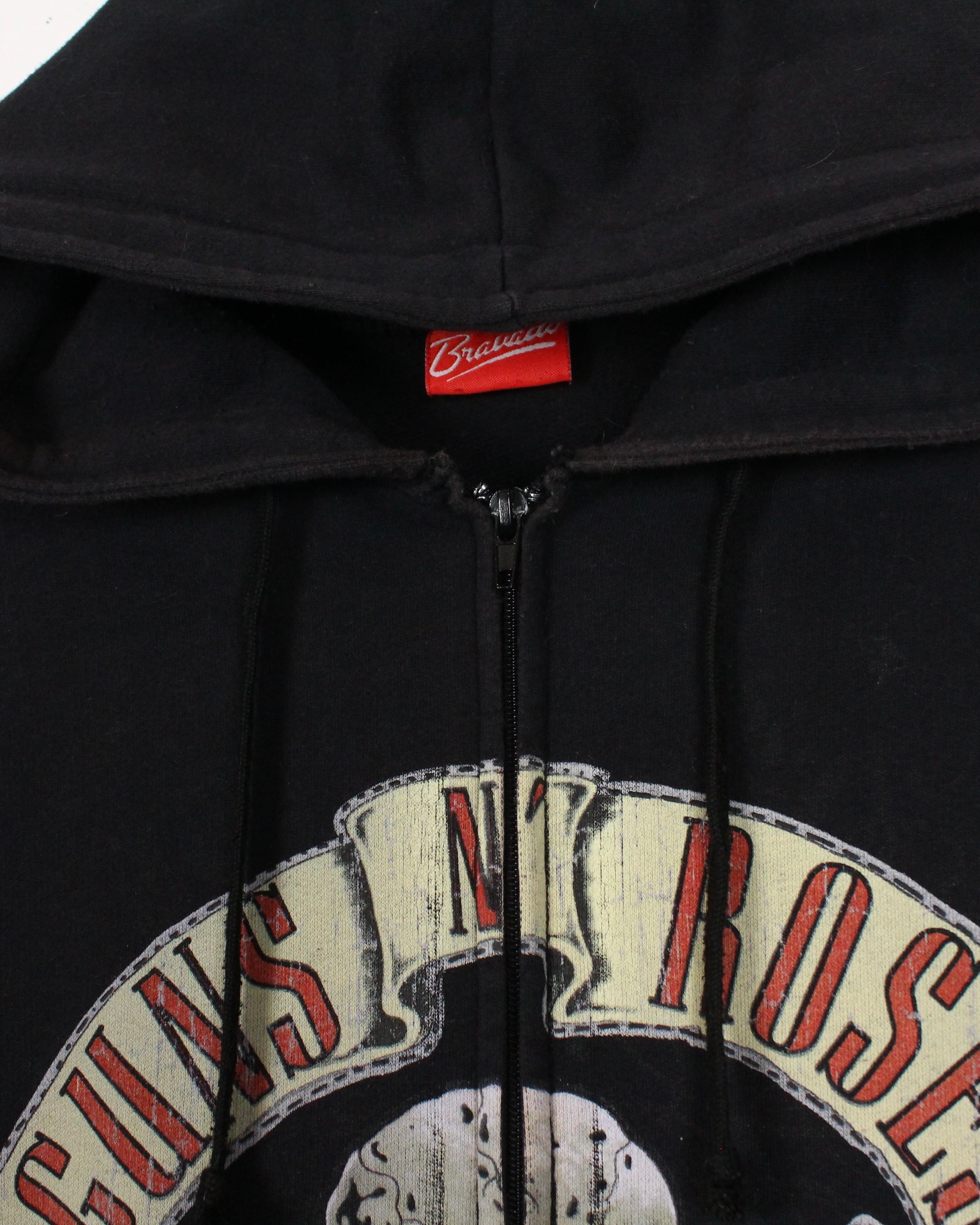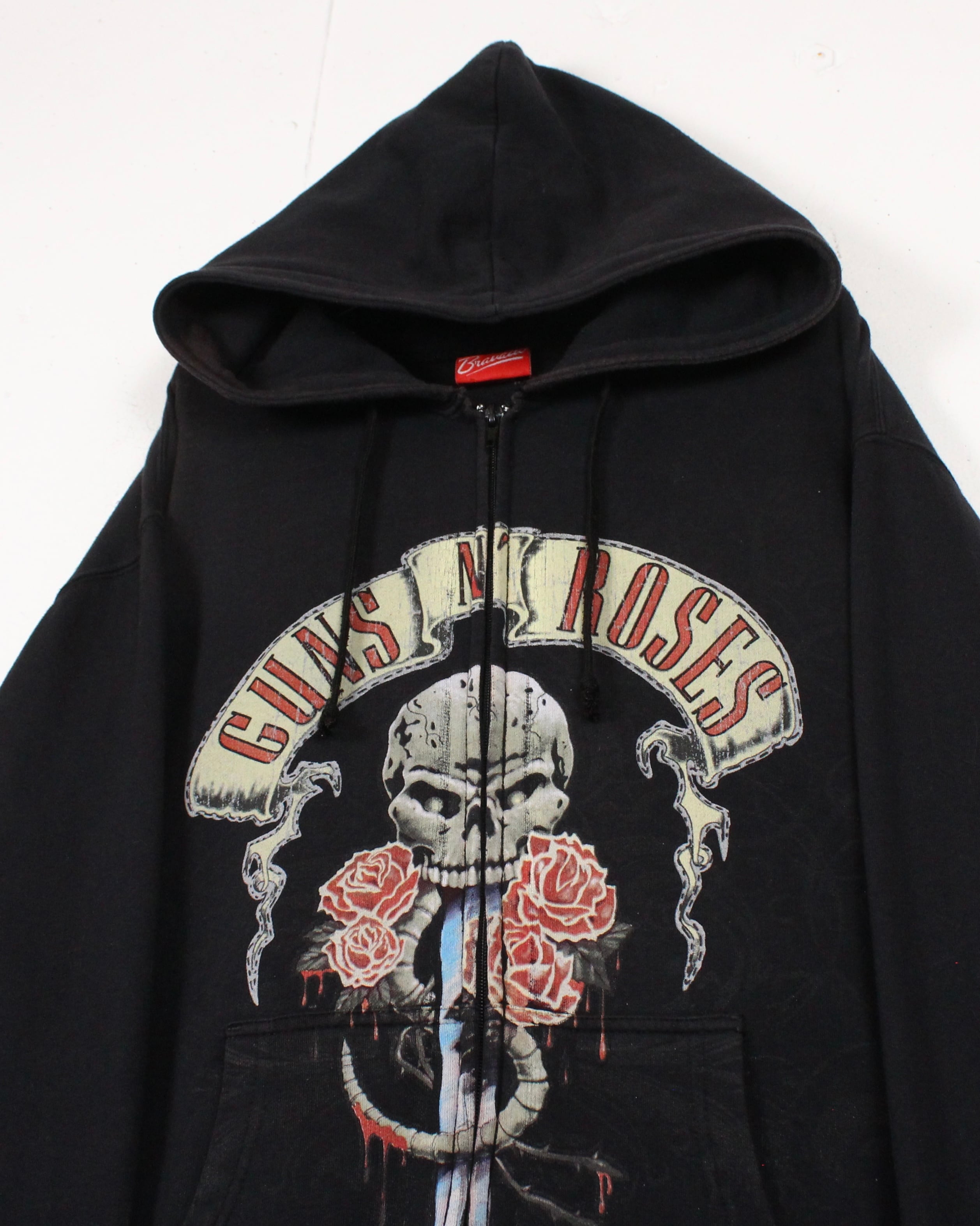 1985年に結成された、アメリカのロサンゼルスを拠点とするハードロックバンド"ガンズ・アンド・ローゼズ"のグラフィックを載せたジップアップフーディー。
