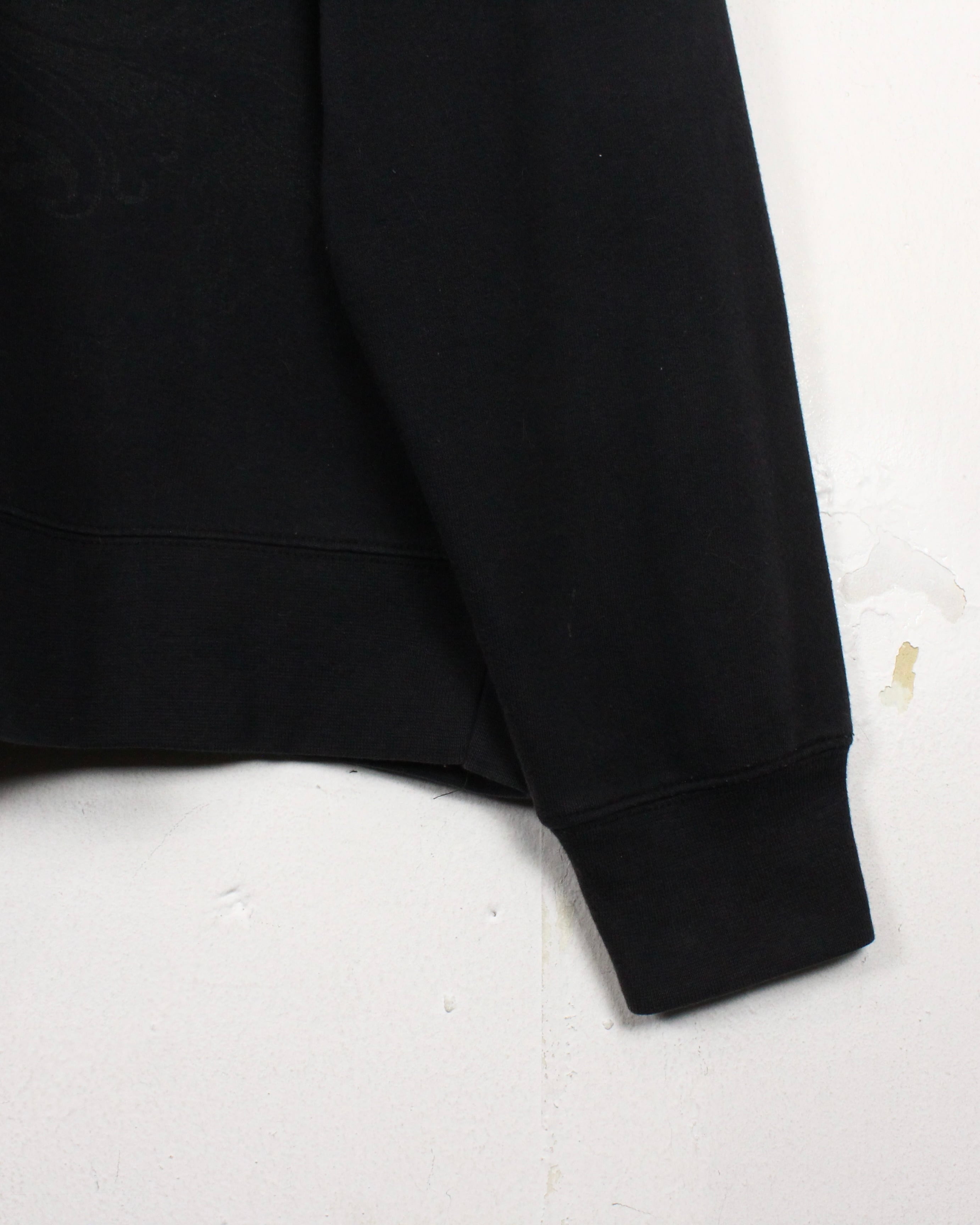 フロントには、ブランドを象徴するスカル&ローズモチーフを大胆にレイアウト。滴る血、錆びた刃を思わせるソードプリント、そこに絡みつく蔦のディテールまで、バンドの持つ美学を余すことなく表現しています。