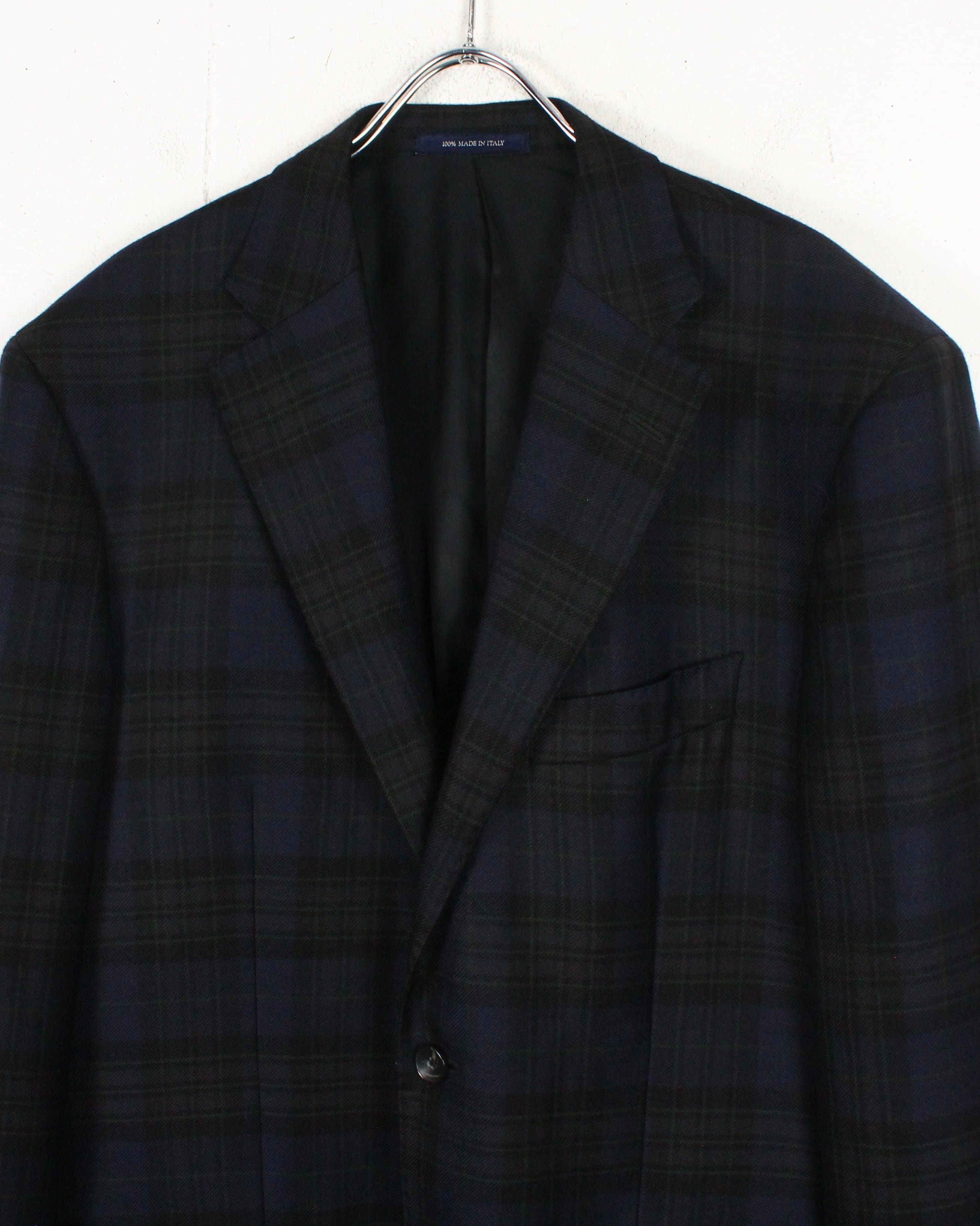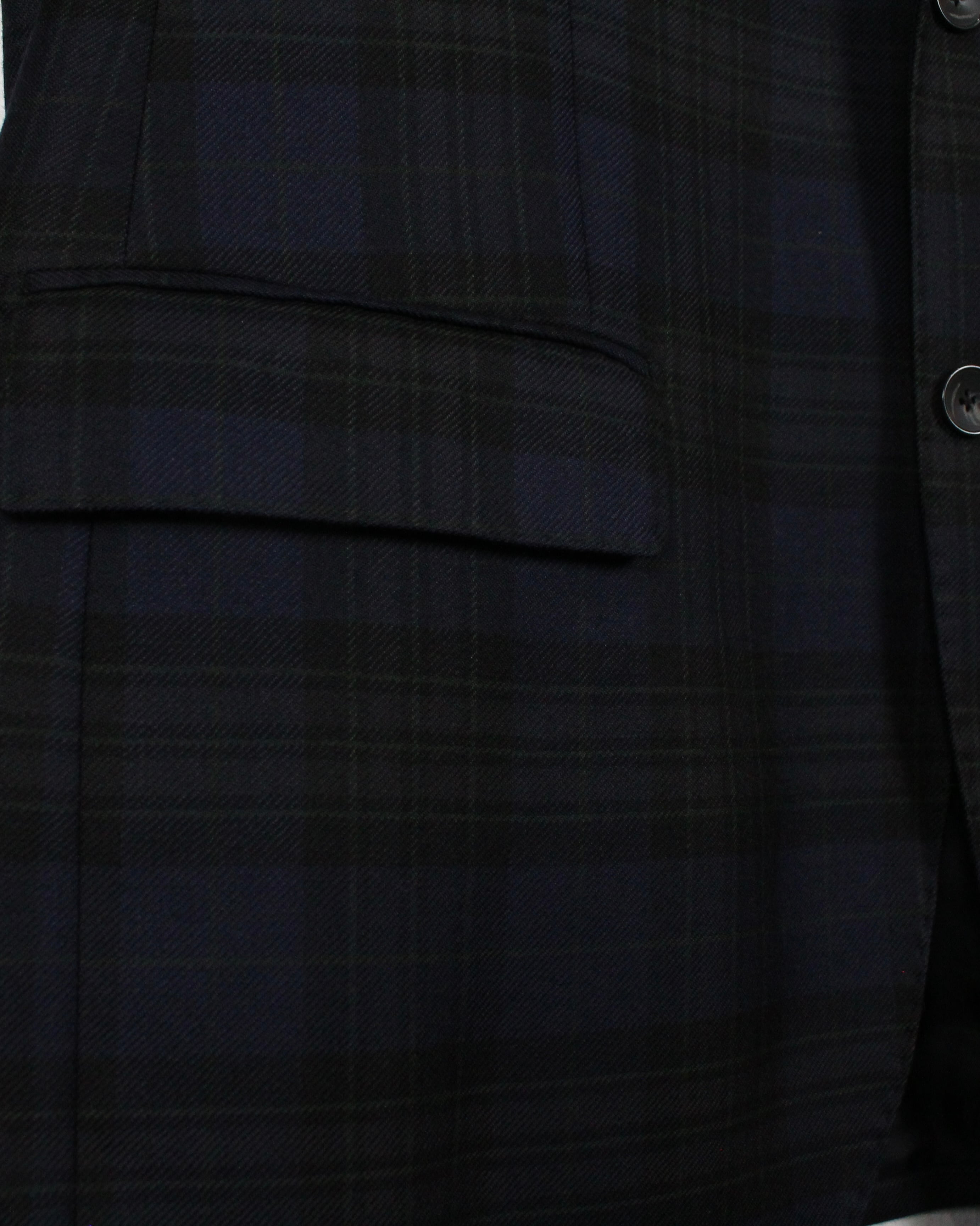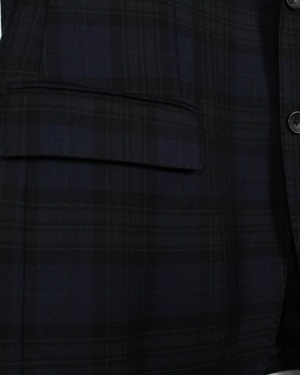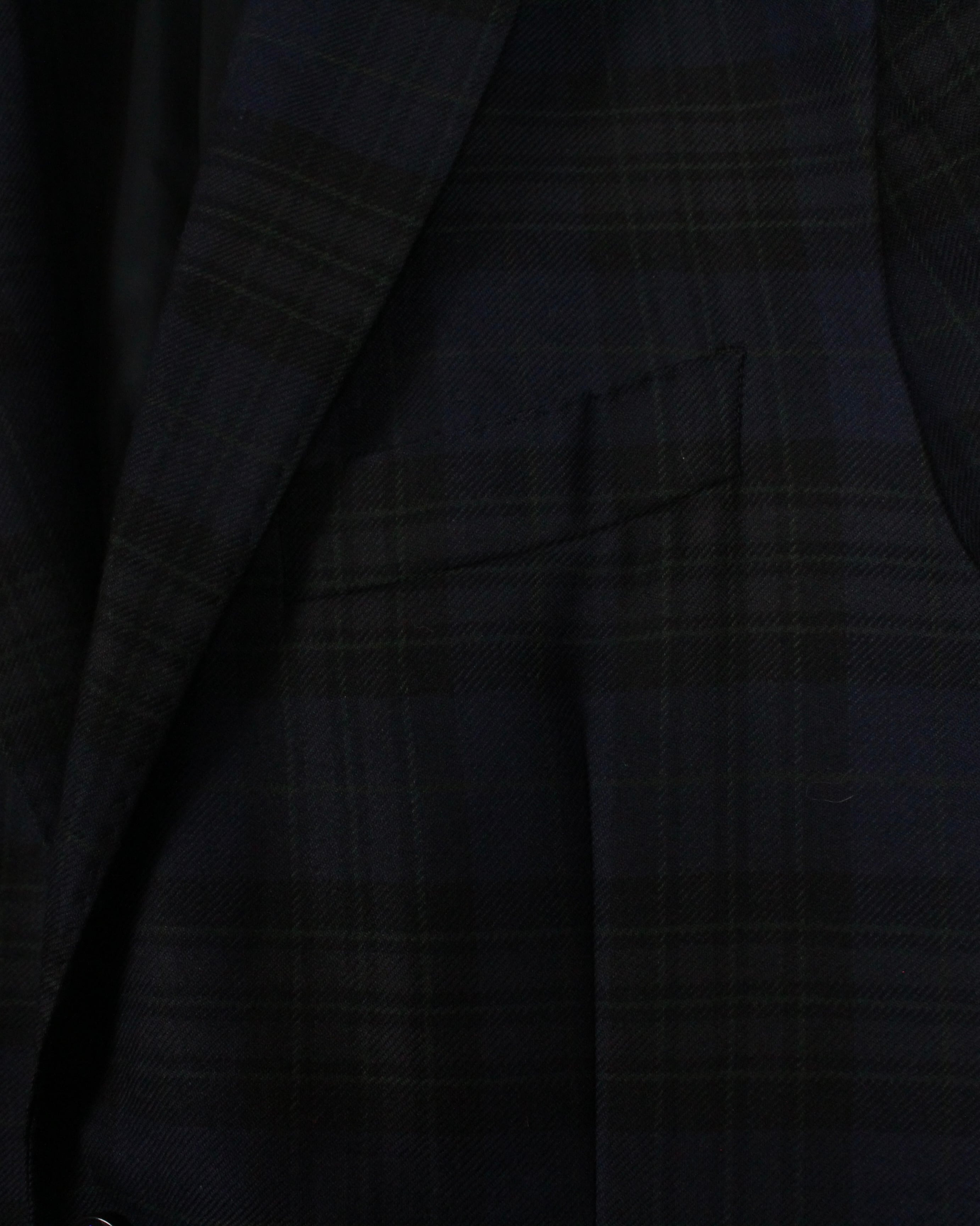 イタリアメイドならではの軽やかで柔らかな仕立てに、深みのあるネイビーをベースにしたタータンチェックが絶妙なトーンで載せられた1着。