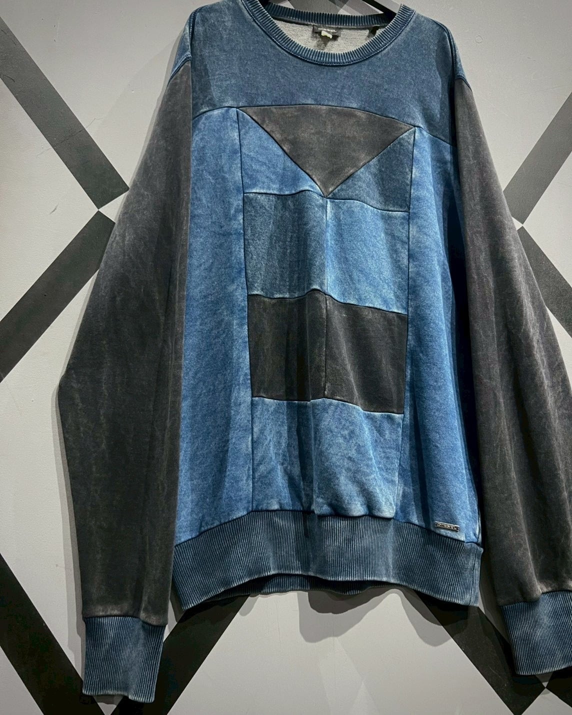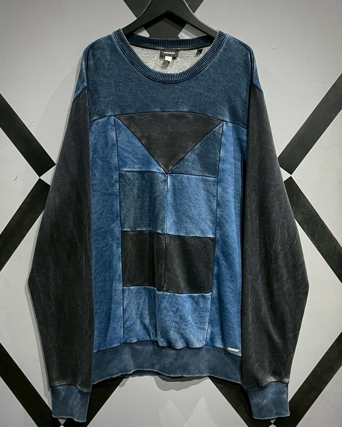 イタリア発“DIESEL”より、ブランドらしいクラフトマインドとストリート感覚が融合した、複数の染め生地を巧みに組み合わせた存在感抜群のパッチワークデザインのスウェット。