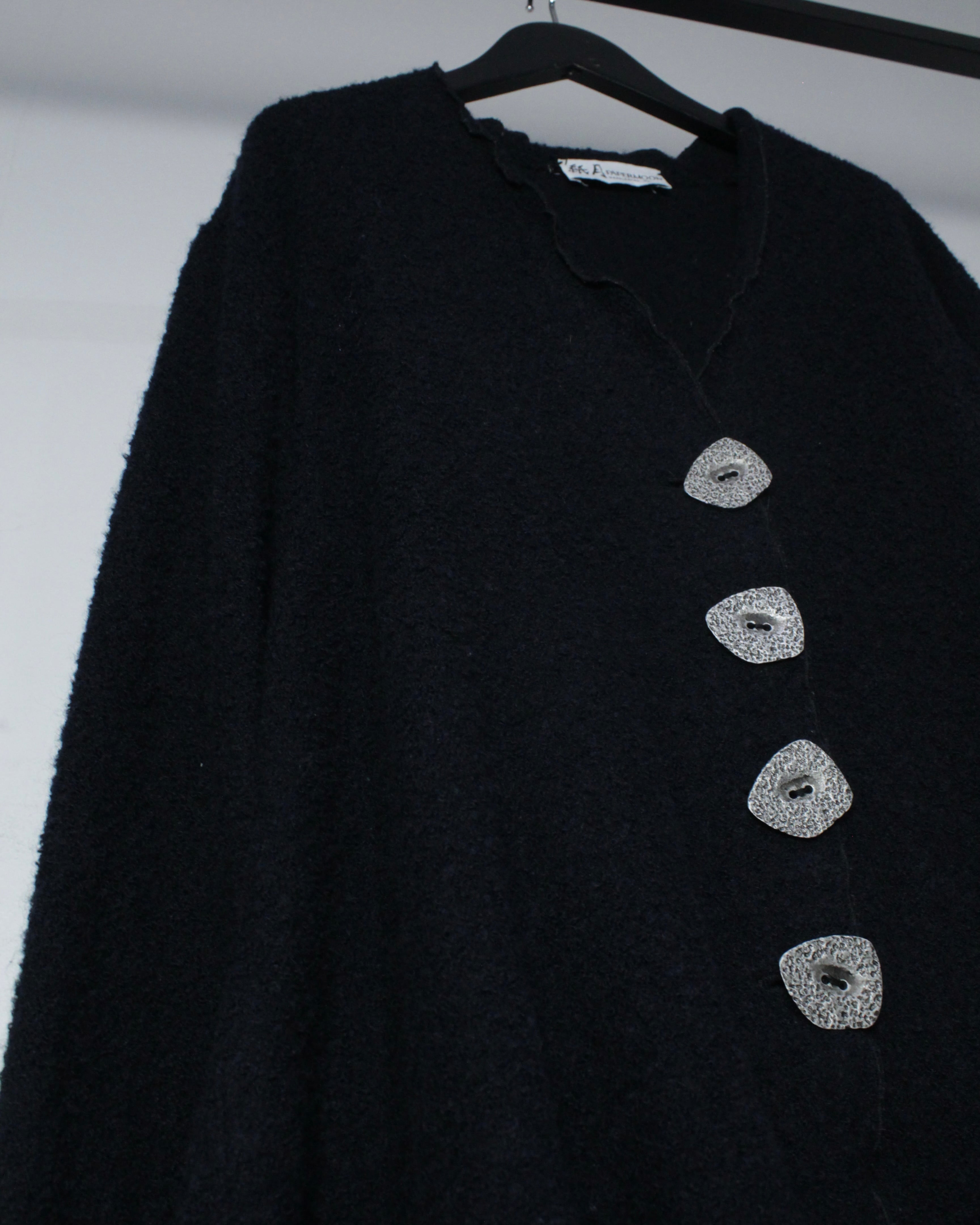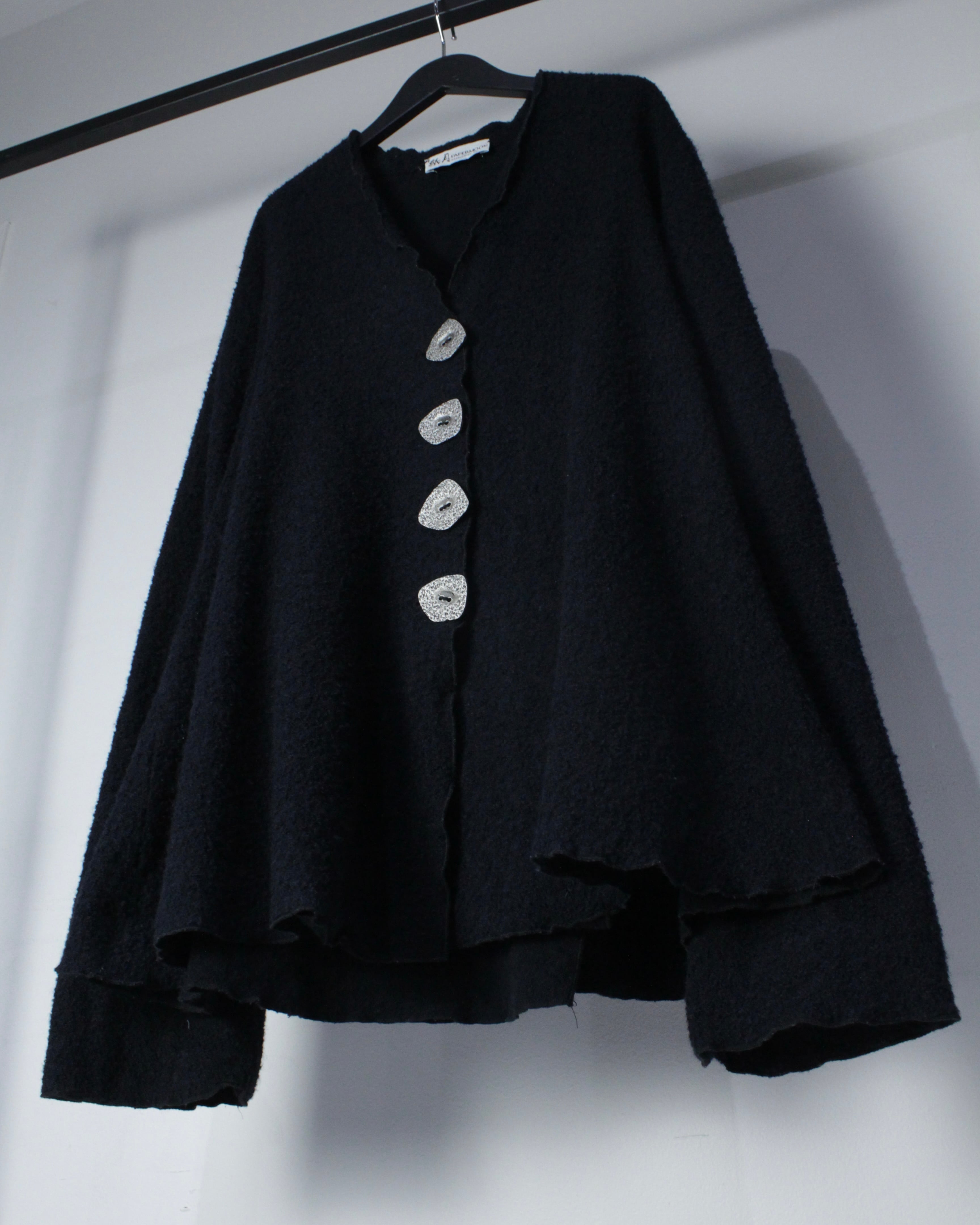 独自の素材感と造形美が際立つ、当店ならではのウールカーディガン。