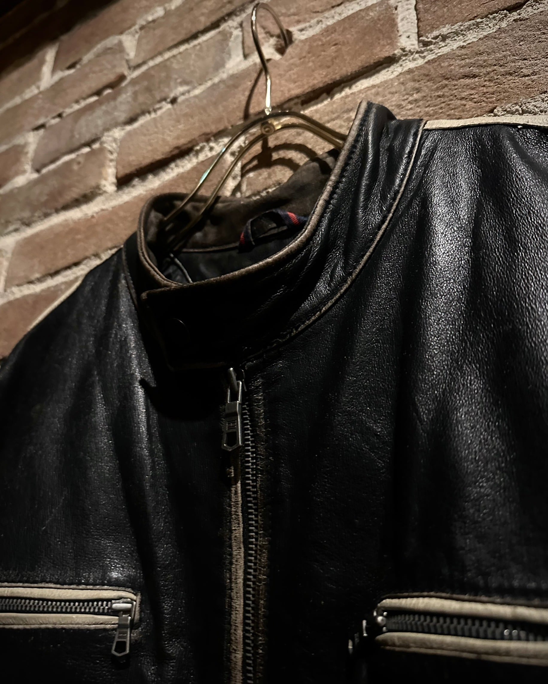 レザーの自然なシワや褪せが生むエイジングも絶妙で、使い込むほどに味わいを増す素材感。裏地にはキルティングを施し、防風性と保温性を兼ね備えた設計となっています。