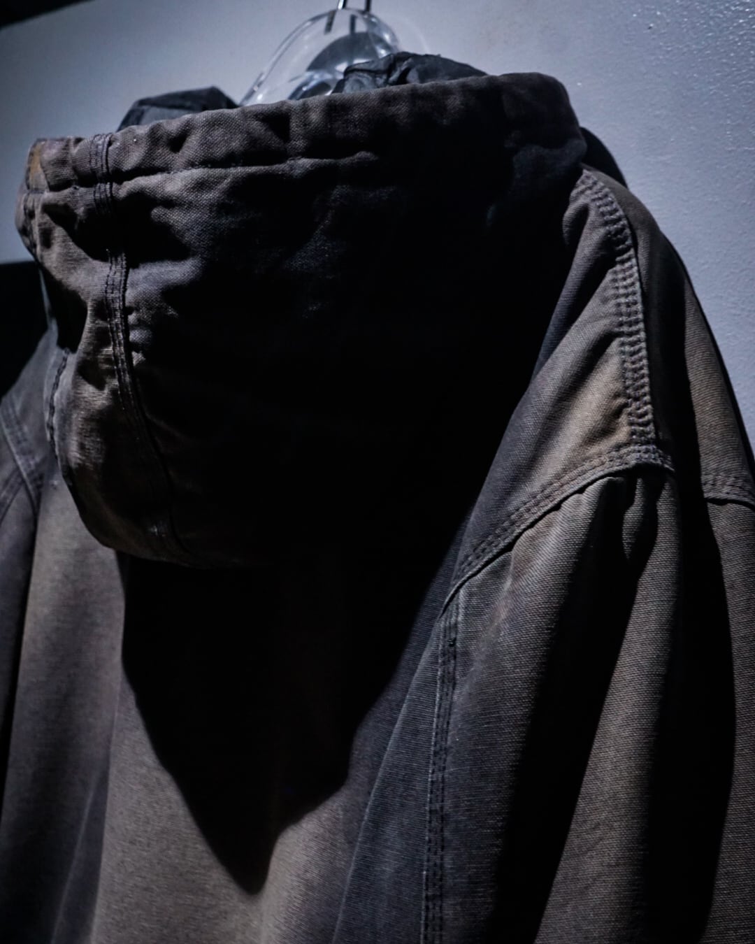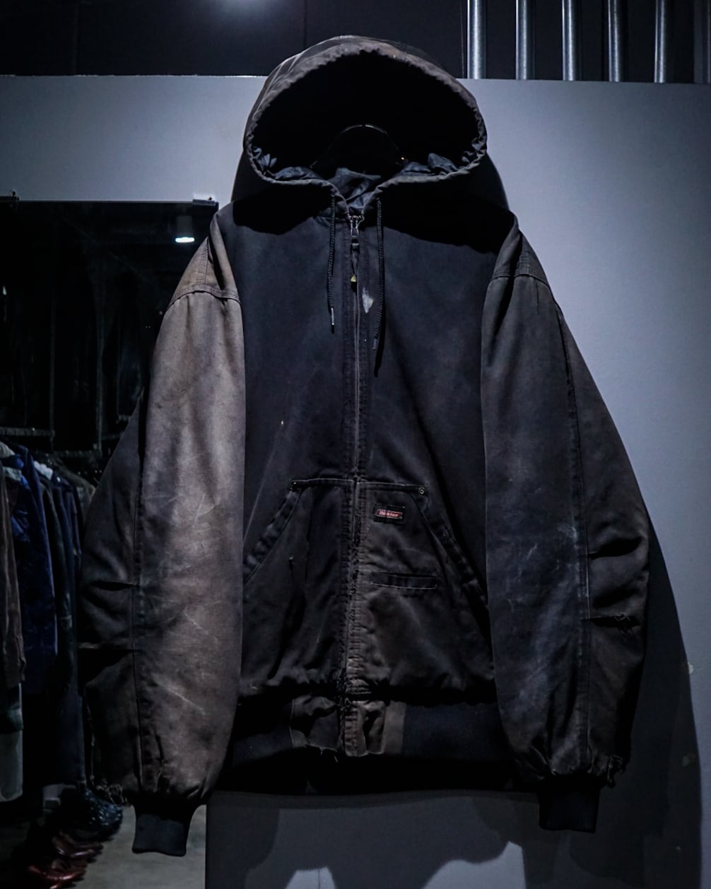 フードも肉厚に仕上げられ、ドローコードによってフィット感を調整可能。袖と裾のリブはワークジャケットらしいタフさを残しながらも程よく馴染み、シルエットをしっかりとキープ。ルーズなサイジングで仕入れたため、現代的なスタイルとの相性も抜群です。