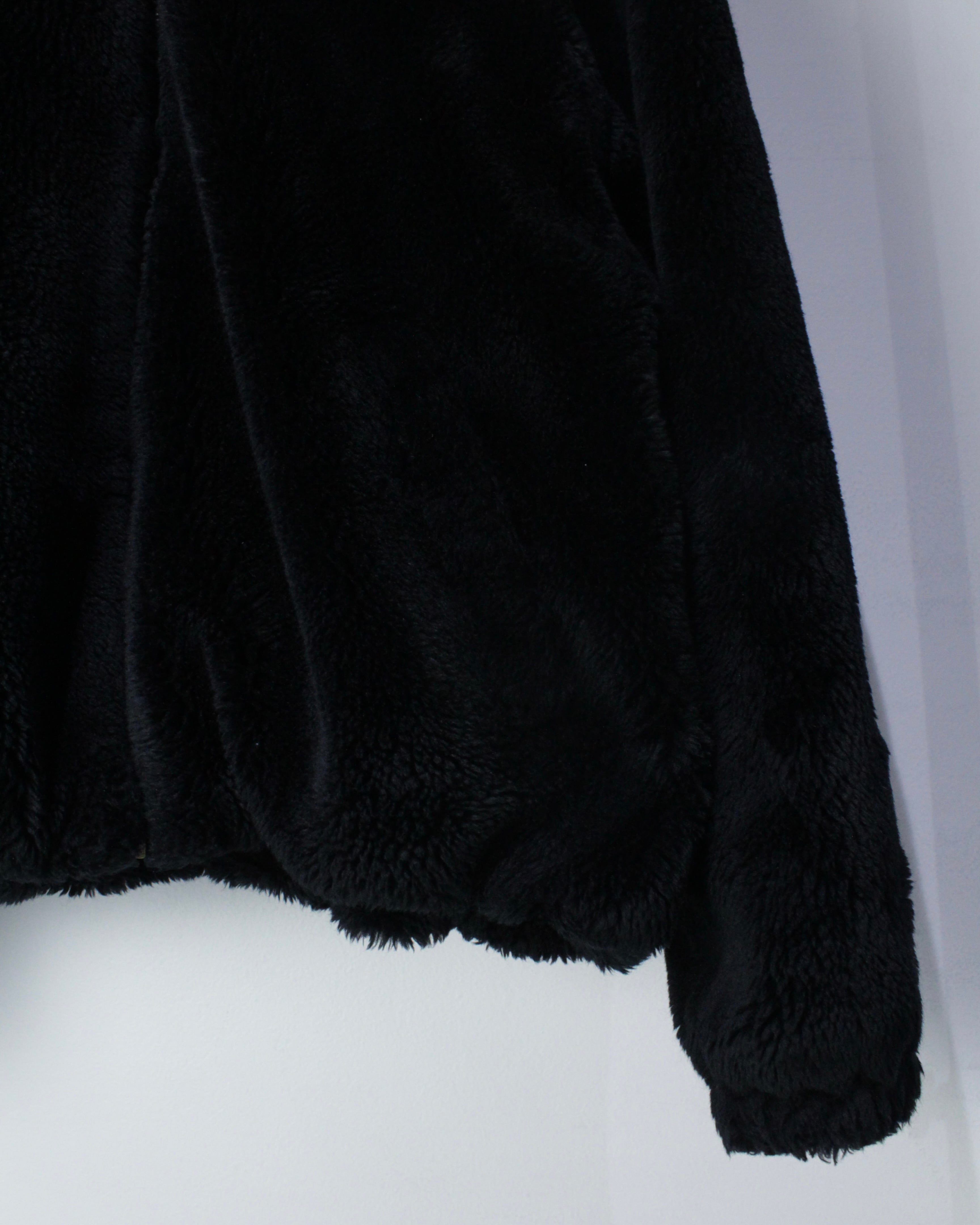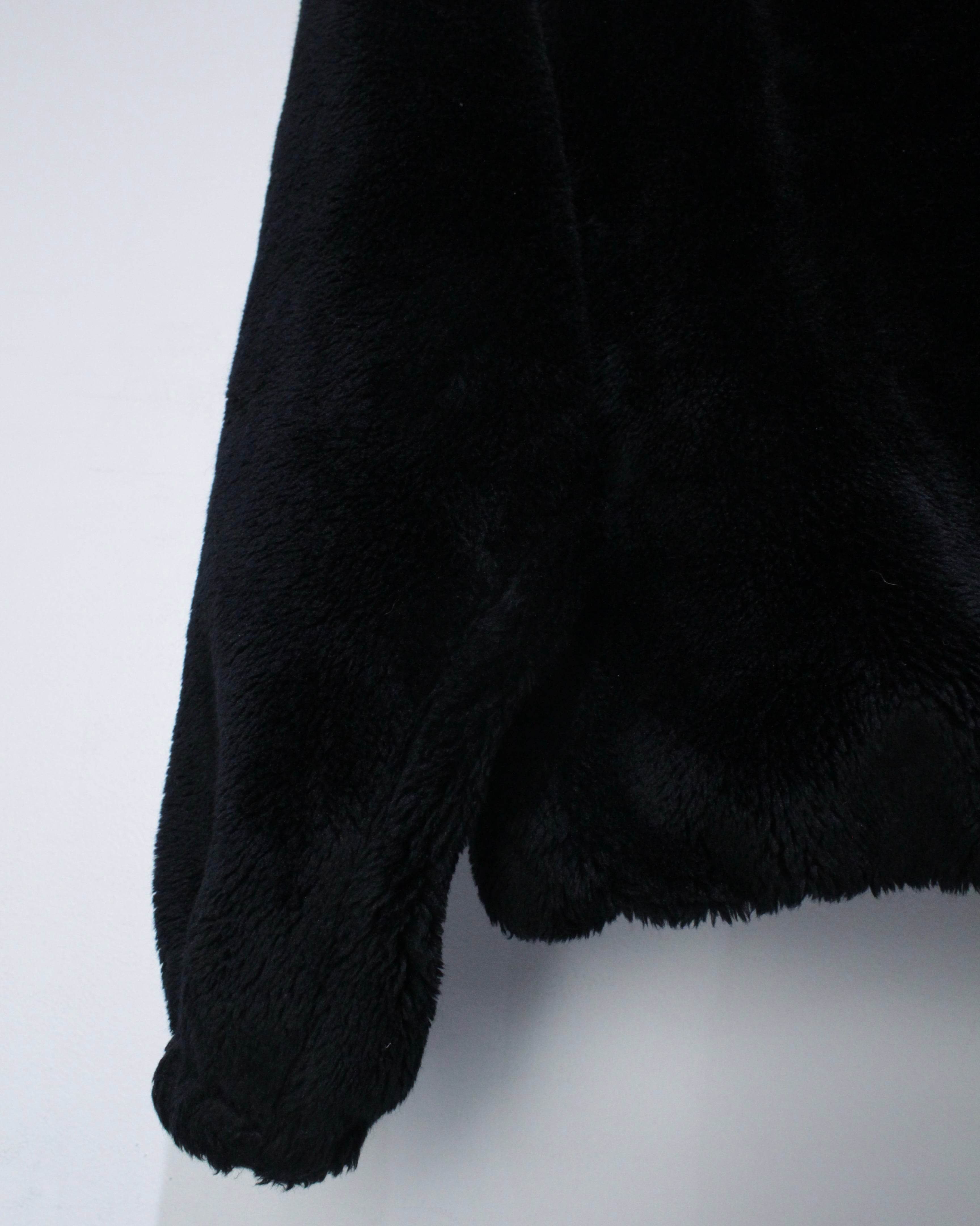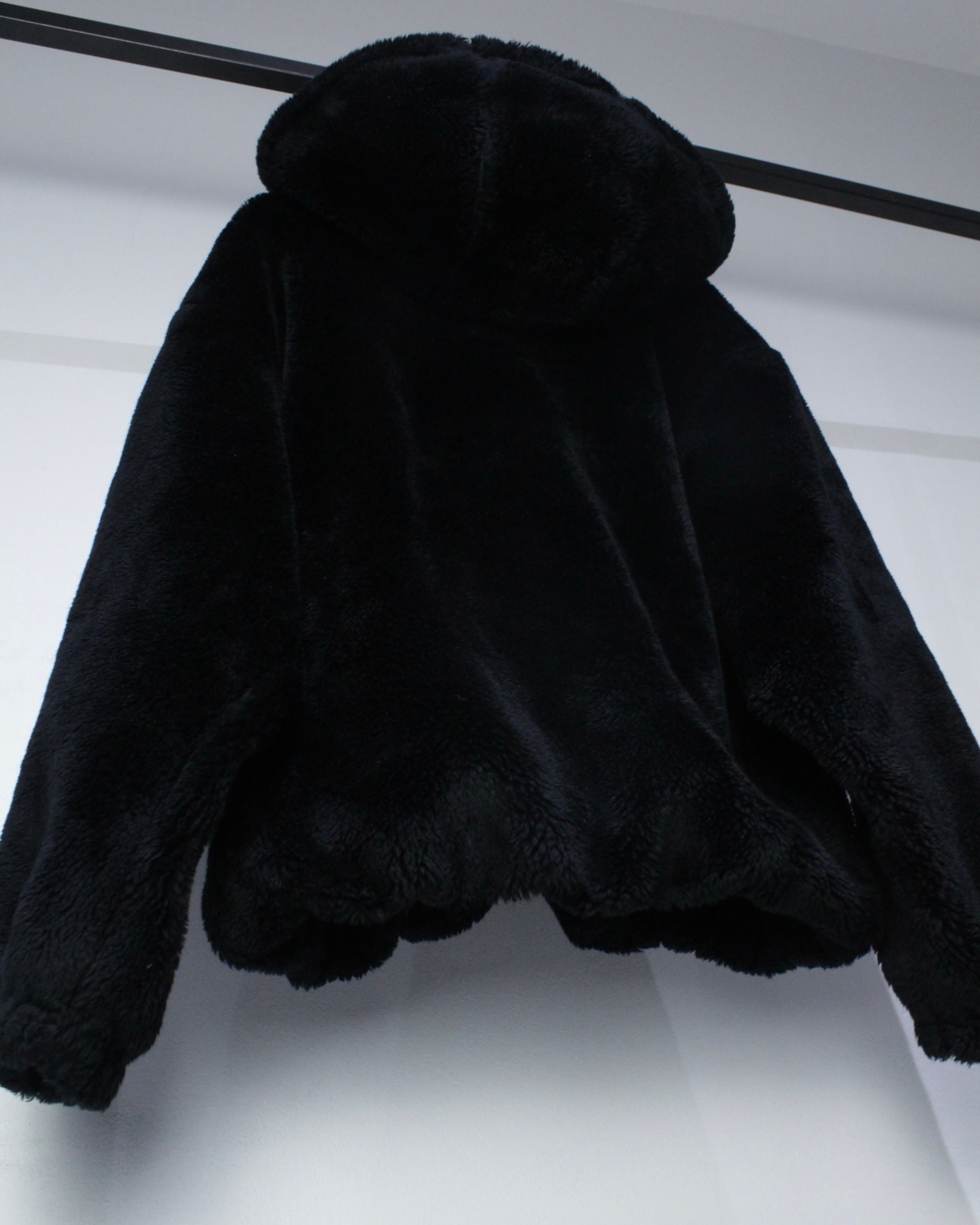 毛足の流れが美しい高密度フェイクファーを採用した、ジップアップフーディジャケット。