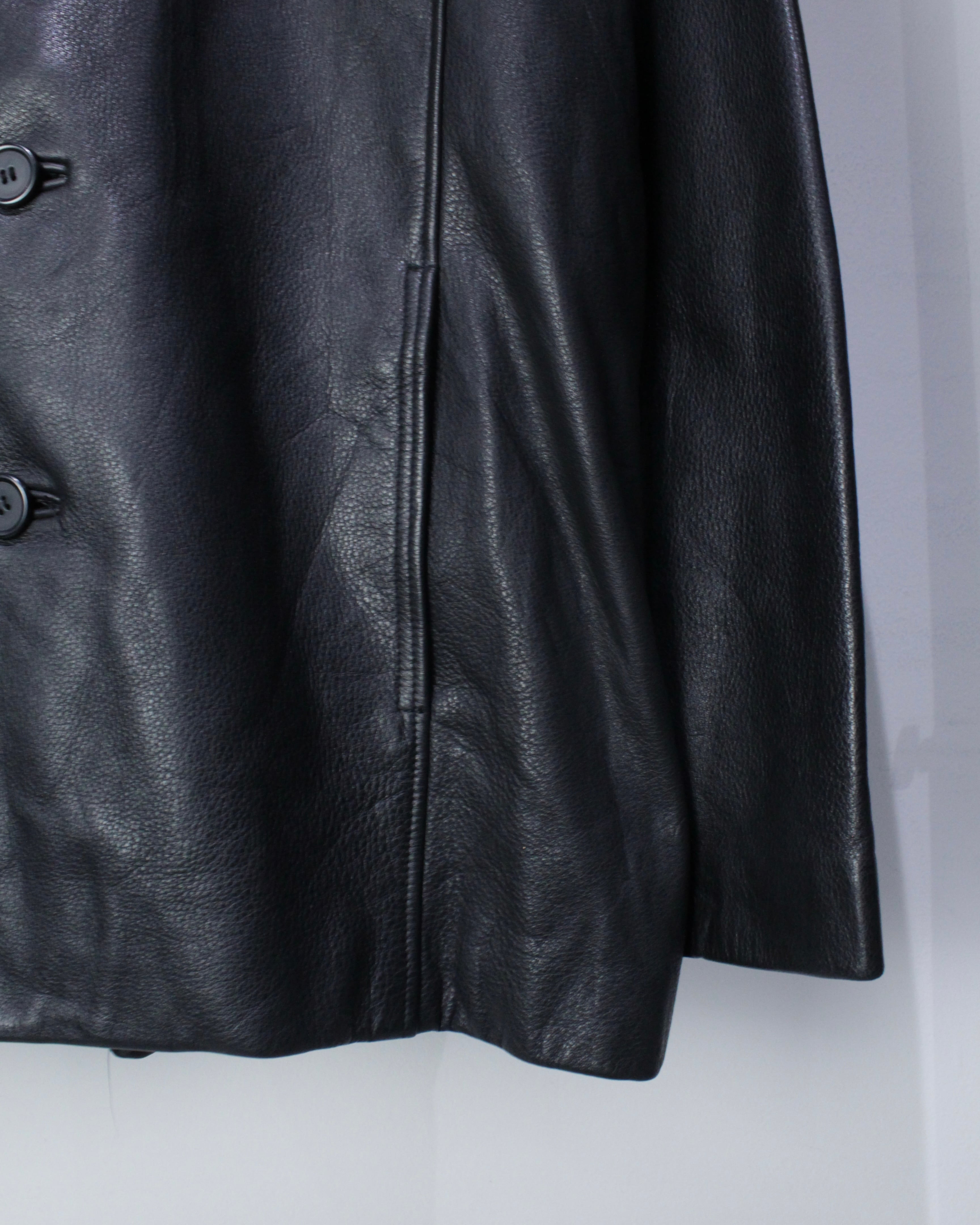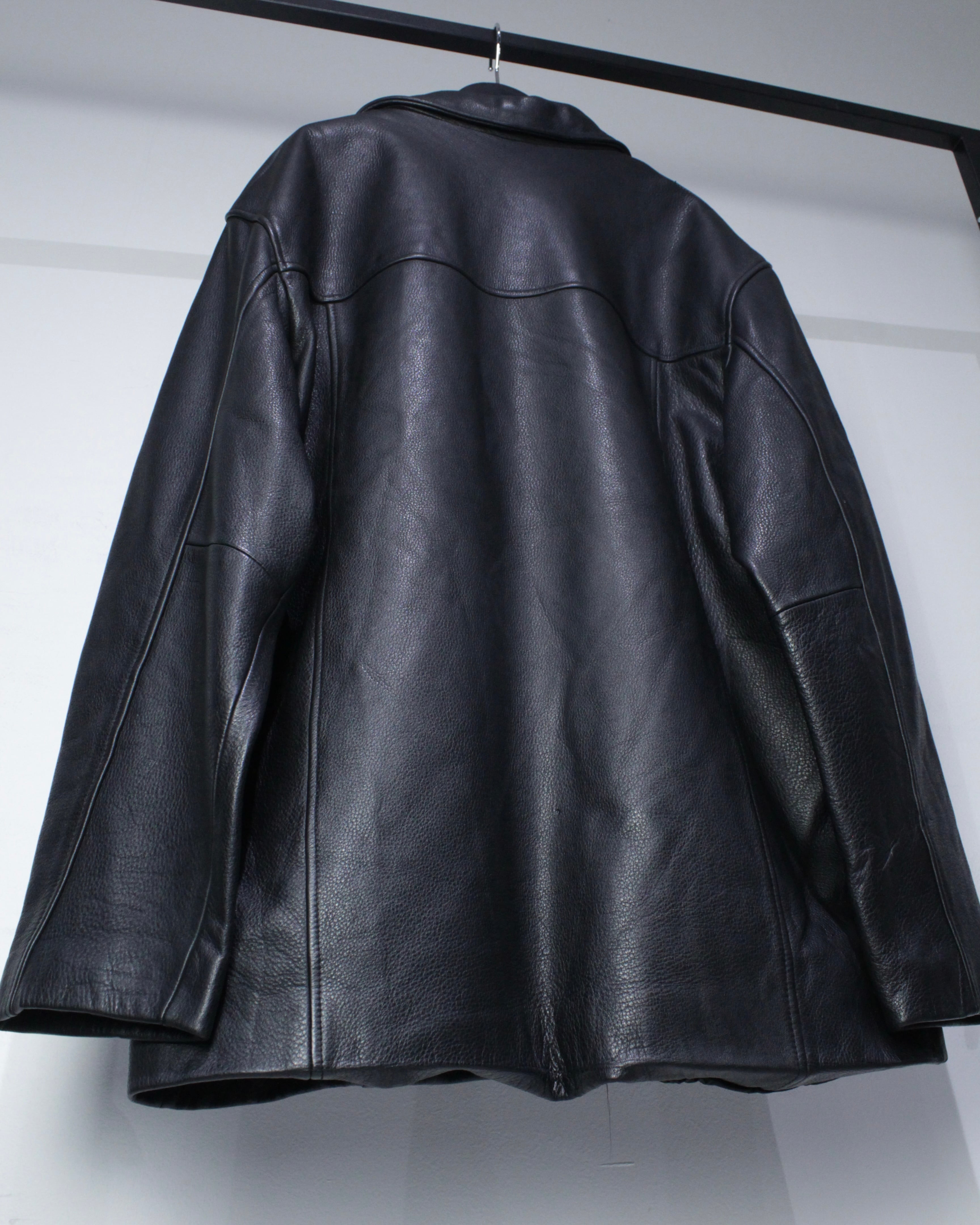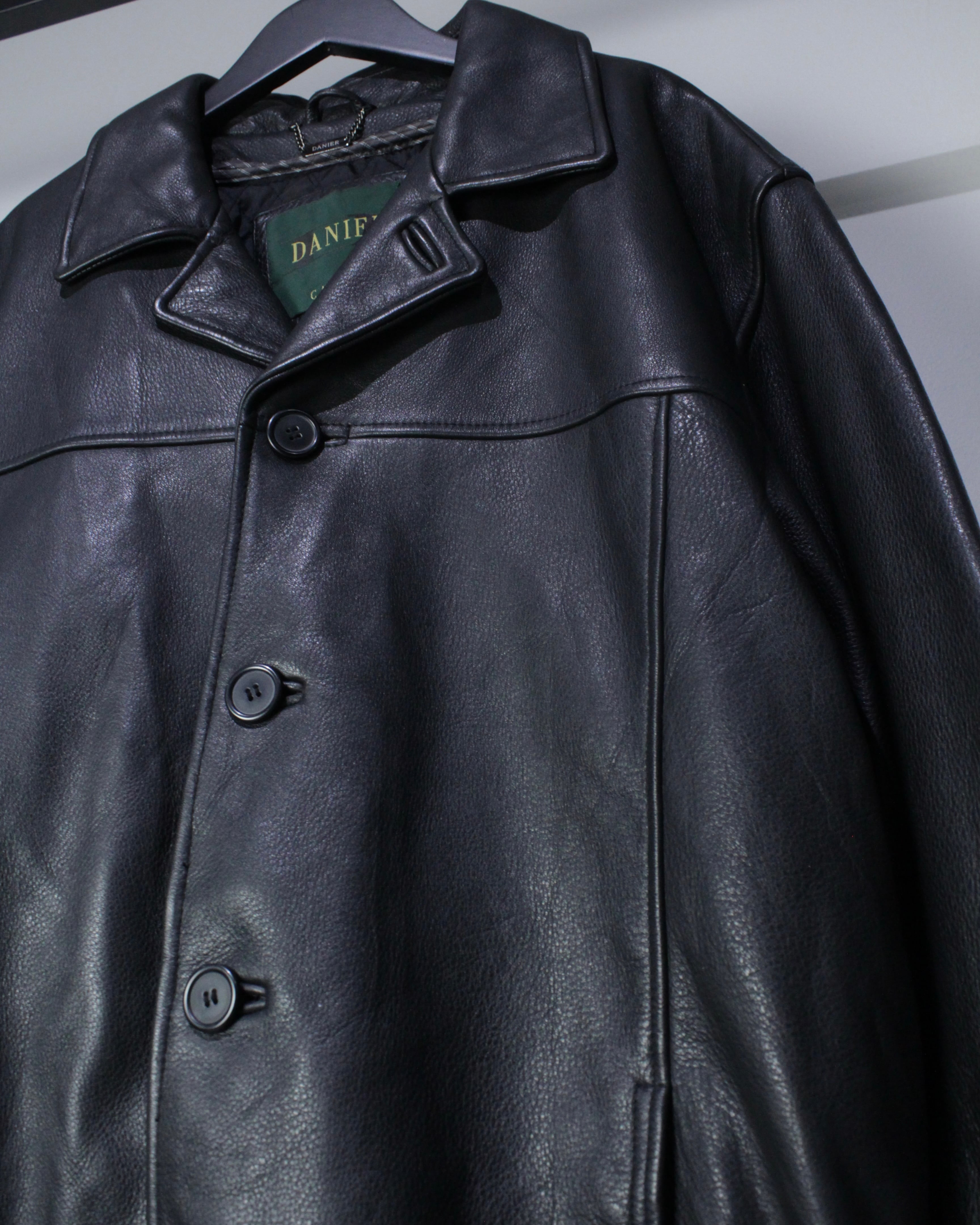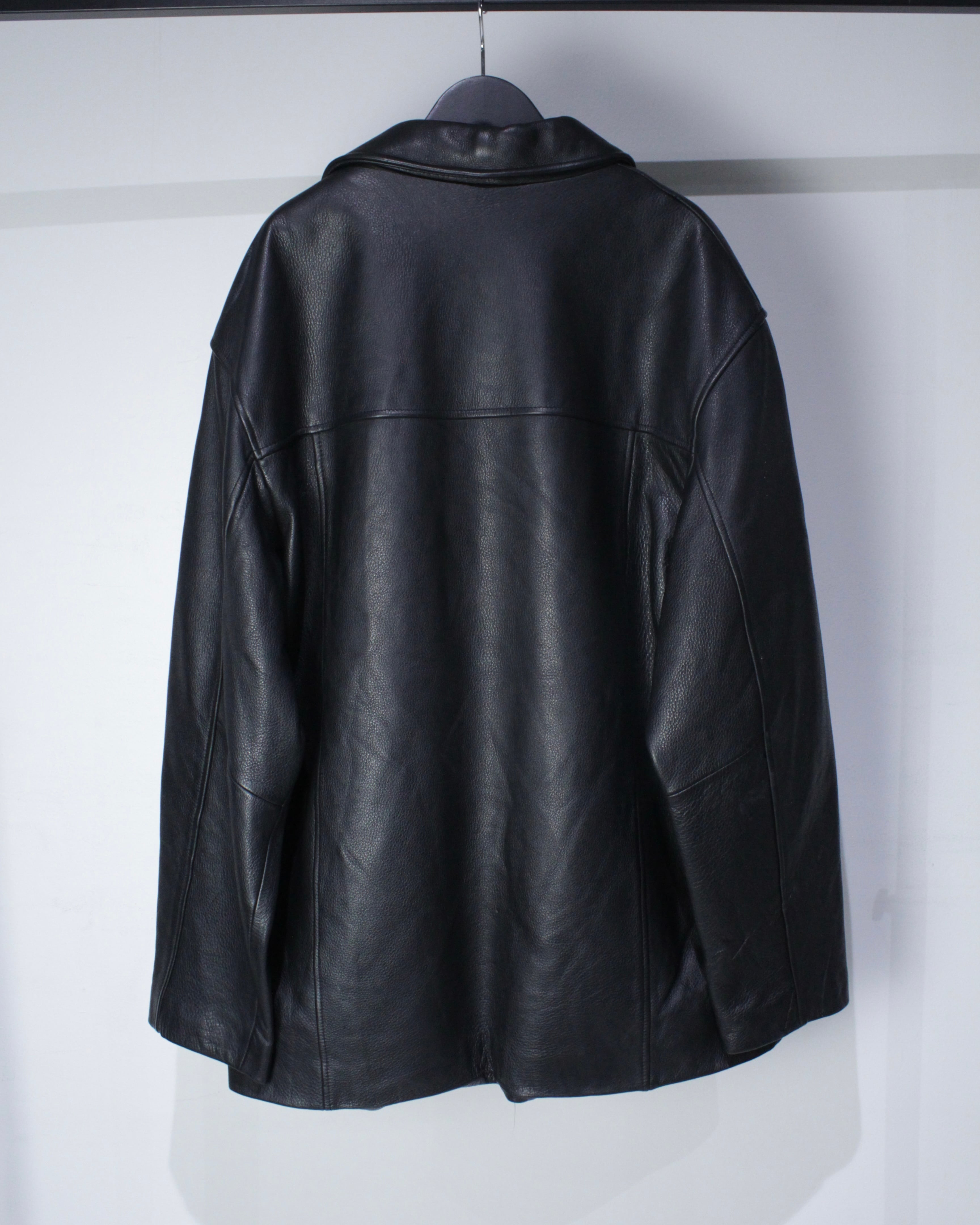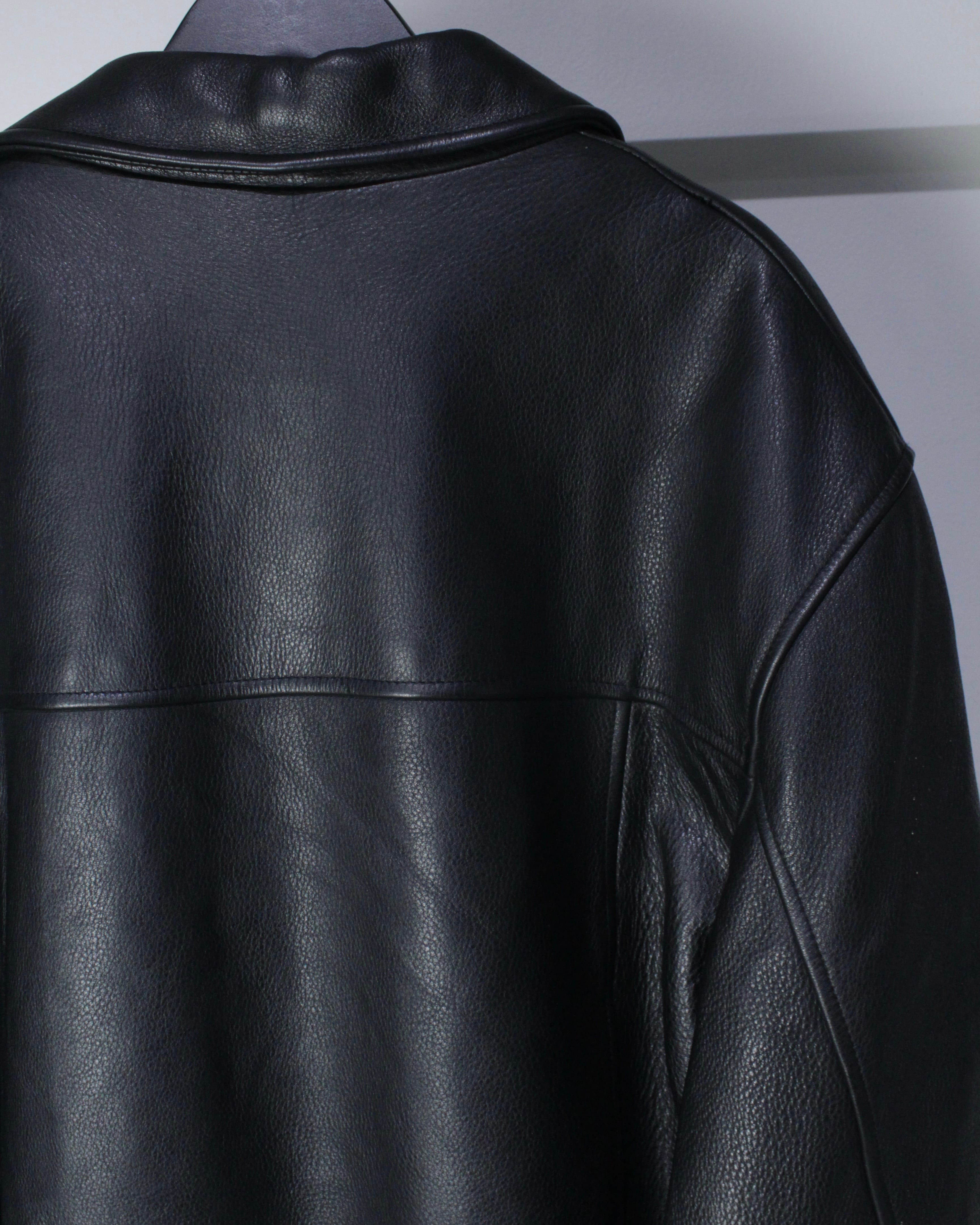 しなやかで重厚感のあるブラックレザーを贅沢に使用したレザーカーコート。