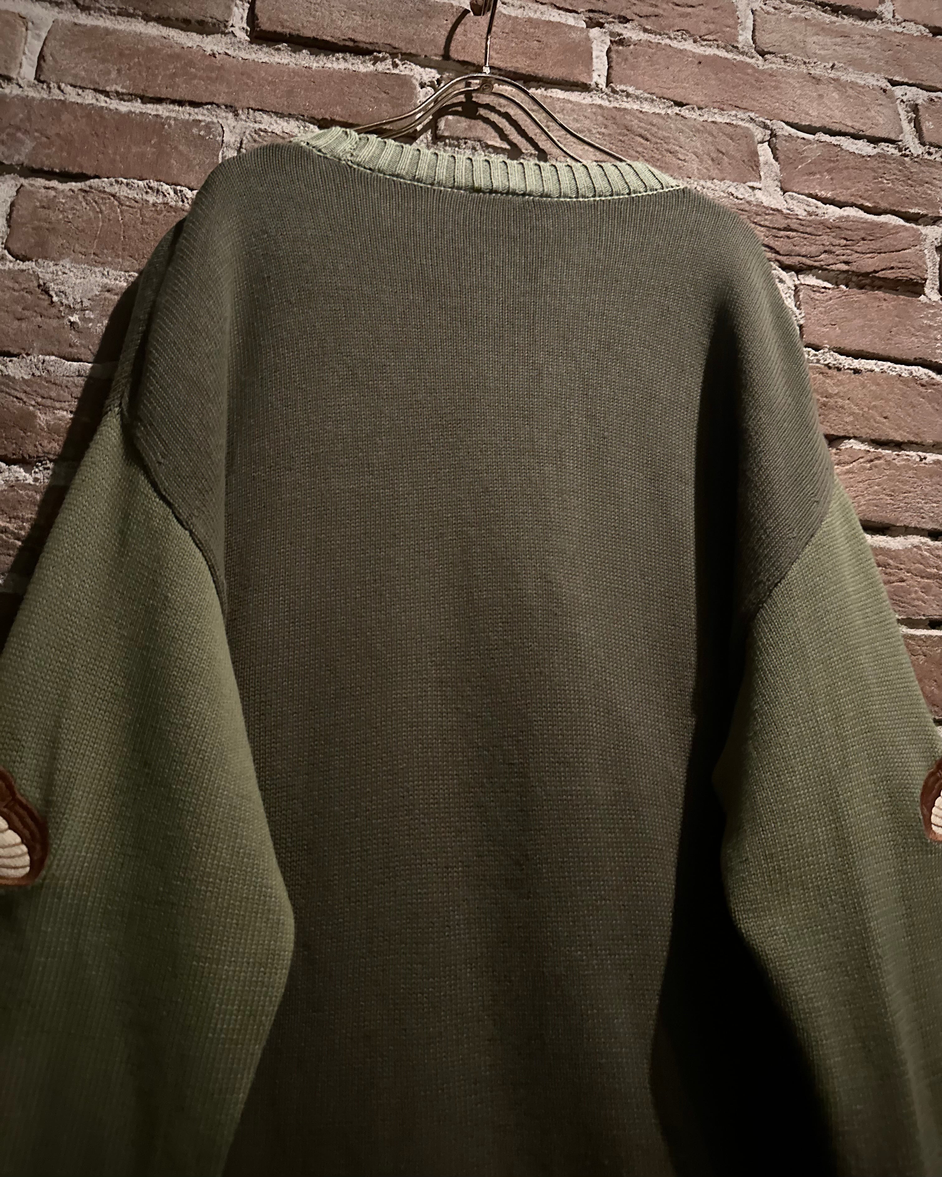 袖にも同様のモチーフを施し、前面だけでなくサイドスタイルにも奥行きを感じるデザイン。柔らかなコットンニットを採用しており、保温性と軽やかさを両立。程よくルーズなシルエットが抜け感を生み、インナー使いでも一枚着でも映えるバランス感に仕上がっています。