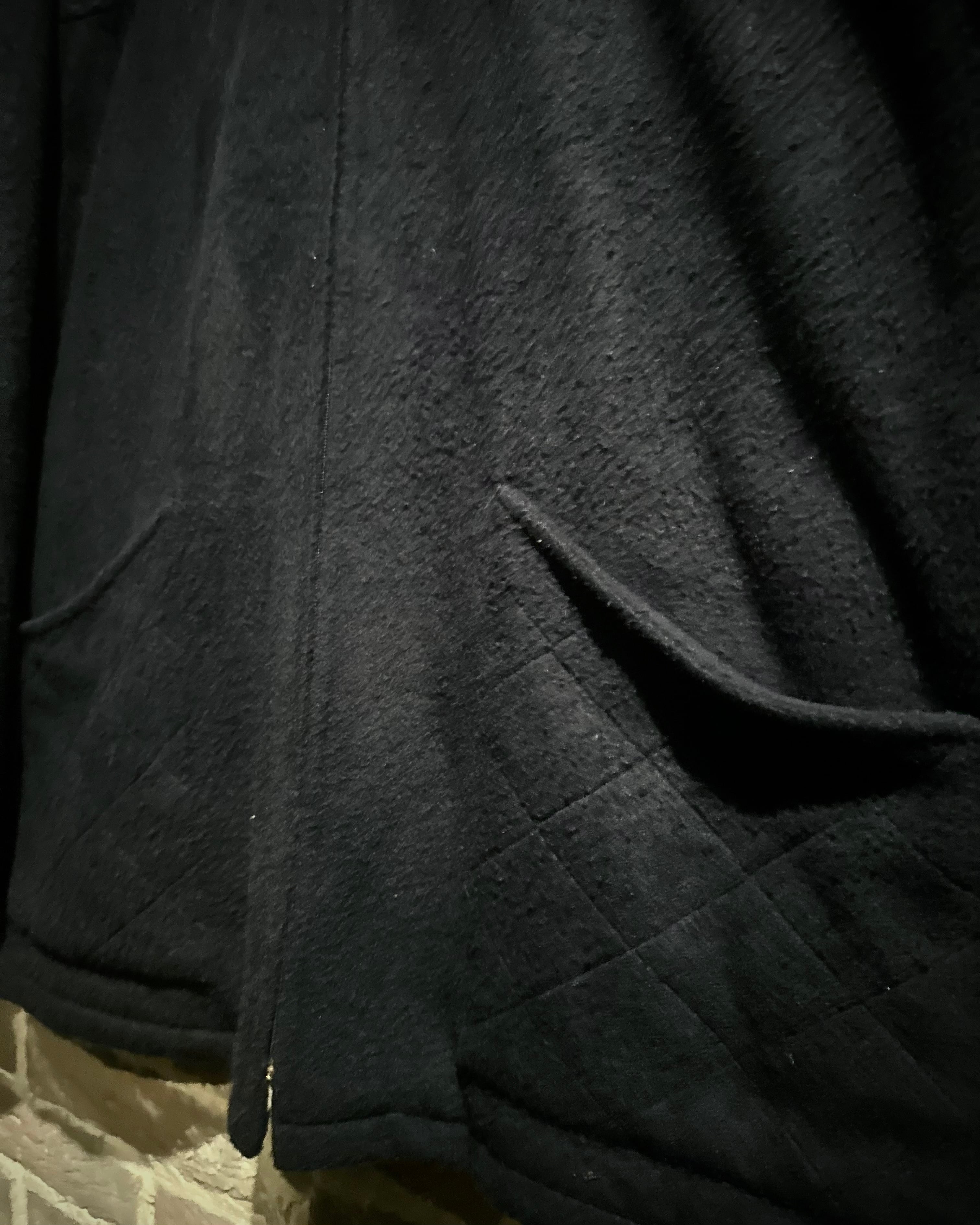 ボディには深みのあるネイビーのウールを採用。ふっくらとした質感と優れた保温性を備え、軽量ながらもしっかりとしたボリュームを感じられる仕上がり。肩からヨーク、ポケットに施されたキルティングステッチが立体感を生み出しています。