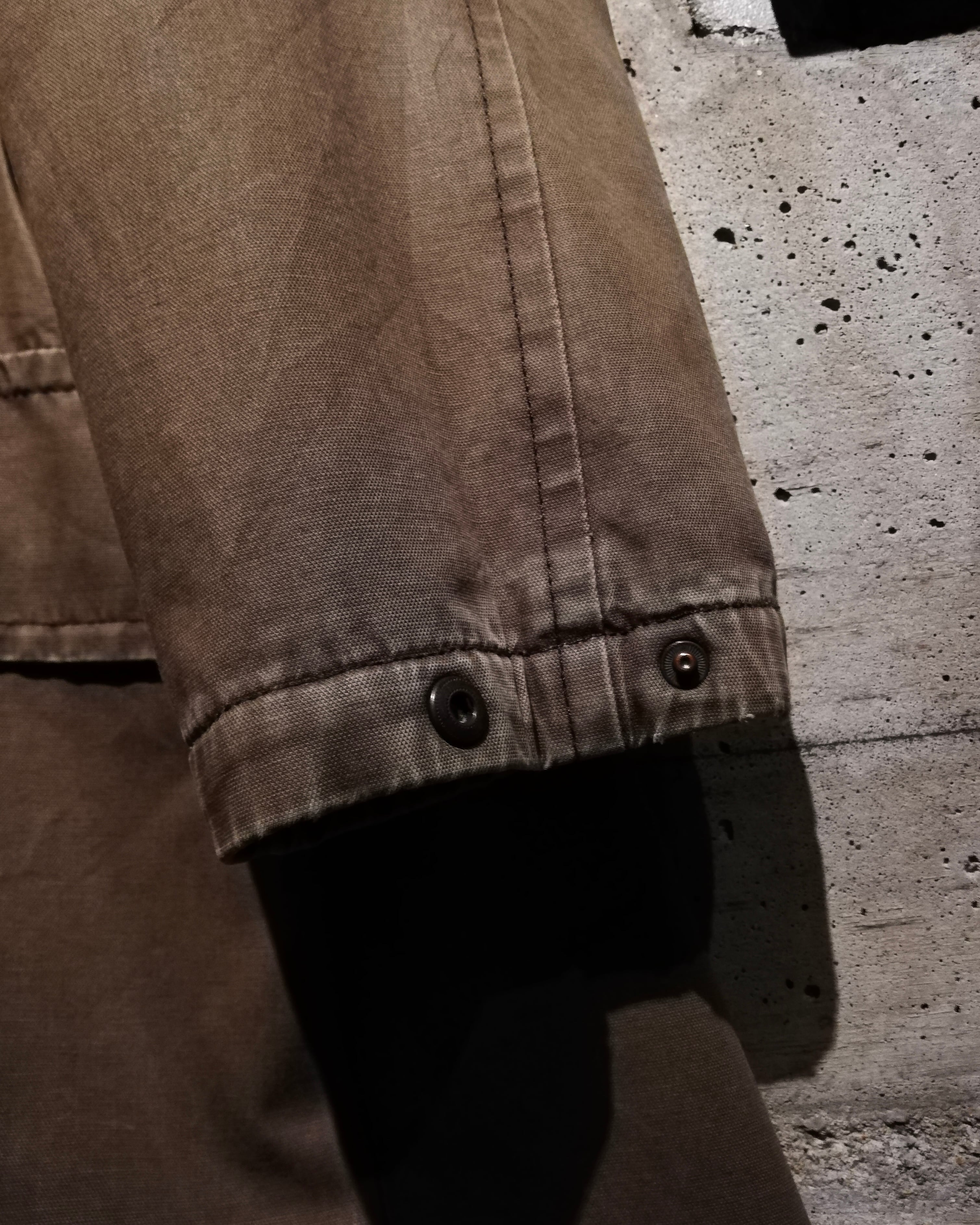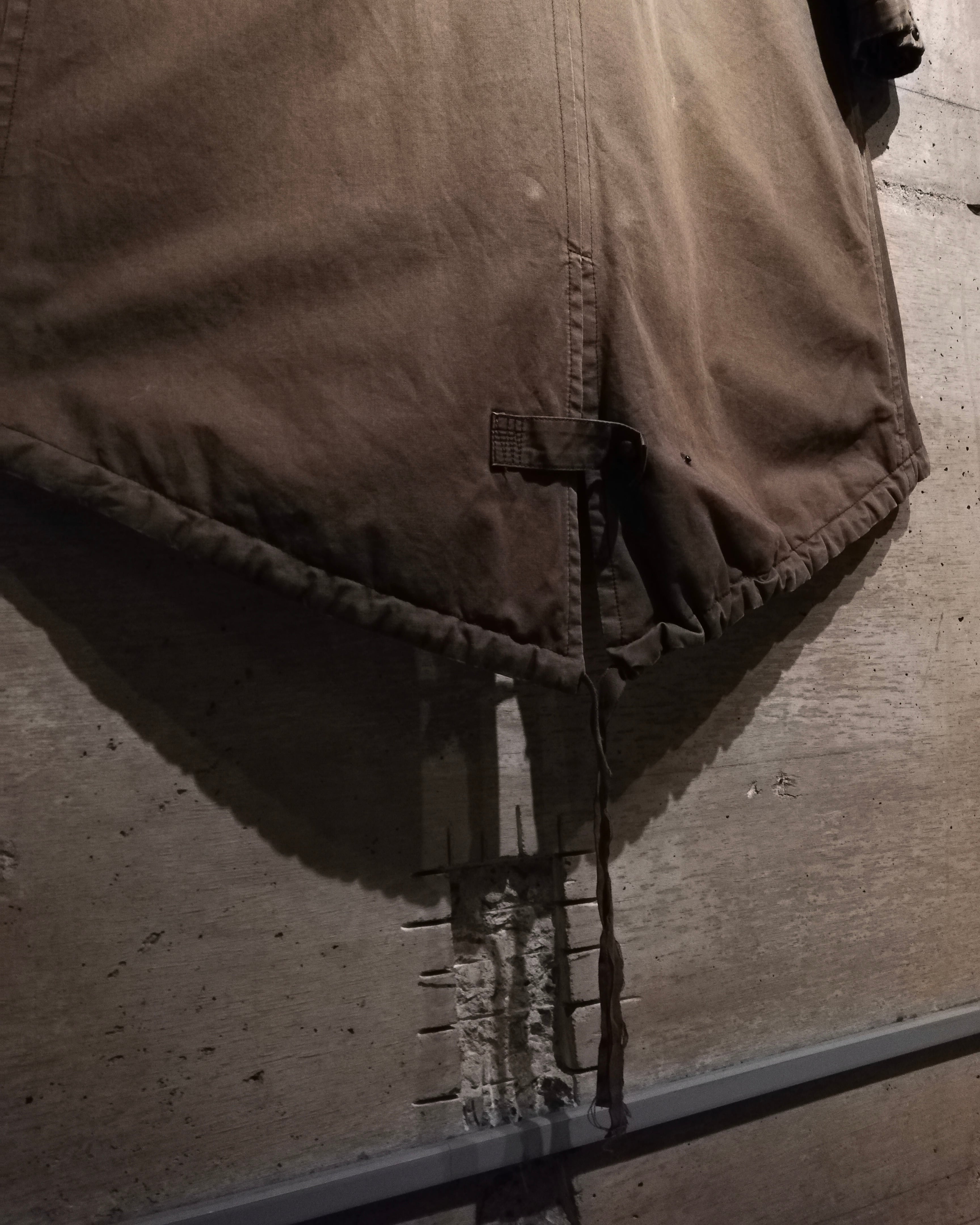 首元には異素材の切り替えを配し、襟を立てた際の立体感と重厚さが際立つ仕立て。袖にはジップポケット、ウエストと裾にはドローコード、そしてフロントには大きめのフラップポケット、ハンドウォーマーをポケット備え、実用性と装飾性を兼ねたディテール使いが素晴らしい、、、