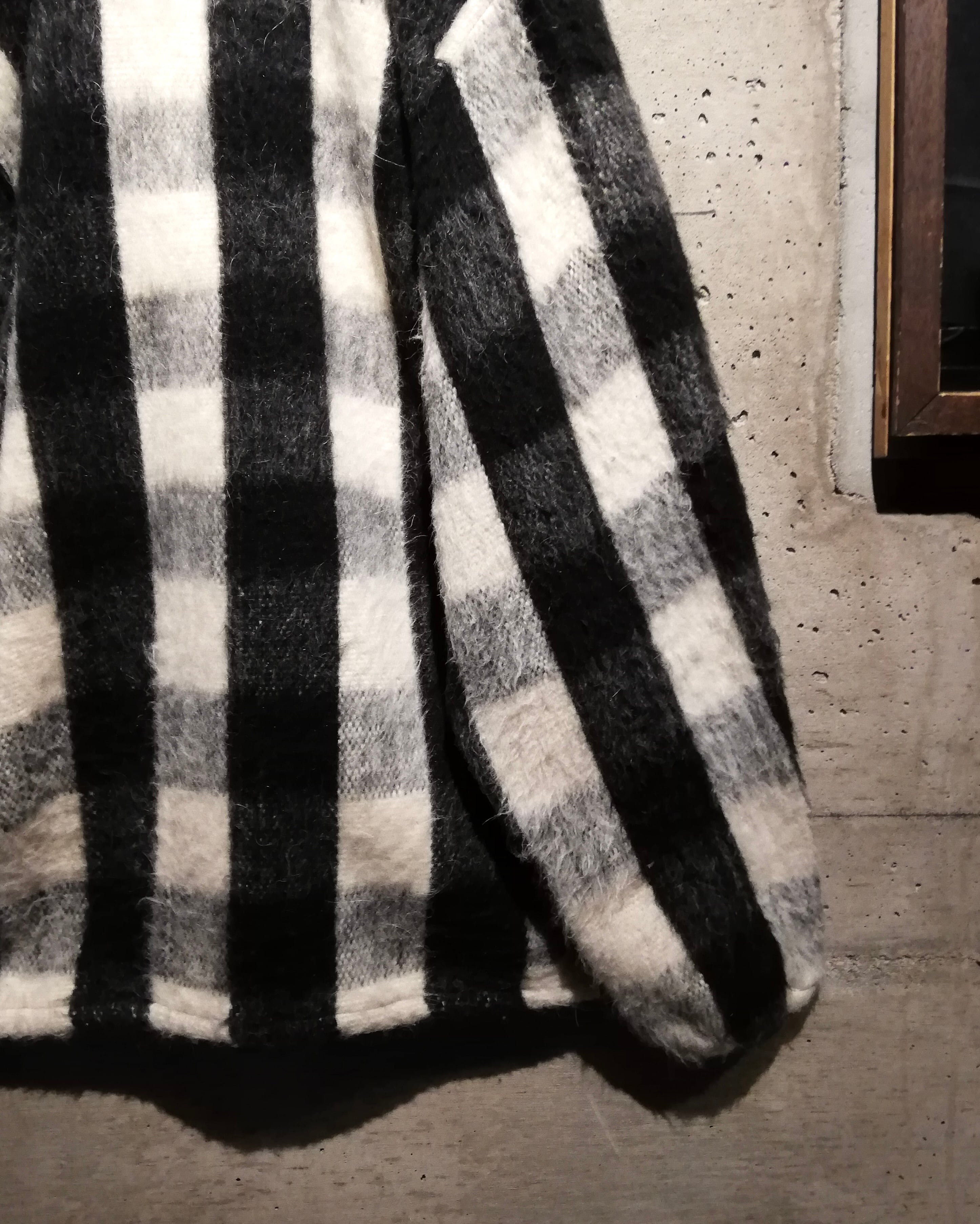 大判なブロックチェックに、毛足の長いボディの柔らかな表情が抜群の存在感を見せる1着。