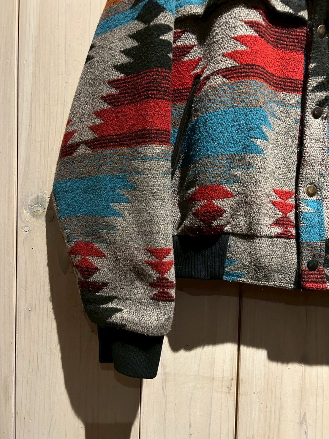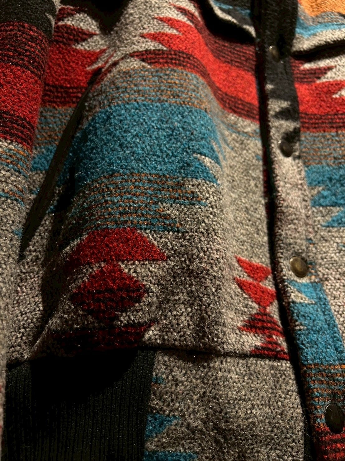 重厚なウールボディにネイティブパターンを大胆に織り上げた、クラフト感と存在感を極めたジャケット。