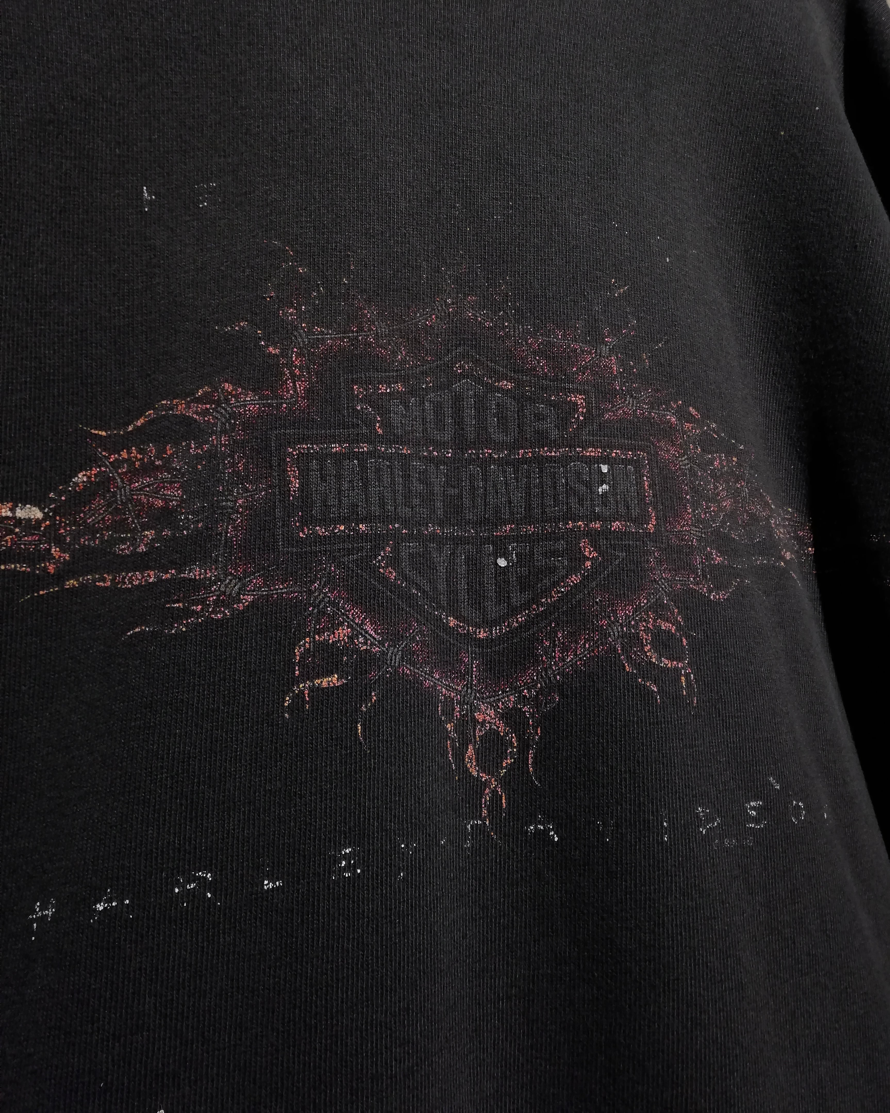 シルクスクリーンの掠れ、フェード、ダメージがすべて一点モノの表情を描く、退廃美溢れる“HARLEY DAVIDSON”のスペシャルな逸品です。