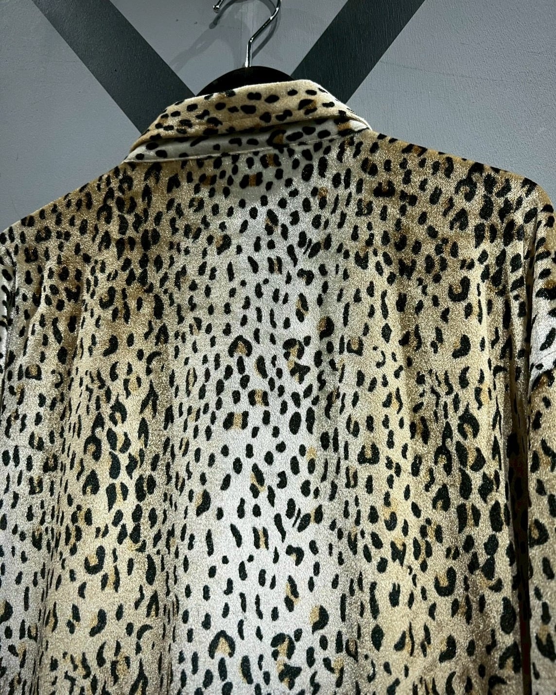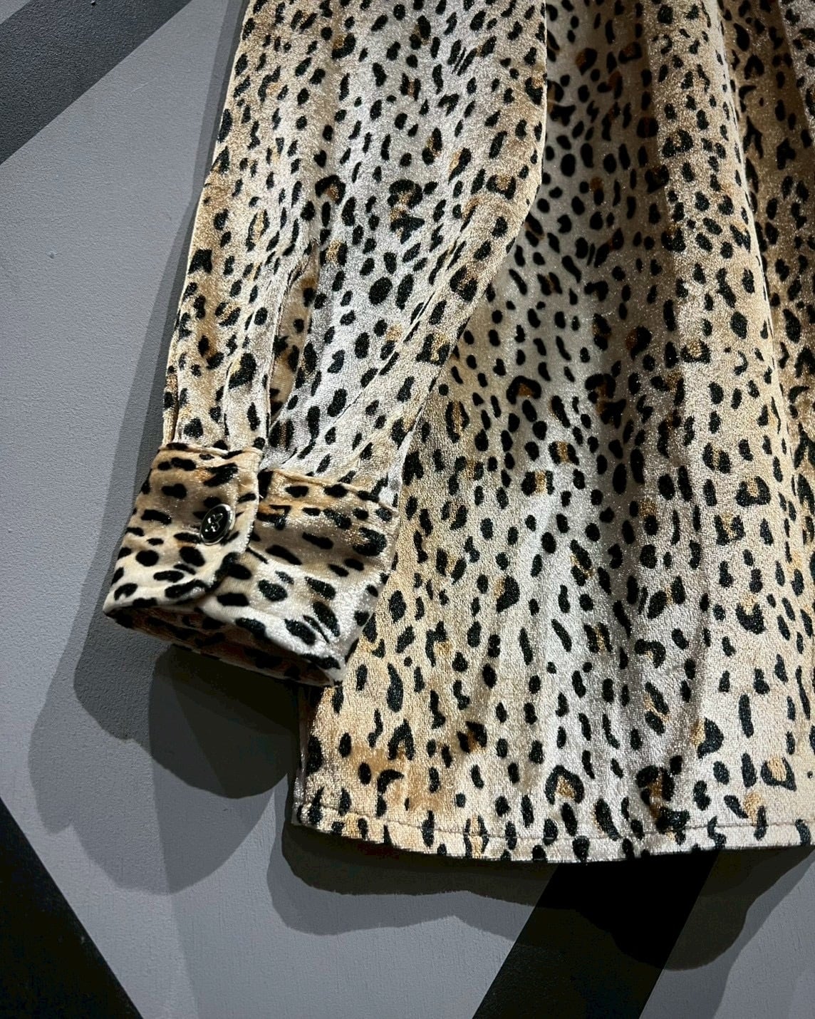 ベロア特有の滑らかなタッチと柔らかな落ち感が生むドレープが美しく、シルエットに自然な立体感をプラス。細やかな柄の密度と色のグラデーションも秀逸で、単なるアニマル柄にとどまらない深みのあるヴィジュアルを演出しています。