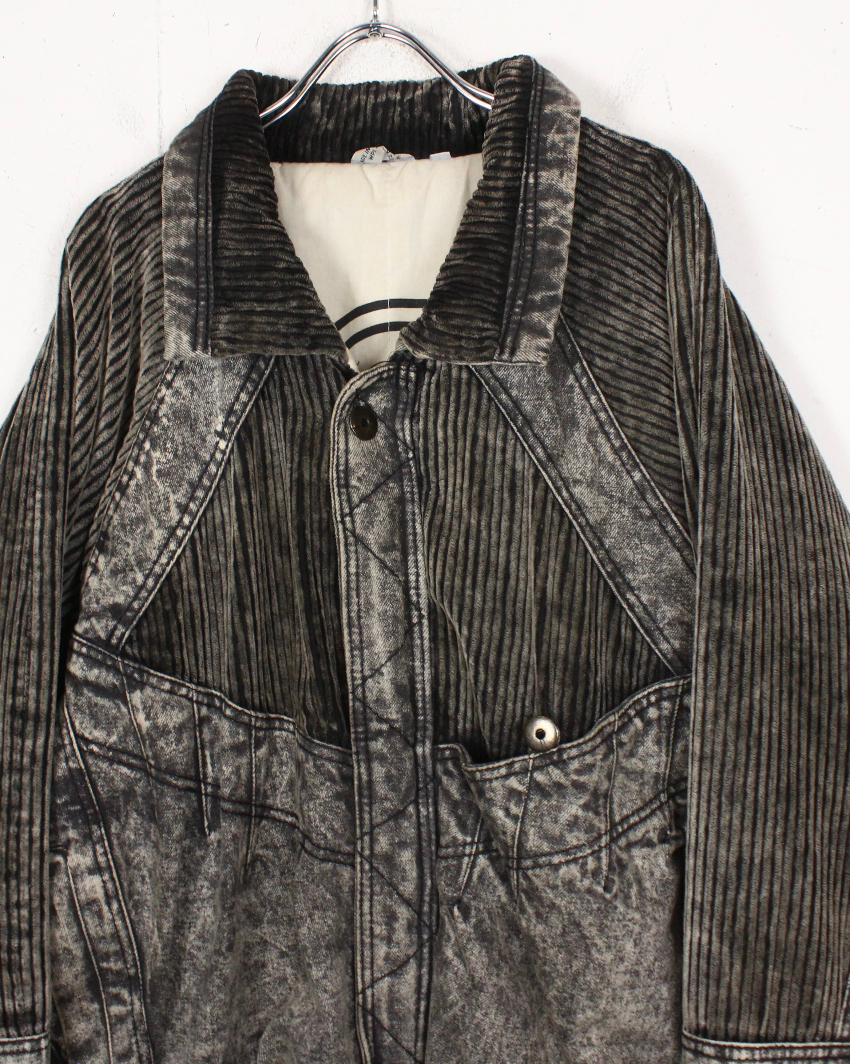 異素材の切り替え、アシッドウォッシュが生み出した、退廃的な雰囲気を纏ったジャケットの逸品です。