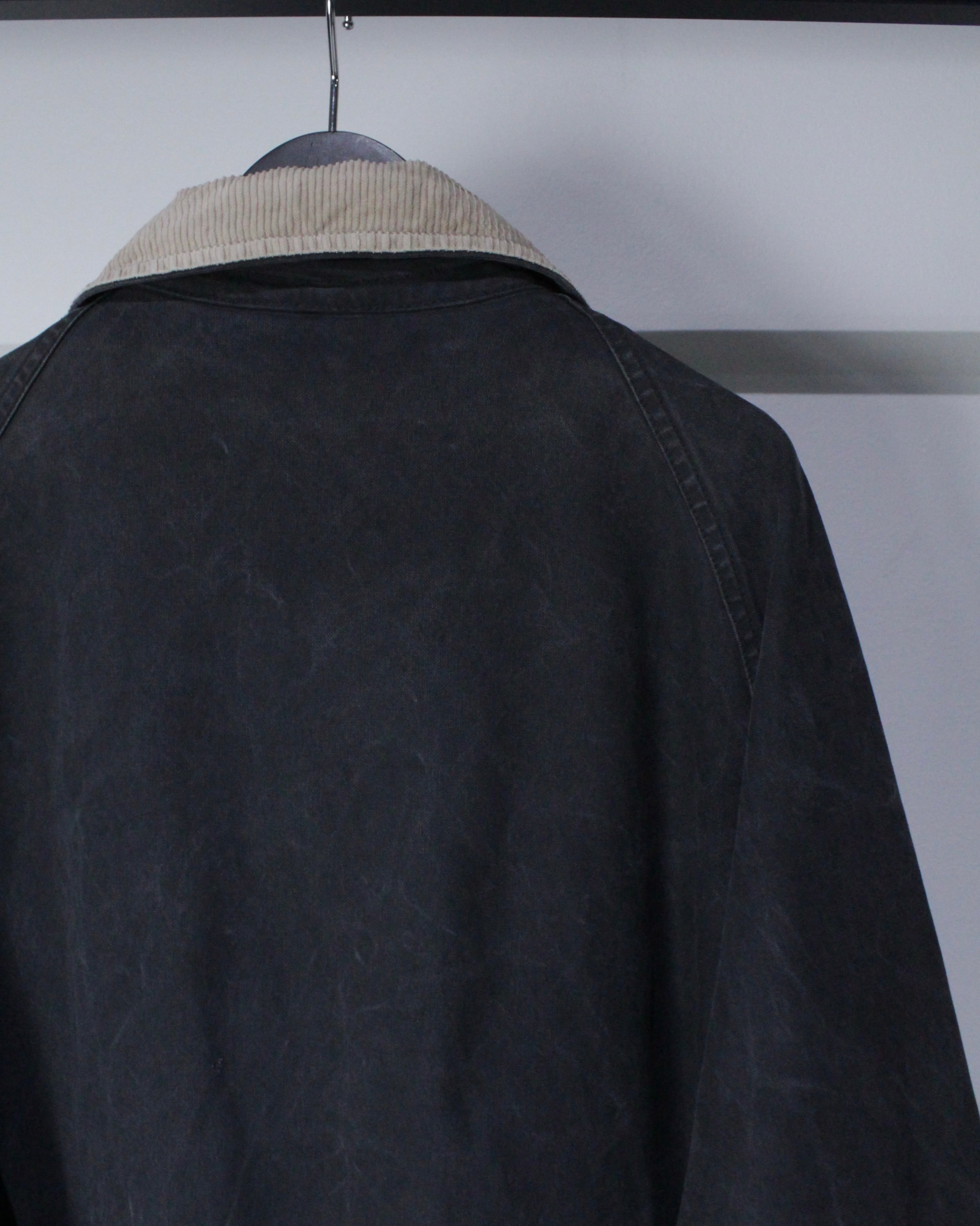 ややフェードのかかったブラックボディは、着込むほどに深みを増す風合いを備えたヘヴィコットン素材。襟には太畝のコーデュロイ生地を配し、インナーにはウールチェックの総裏地を採用し、ワーク要素を丁寧な仕立てで包み込んだ、FAYらしいクラシック×ラグジュアリーな佇まいが魅力的です。