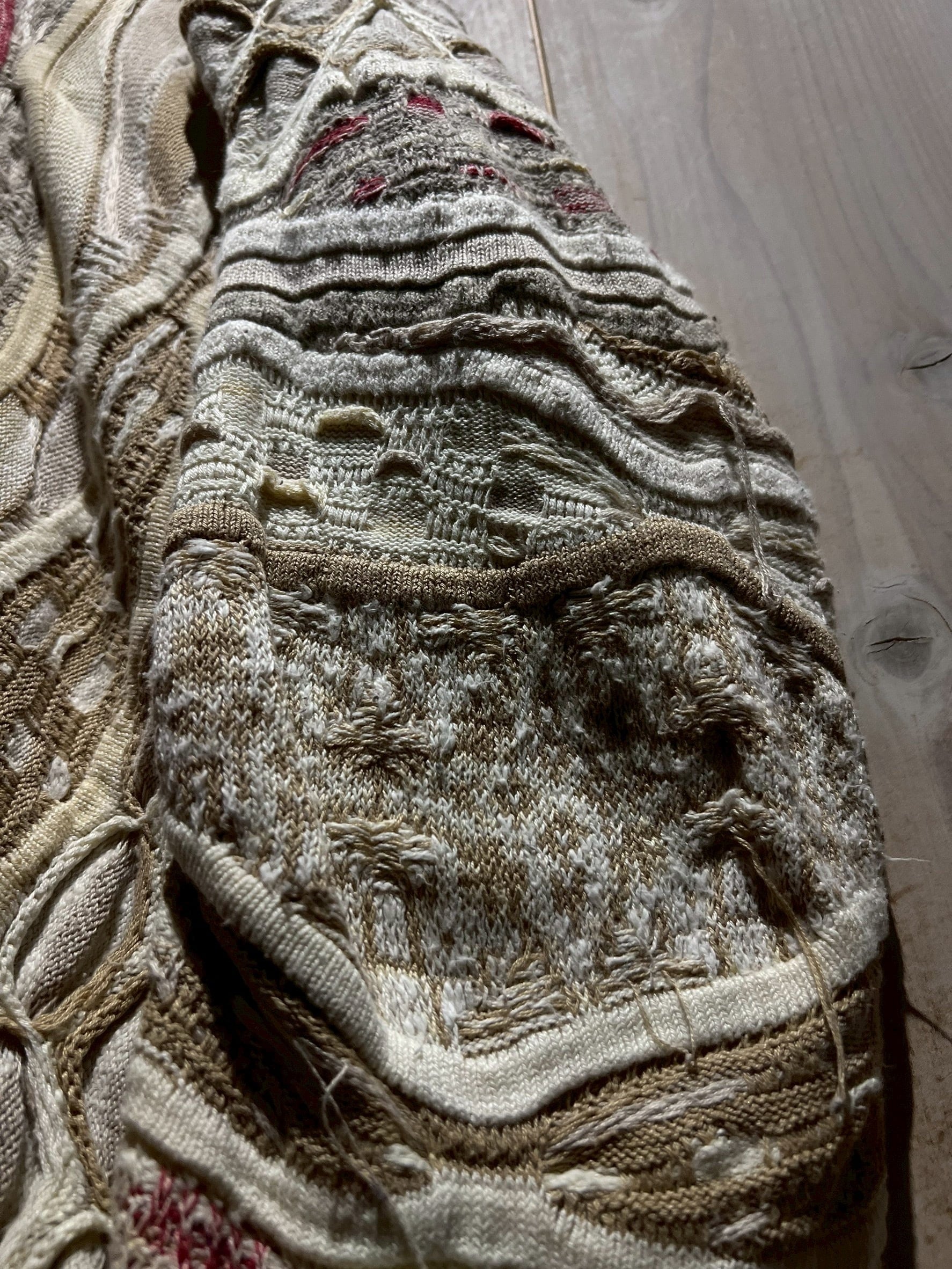 COOGI特有の多層構造の編み込みが光と影を生み、奥行きのある表情を描き出します。