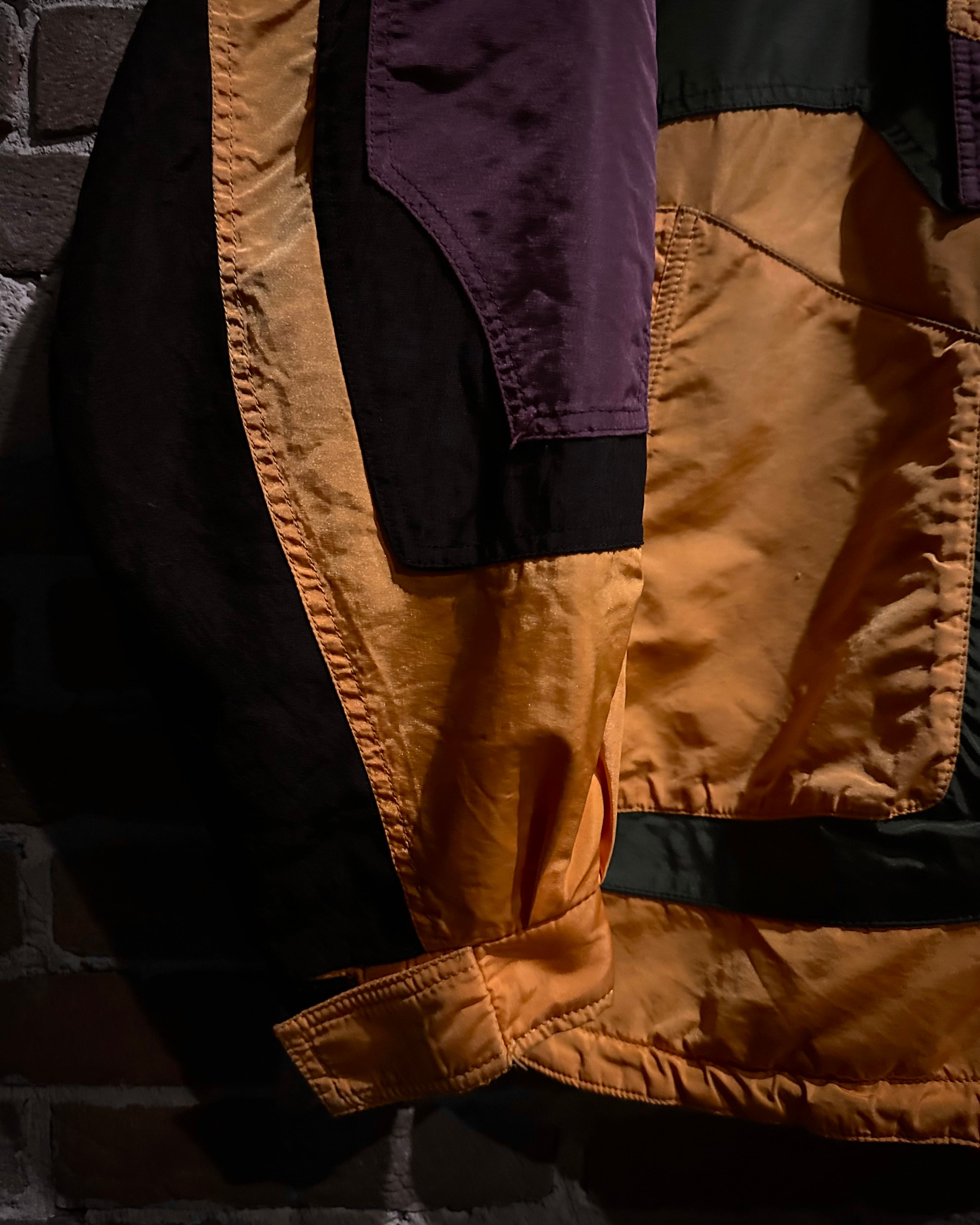 ブラック、イエロー、グリーン、パープルの大胆なカラーブロッキングが目を惹き、当時のテクニカルスポーツウェアならではのフレーバーを漂わせています。
