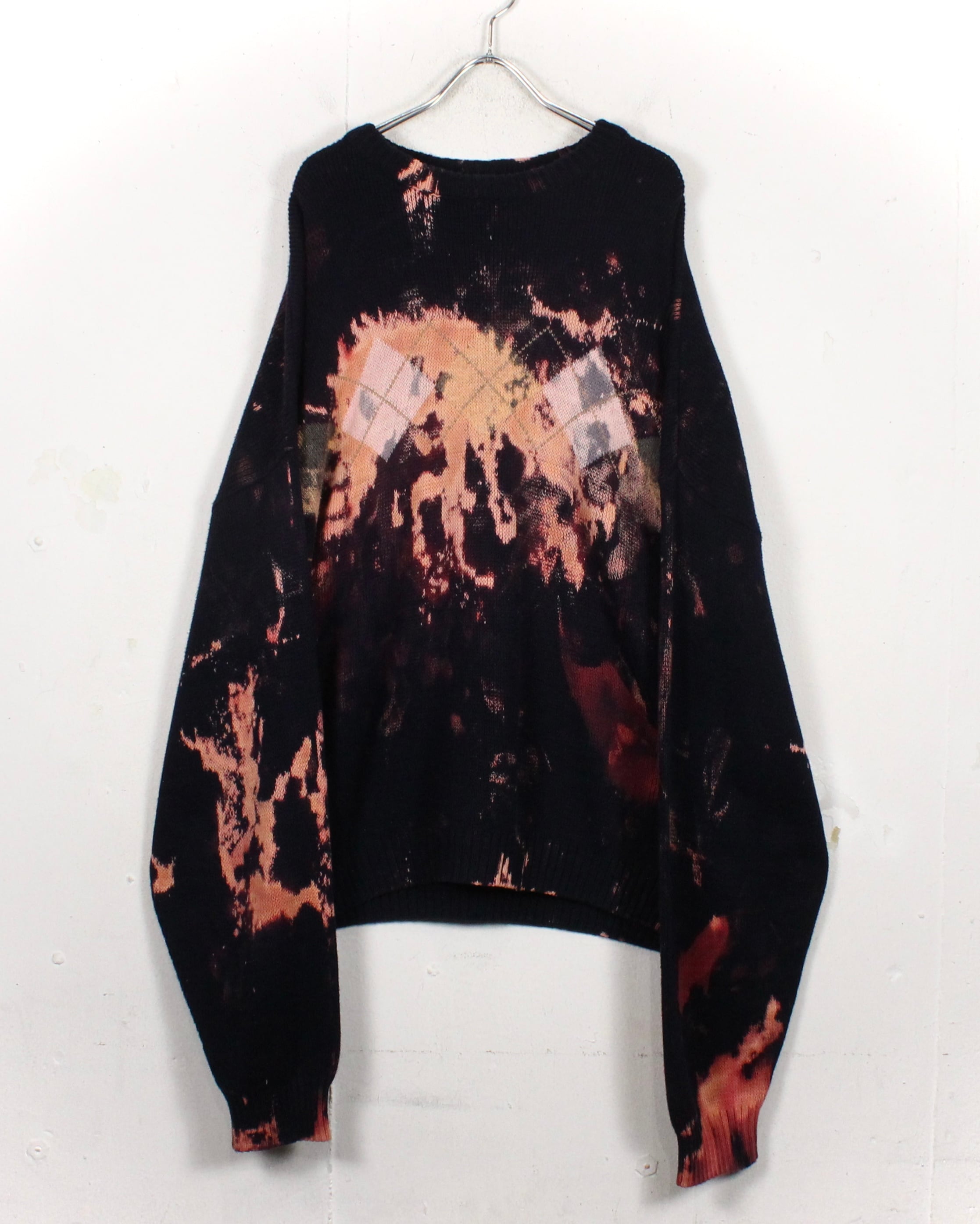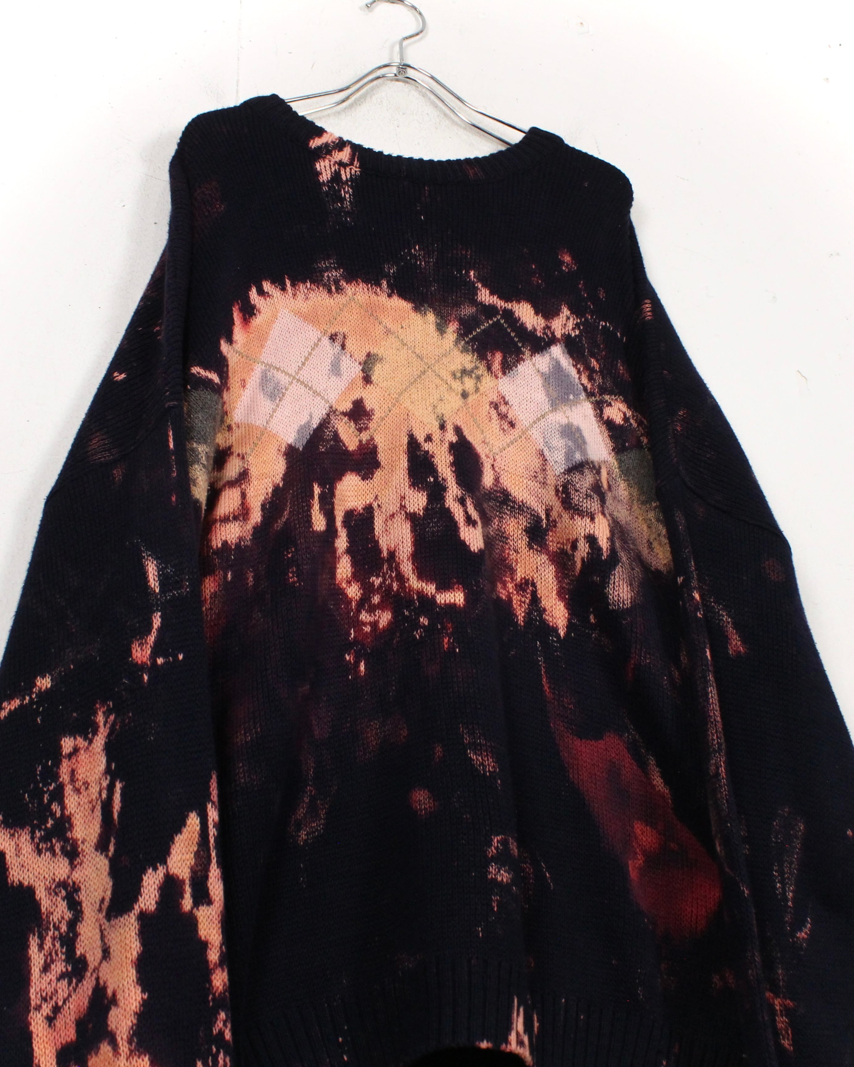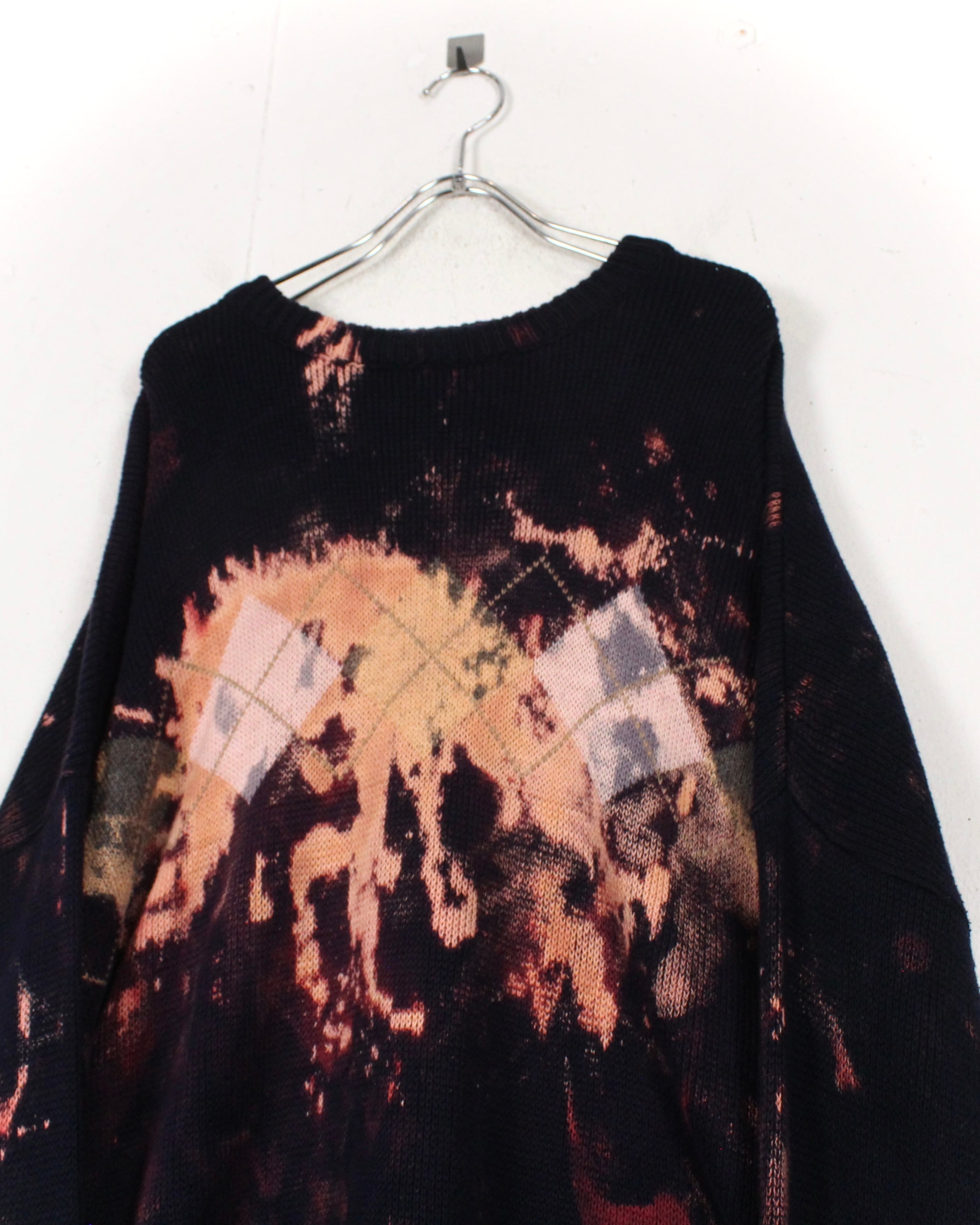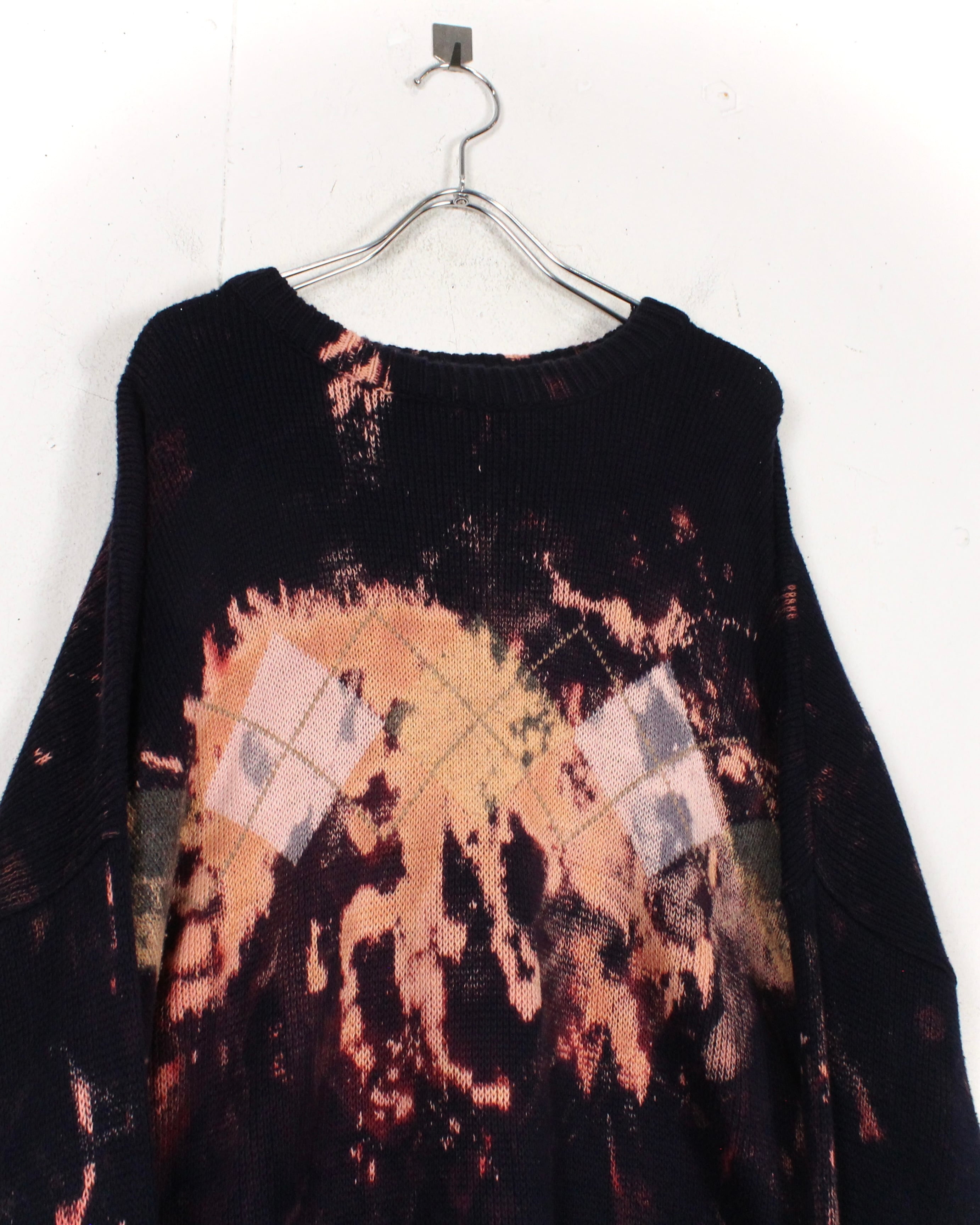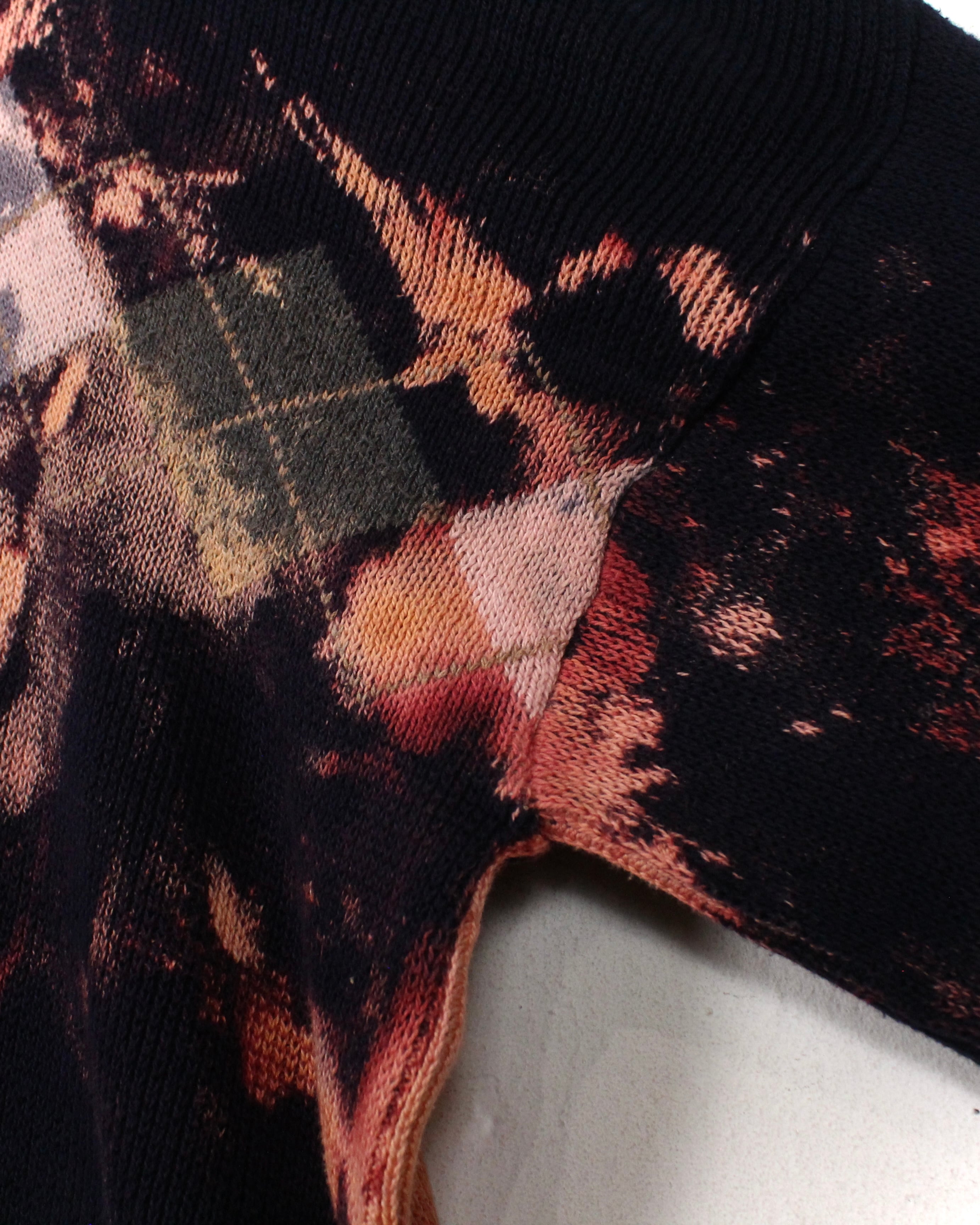 クラシカルなアーガイル柄ニットにブリーチ加工を施したリメイクニット。