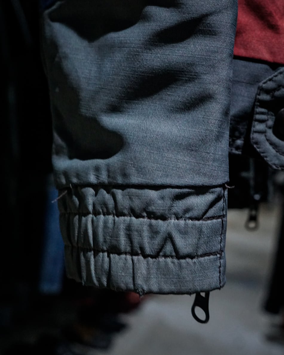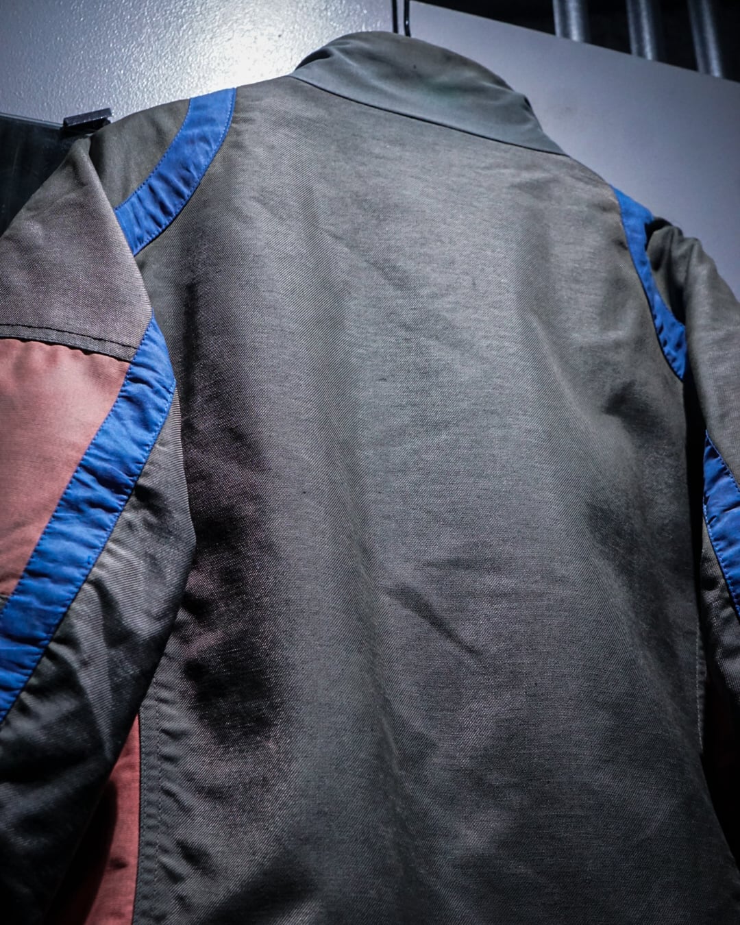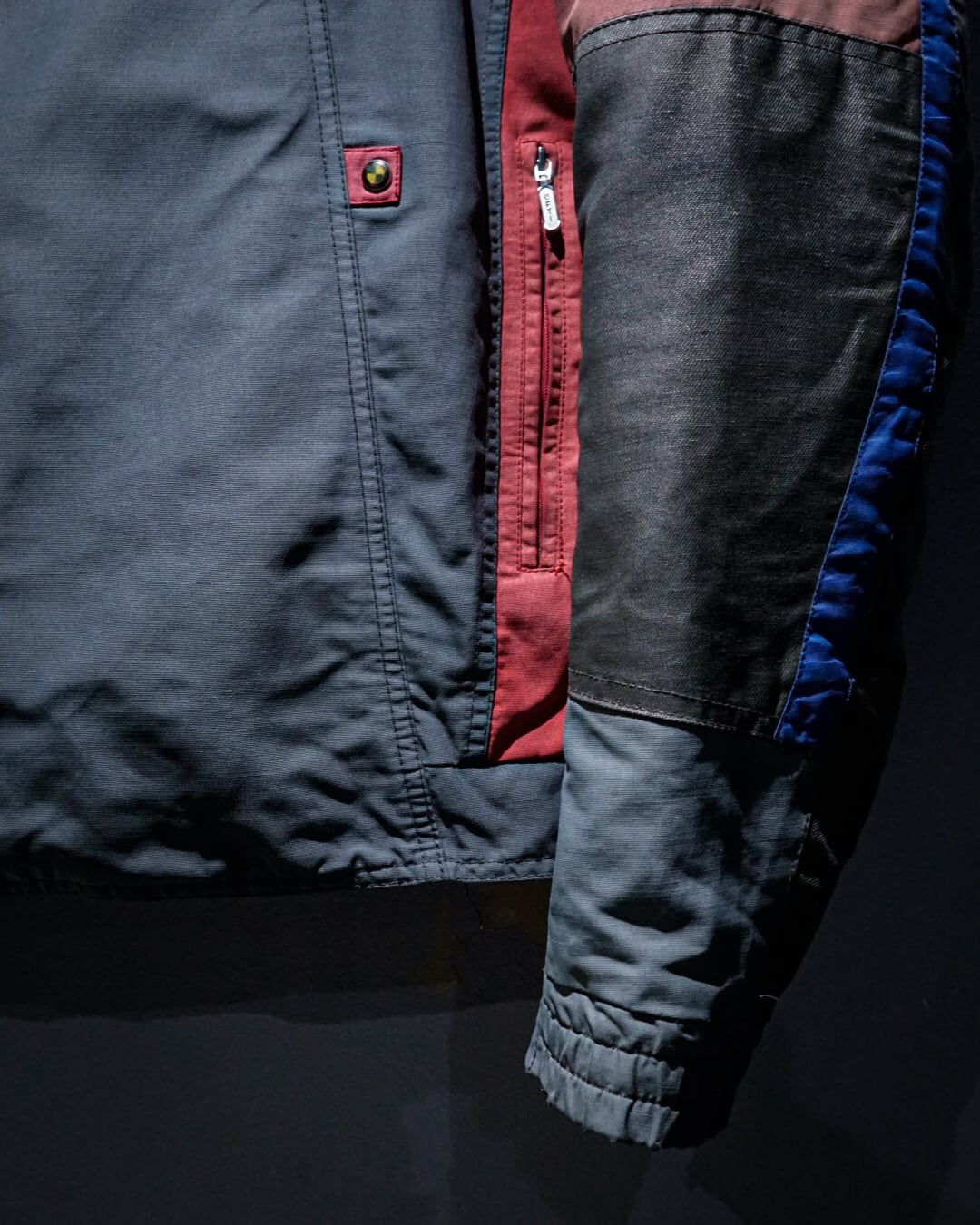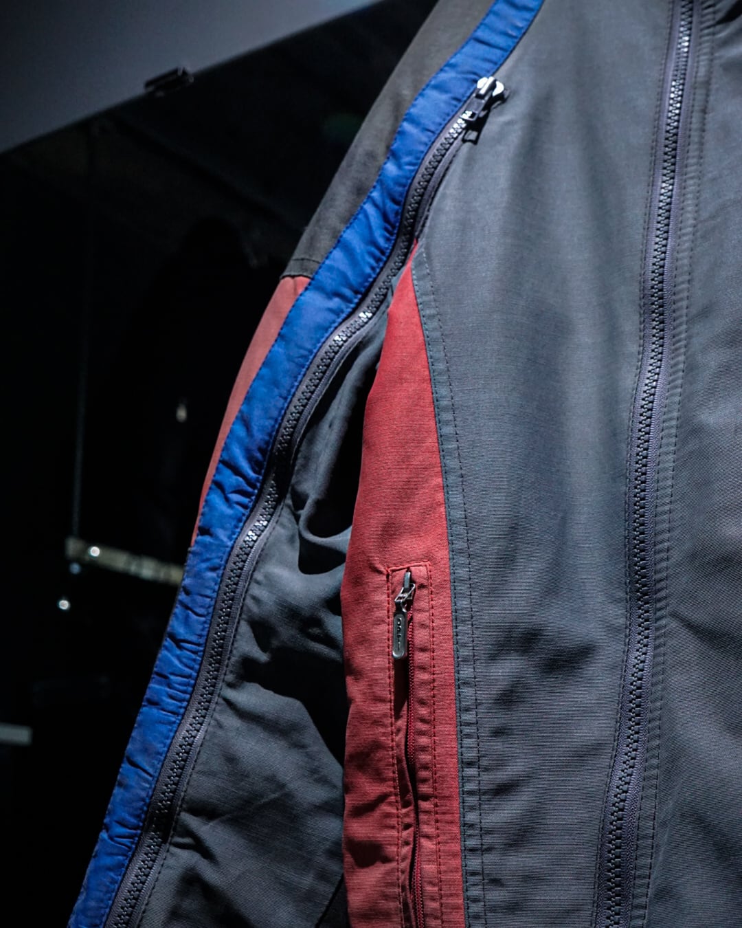 グレイッシュトーンをベースに、レッド×ブルーを切り替え、袖のジップを開閉することで通気性や可動域を自在に調整できるギミック仕様が搭載されており、機能美とデザイン美を高次元で融合しています。