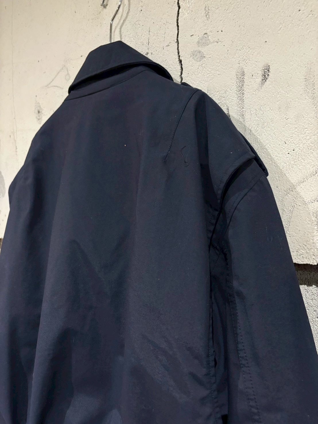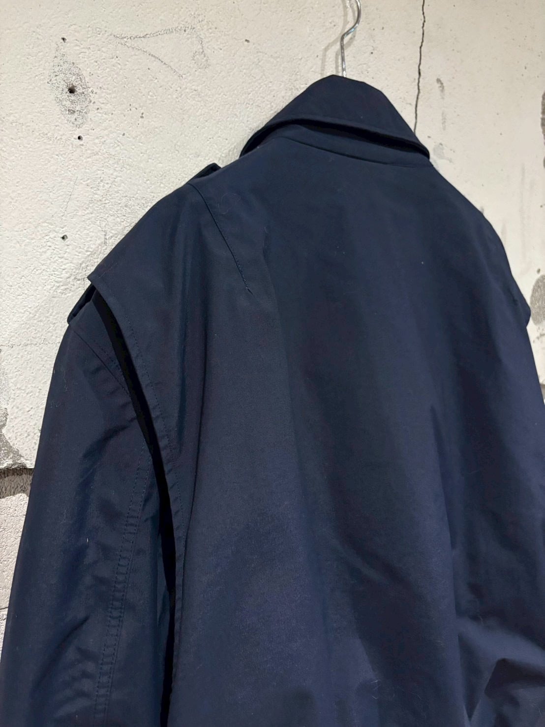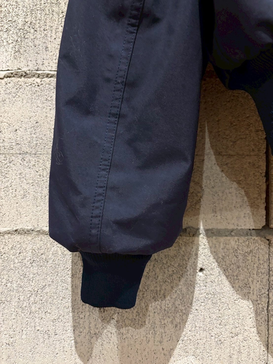 深みのあるネイビーカラーのナイロンボディに、エポレットとフラップポケットを備えたクラシックなデザイン。中綿入りのライニングが仕込まれ、防寒性にも優れた実用性の高い1着。