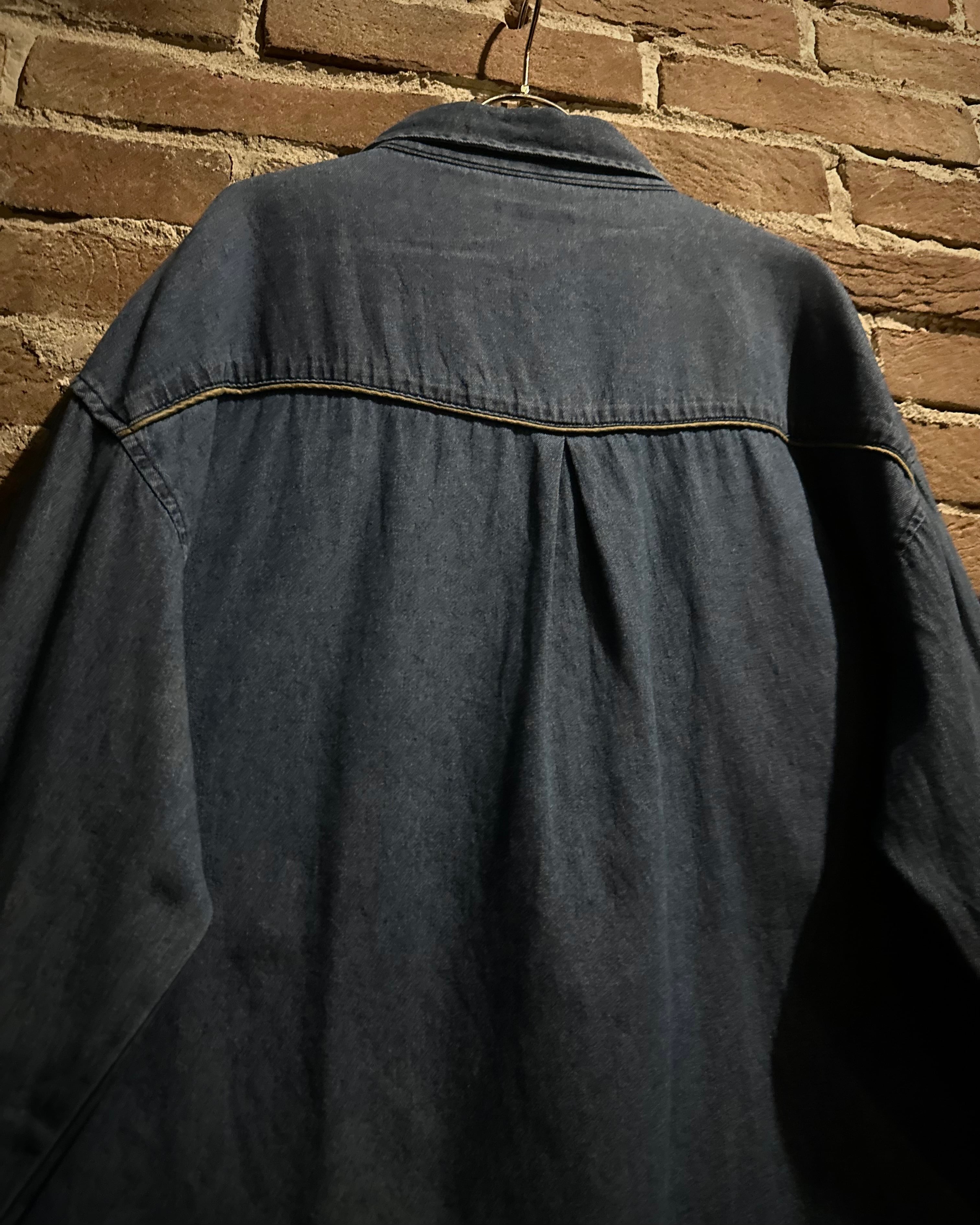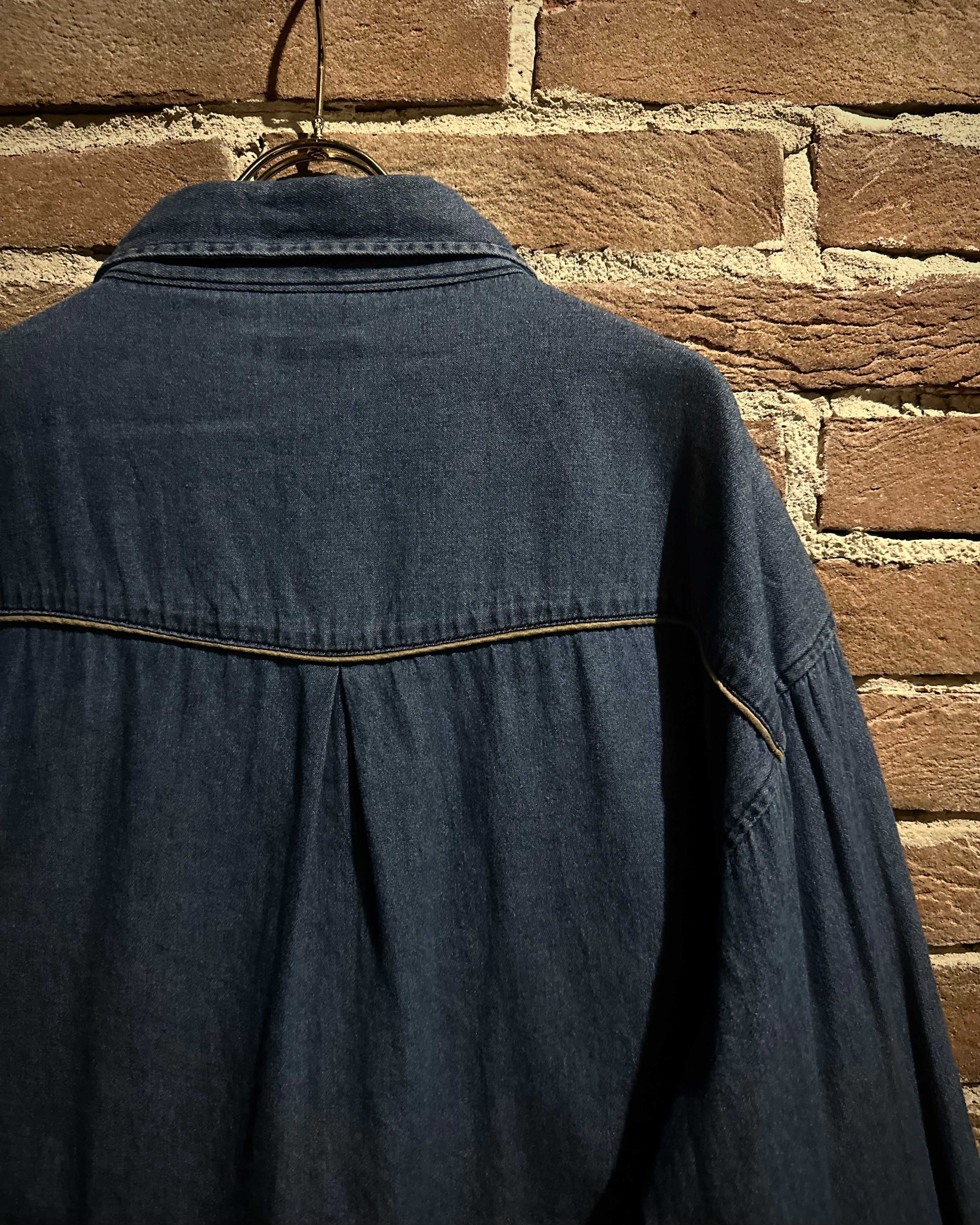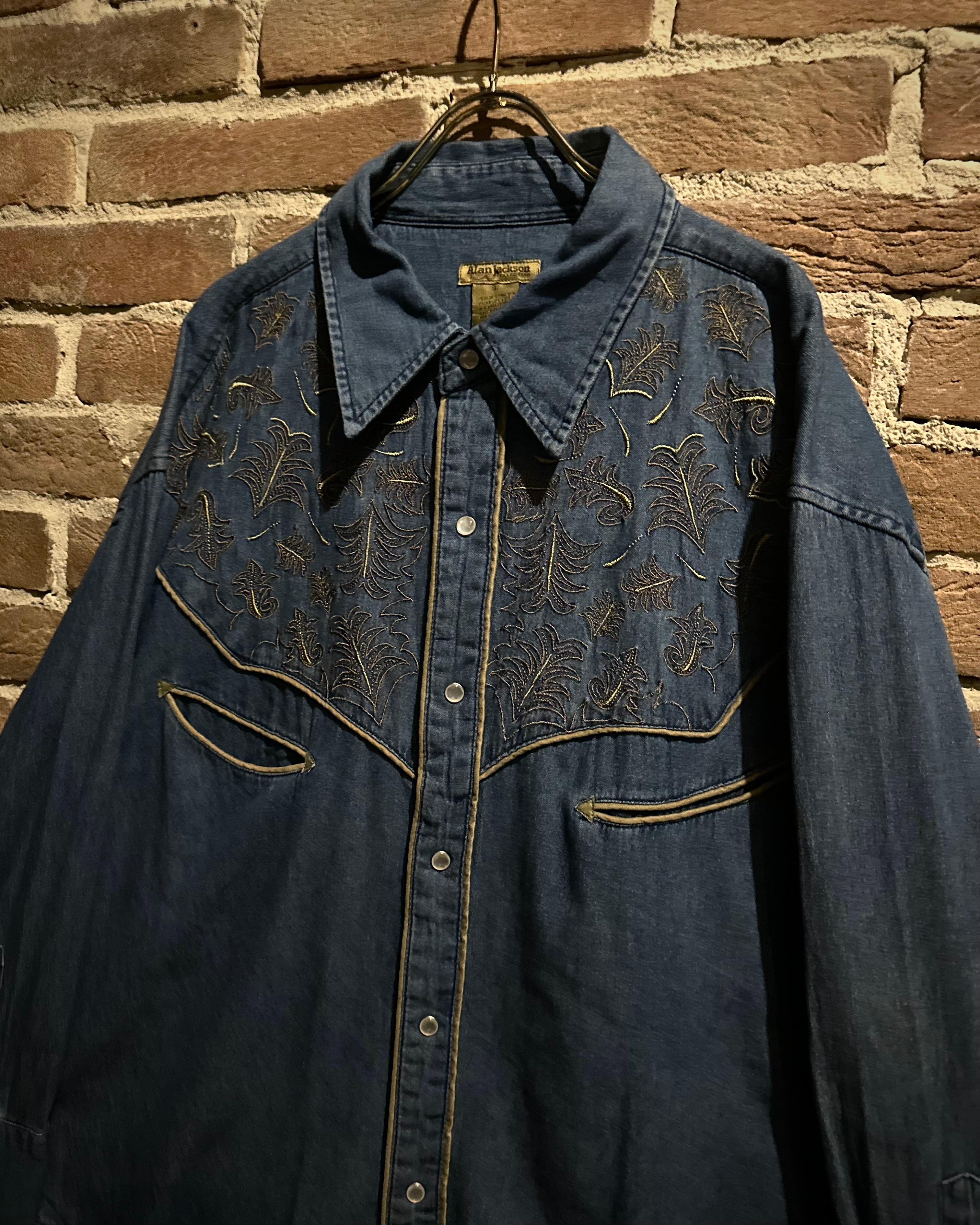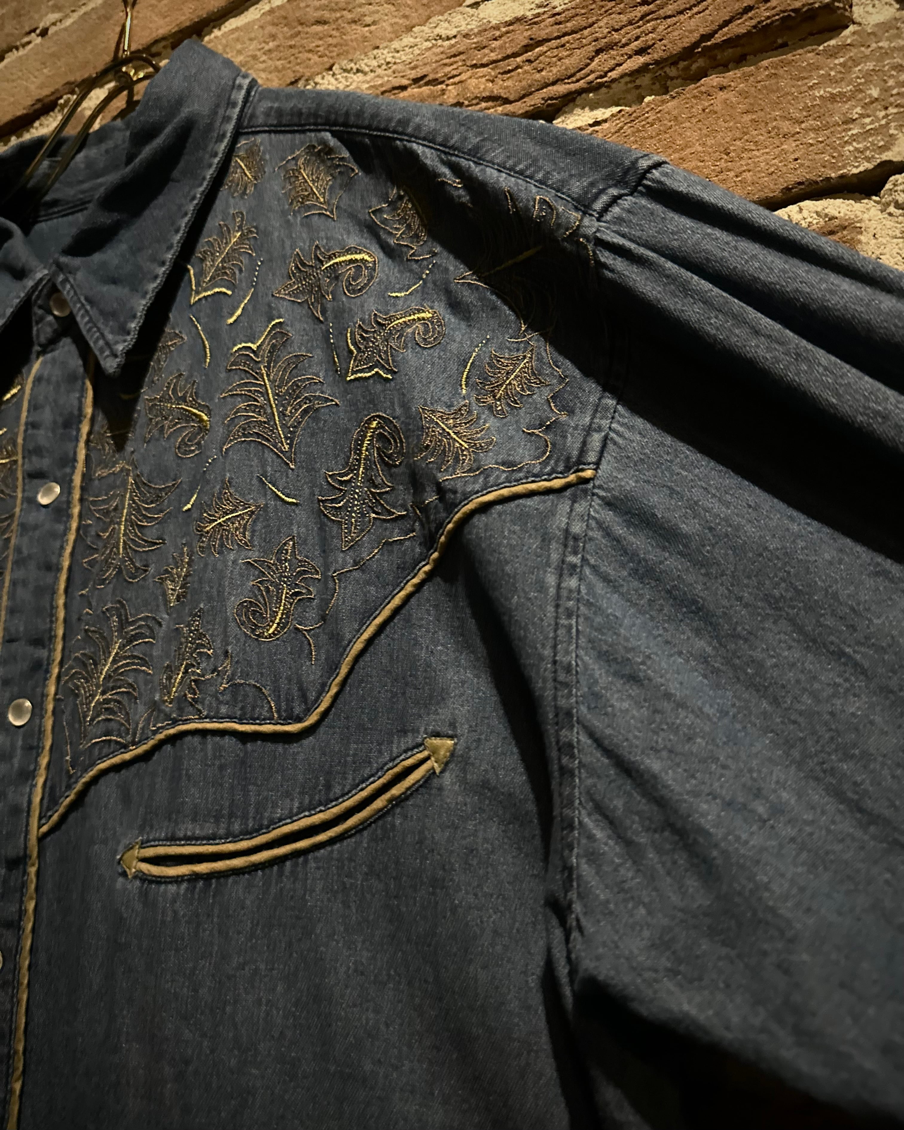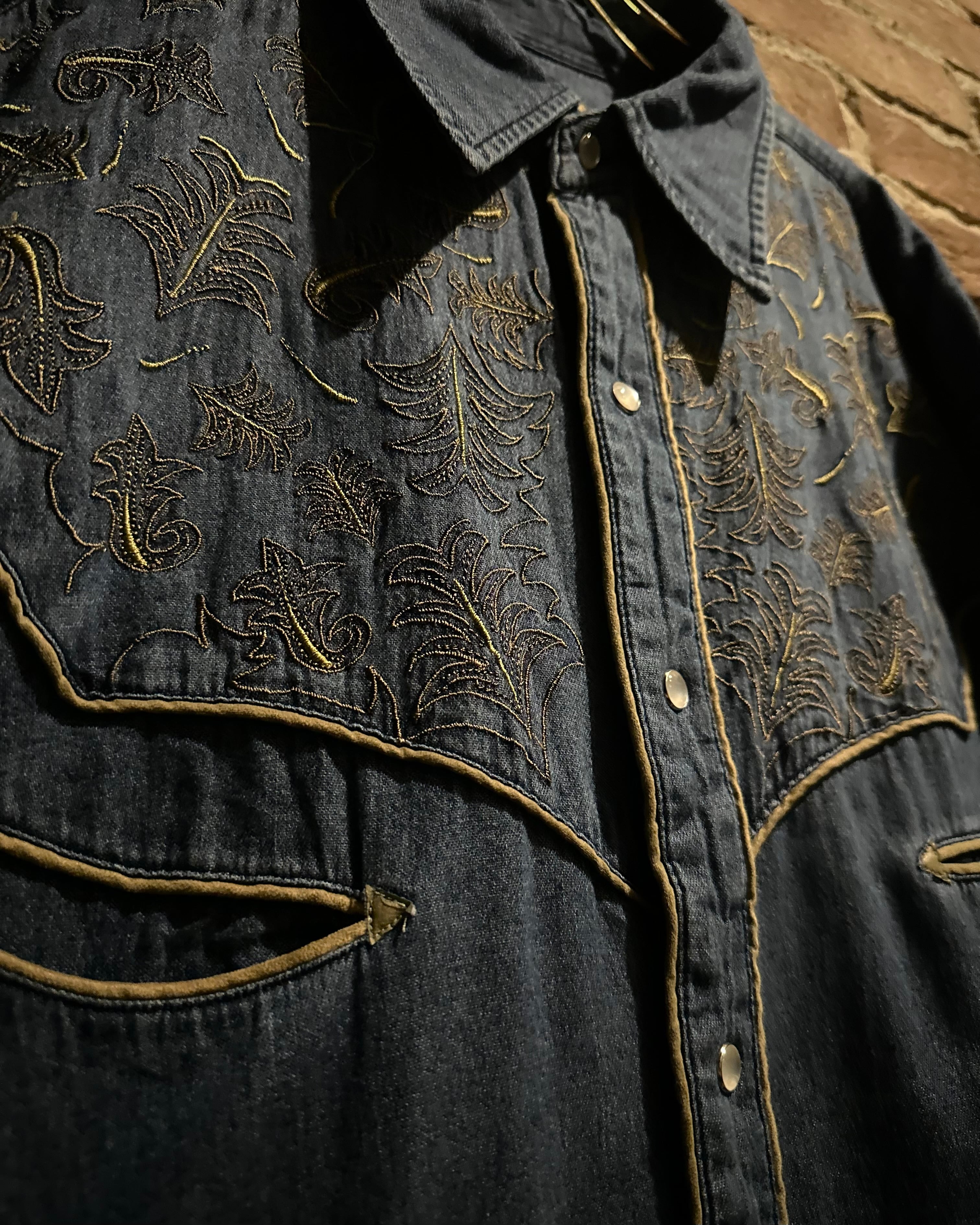 ハリとコシを備えた薄手のデニムボディをベースに、ヨーク部分に繊細で立体的なボタニカルモチーフの刺繍を刻み込んだスペシャルなウエスタンシャツ。
